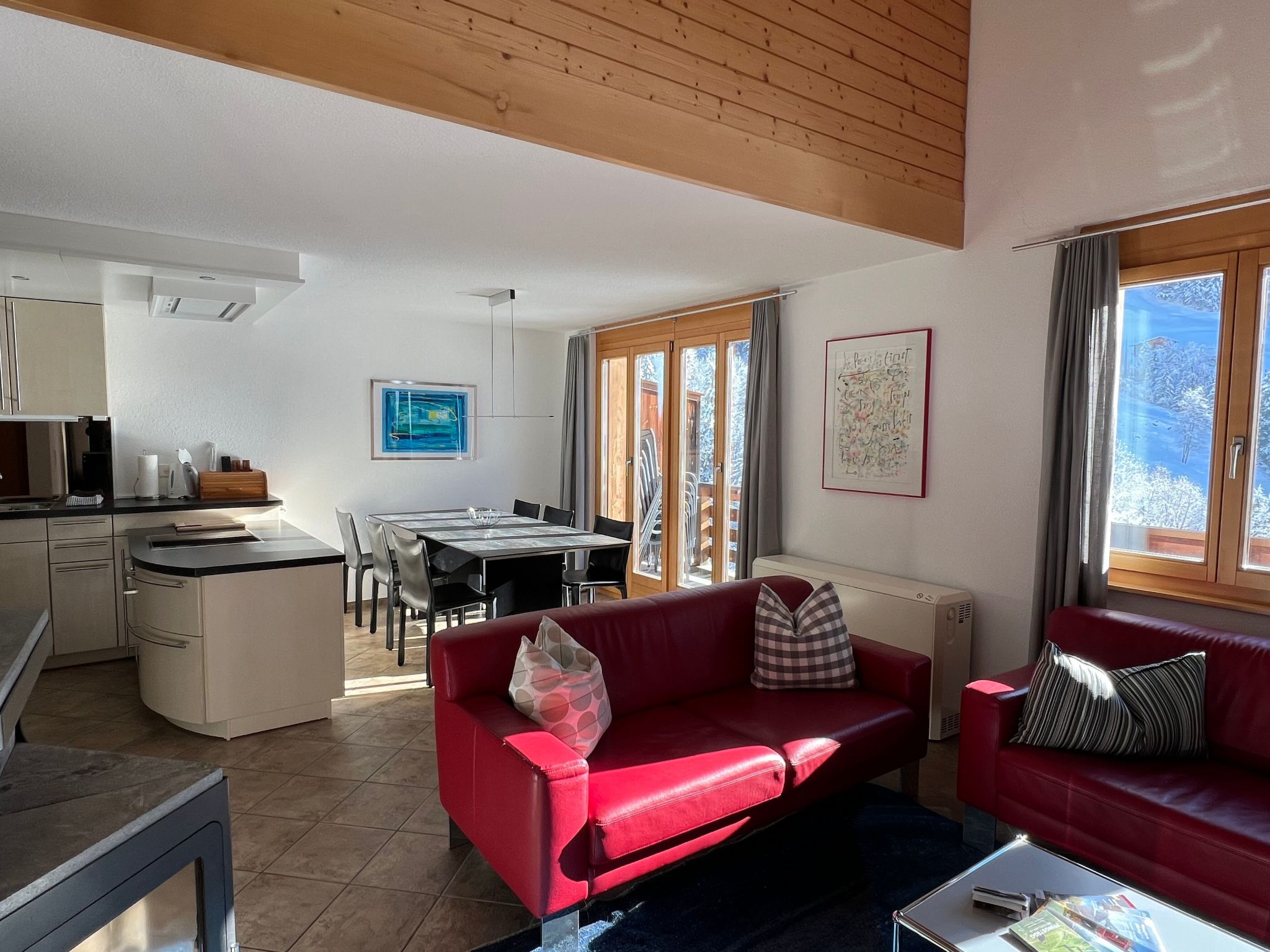 - 4½-Zimmer Maisonettewohnung auf 2 Etagen, 120m2, in Mehrfamilien-Chalet, Baujahr 1998. Sehr ruhige und zentrale Lage. 3 Schlafzimmer,6 Einzelbetten, moderne Küche mit Geschirrspüler und Mikrowelle, Steamer, Nespresso- Maschine, Fondue- Caquelon und Racletteofen, grosses Wohnzimmer mit Schwedenofen, TV-SAT/Stereoanlage/W-Lan, 2 Badezimmer, WC/Bad /Dusche, Balkon, 2 Parkplätze. Haustiere sind nicht erlaubt. Nichtraucherwohnung.Wohnung in oberster Etage mit Personenlift. Im Keller genügend Stauraum für Sportgeräte.
