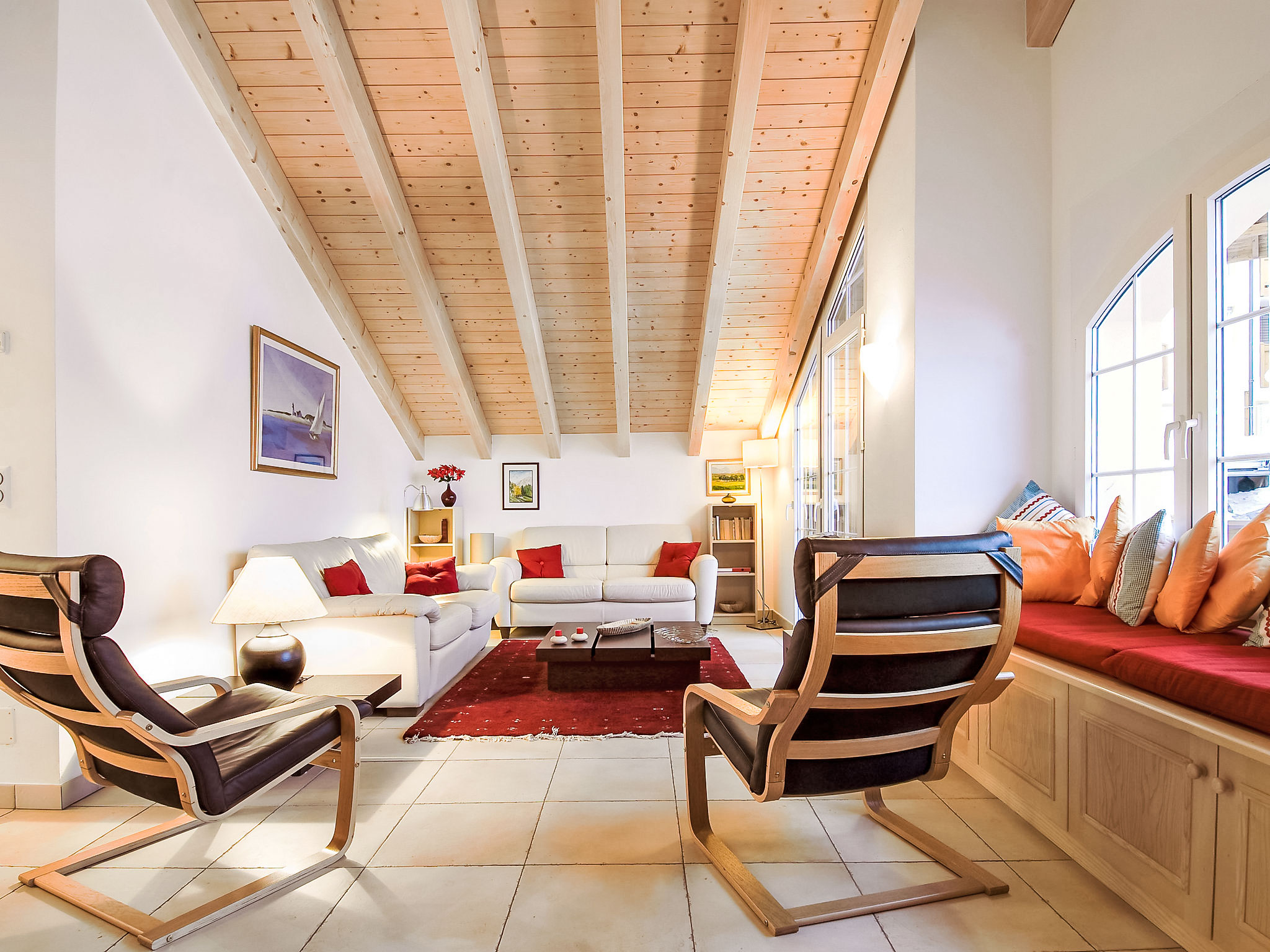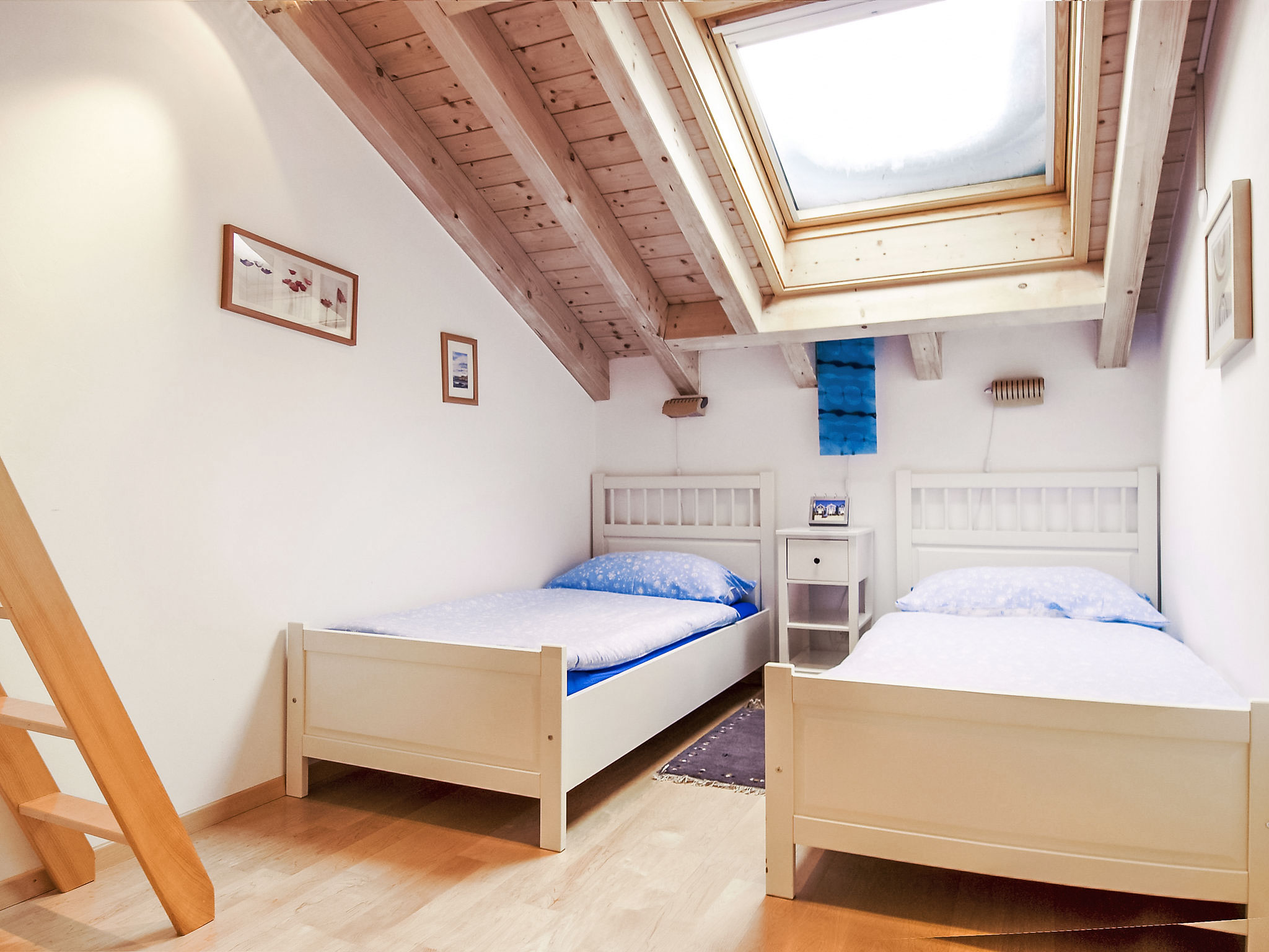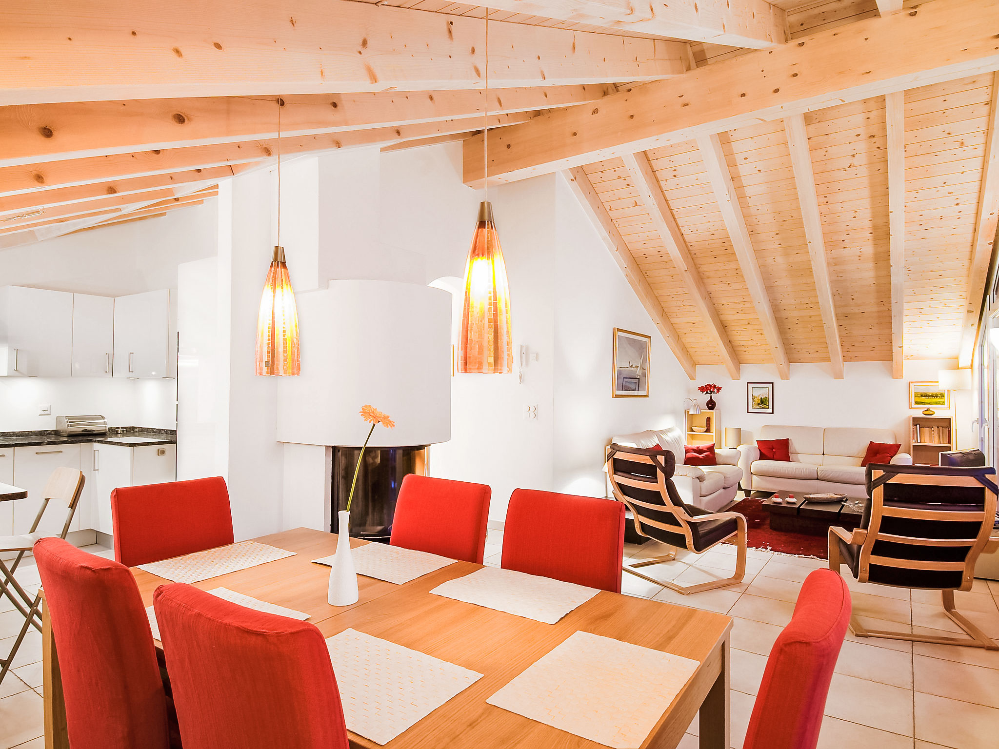 4-Zimmer-Attikawohnung 119 m2, im Dachgeschoss, Südlage. Modern und geschmackvoll eingerichtet: grosses Wohn-/Esszimmer mit Schwedenofen, Esstisch, Kabel-TV, Flachbildschirm, Radio, CD und DVD. Ausgang zum Balkon. 1 Doppelzimmer mit 1 Doppelbett (1 x 160 cm, Länge 200 cm). 2 Zimmer, jedes Zimmer mit 2 Betten (90 cm, Länge 200 cm). Grosse, offene Küche (Backofen, Geschirrspüler, 4 Glaskeramikplatten, Toaster, Wasserkocher, Mikrowelle, Tiefkühler, elektrische Kaffeemaschine, Racletteofen, Fondue Set (Chinoise, Käse)). Bad/WC, Dusche/WC. Bodenheizung. Balkon 13 m2, Südlage. Balkonmöbel. Sehr schöne Panoramasicht auf das Matterhorn. Zur Verfügung: Haartrockner. Internet (Wireless LAN, gratis). Bitte beachten: Nichtraucher-Unterkunft.