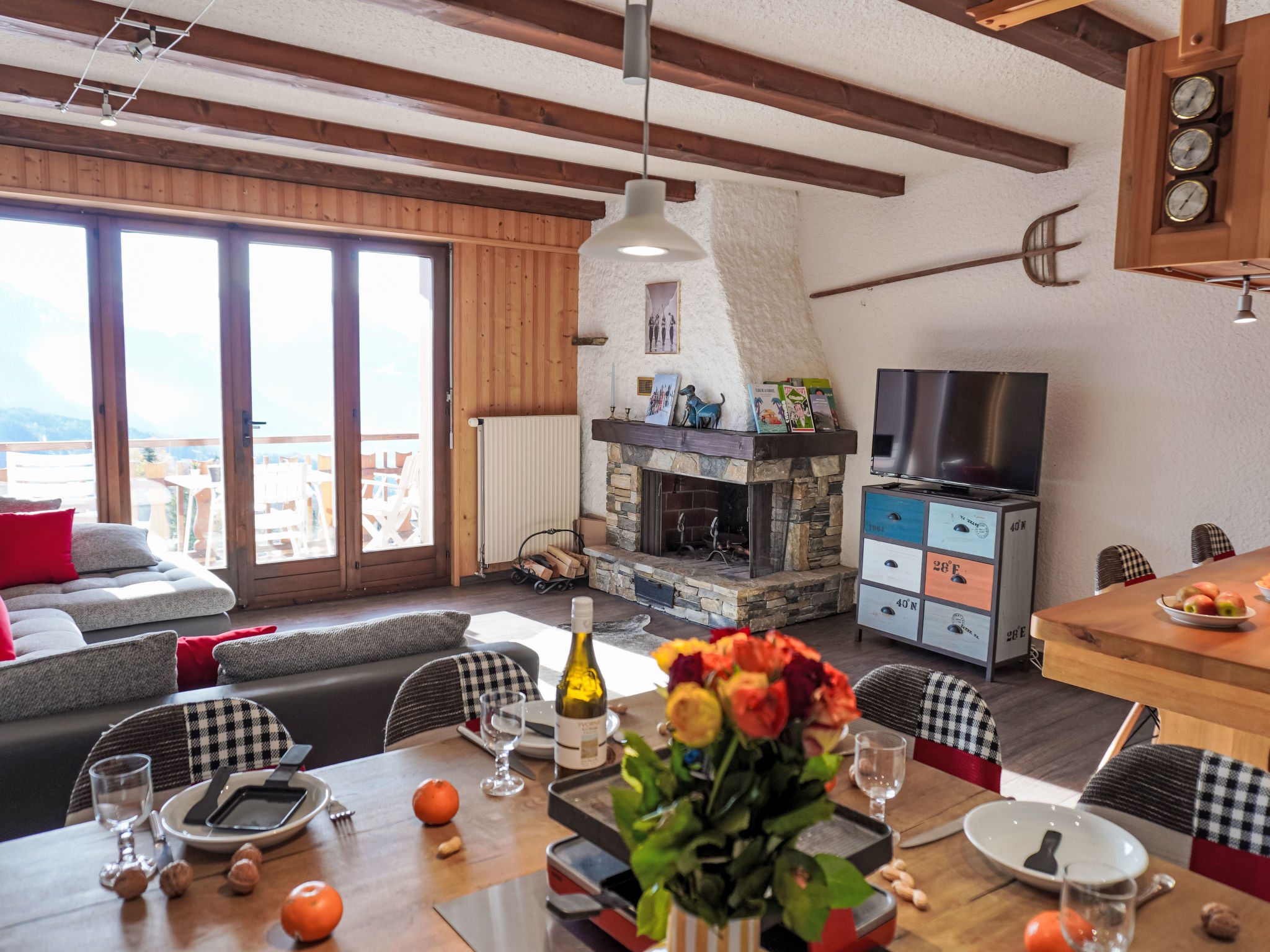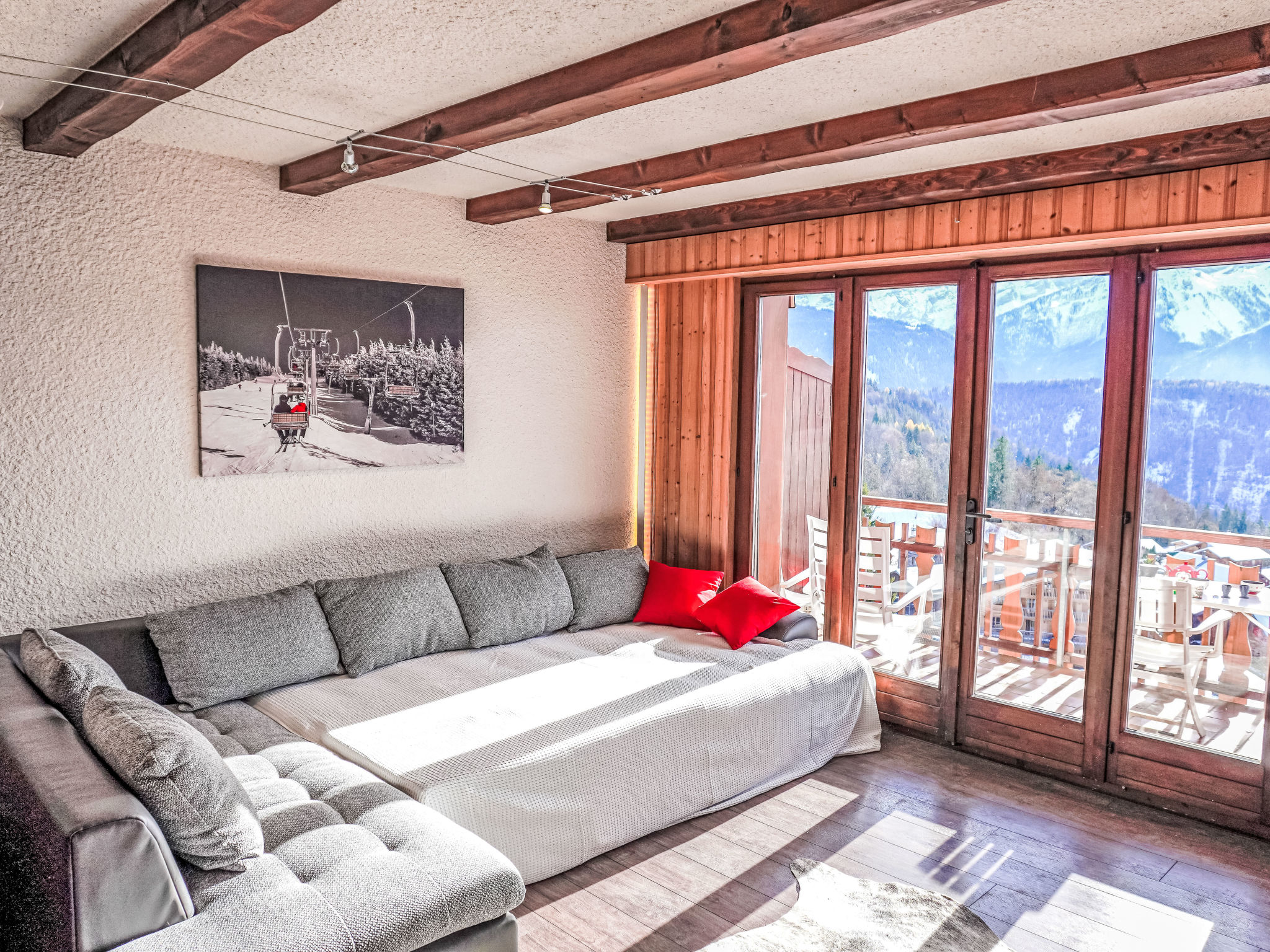 "Gai Matin A21", 3-Zimmer-Wohnung im 3. Stock. Geräumig und hell, komfortabel und geschmackvoll eingerichtet: Wohn-/Esszimmer mit 1 Diwanbett und offenem Kamin. Ausgang zum Balkon. 1 Zimmer mit 1 Doppelbett (160 cm, Länge 200 cm). 1 Zimmer mit 1 Ausziehbett (2 Pers. 2 x 90 cm, Länge 200 cm). Grosse, offene Küche (Backofen, Geschirrspüler, 4 Glaskeramikplatten, Toaster, Wasserkocher, elektrische Kaffeemaschine, Kapseln für die Kaffeemaschine (Nespresso) extra, Racletteofen, Fondue Set (Käse)). Bad/WC, Dusche/WC. Balkon. Balkonmöbel. Herrliche Sicht auf die Berge, die Landschaft und die Ortschaft. Zur Verfügung: Internet (WLAN, gratis). Garage Nr. A21 (1 Auto). Bitte beachten: Nichtraucher-Unterkunft. Maximal 1 Haustier/Hund erlaubt.