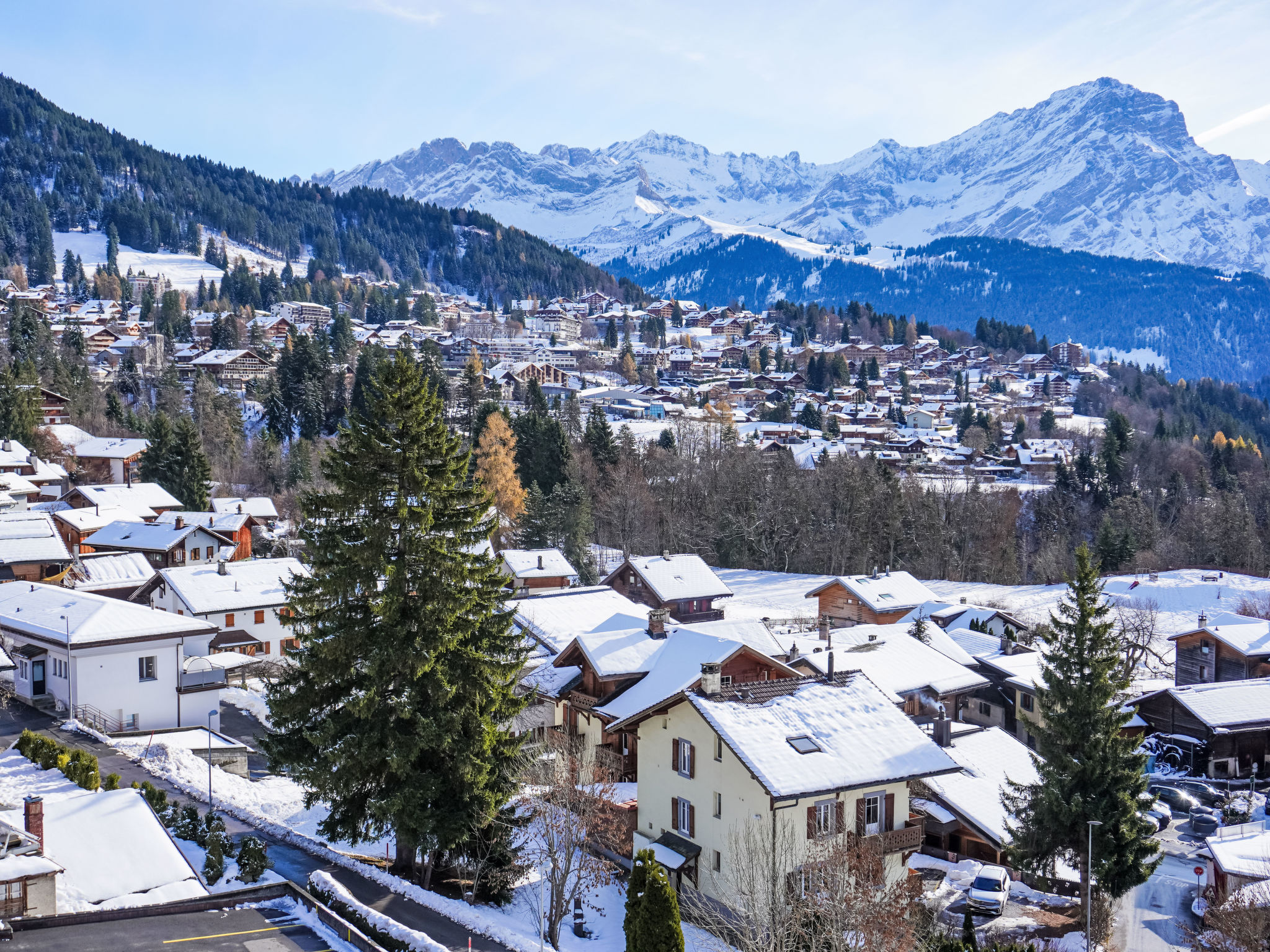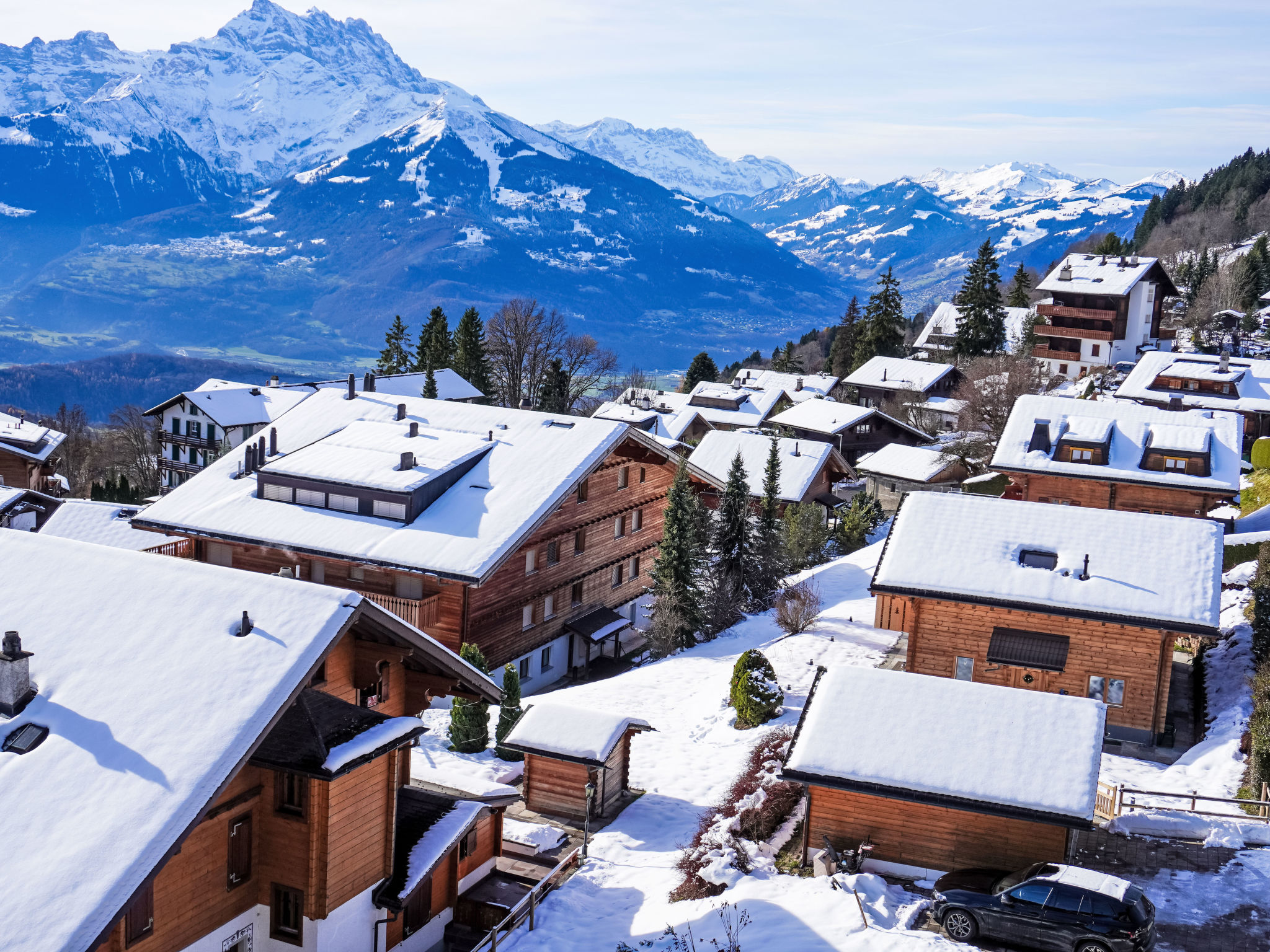 Chesières 1 km von Villars: Chalet "Gai Matin". Im Ortszentrum von Chesieres, ruhige, sonnige Lage, Richtung Süden. Im Hause: Sauna (extra). Fahrstuhl, Skiraum, Zentralheizung, Waschmaschine, Wäschetrockner (zur Mitbenutzung). Steile Zufahrt. Im Winter bitte Schneeketten mitbringen. 15 m Treppenweg bis zum Haus. Einkaufsgeschäft 1.4 km, Lebensmittelgeschäft 200 m, Restaurant 50 m, Zentrum zu Fuss in 15 Minuten erreichbar, Bushaltestelle 100 m, Bahnstation "Villars-sur-Ollon" 1.7 km, Hallenbad 1 km, Thermalbad "Villars" 1 km. Sporthafen 25 km, Golfplatz (18 Loch) 7 km, Tennishalle 2.5 km, Sportzentrum 2.5 km, Bergeisenbahn 1.7 km, Gondelbahn 1.3 km, Skiverleih 1.3 km, Skibushaltestelle 100 m, Skischule 1.5 km, Kinderskischule 2.5 km, Eisfeld 1 km, Kinderspielplatz 250 m. Der gratis Skibus fährt zum Skigebiet Villars.