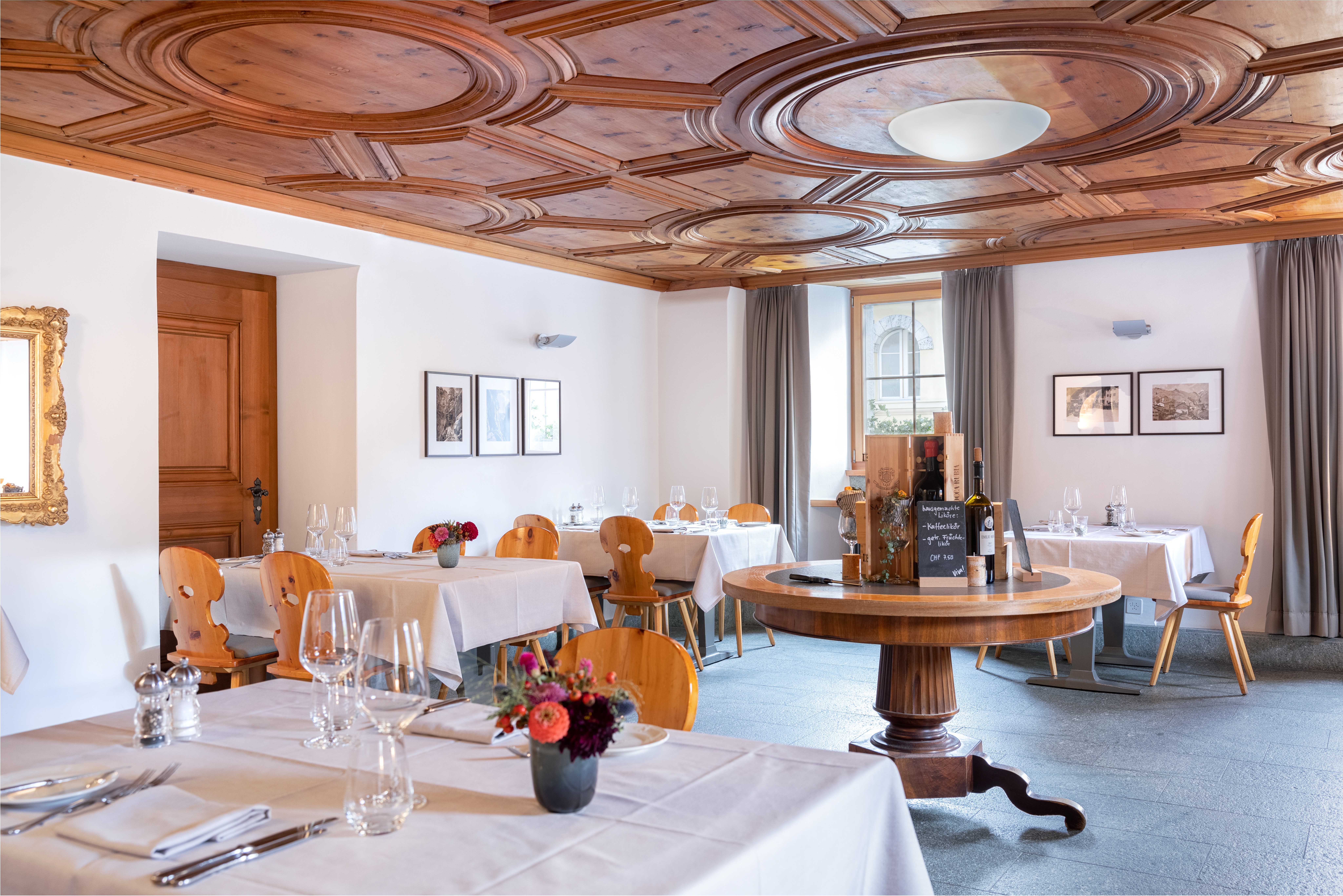 Hervorragende Küche, schweizerische und italienische Spezialitäten mit Fokus auf die Regionen Graubünden und Tessin sowie auf das angrenzende italienische Veltlin. Drei unterschiedliche Stuben mit insgesamt 60 Sitzplätzen und ein grosser Bankettsaal mit Platz für bis zu 100 Gästen. Schöne Sonnenterrasse mit 80 Sitzplätzen und direktem Blick auf den zentralen Bodaplatz. Historischer Gewölbe-Weinkeller, Seminarraum, Hallenbad und Sauna.