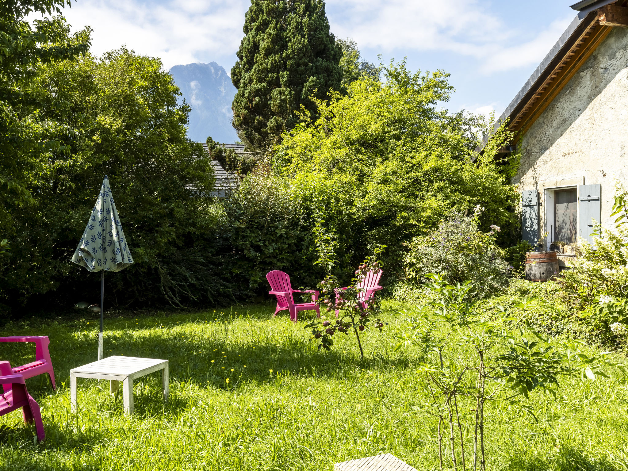 "Grangettes", 2-Zimmer-Wohnung 60 m2, im Erdgeschoss, Südwestlage. Komfortabel und gemütlich eingerichtet: Wohn-/Schlafzimmer mit 1 Diwanbett (140 cm, Länge 200 cm), offenem Kamin. Ausgang zum Garten, Pergola. 1 Zimmer mit 1 Doppelbett (180 cm, Länge 200 cm), Bad. Offene Küche (4 Kochplatten, Backofen, Geschirrspüler, Toaster, Wasserkocher, Mikrowelle, elektrische Kaffeemaschine, Kapseln für die Kaffeemaschine (Nespresso), Racletteofen, Fondue Set (Käse)). Sep. WC. Grosser Gartensitzplatz, Ostlage. Terrassenmöbel, Gartengrill. Herrliche Sicht auf den See und die Berge. Zur Verfügung: Waschmaschine, Kinderhochstuhl, Babybett (extra), Haartrockner. Internet (WLAN). Parkplatz beim Haus. Bitte beachten: Nichtraucher-Unterkunft. 1 kleines Haustier/Hund erlaubt. TV ohne Sender aber mit Netflix.