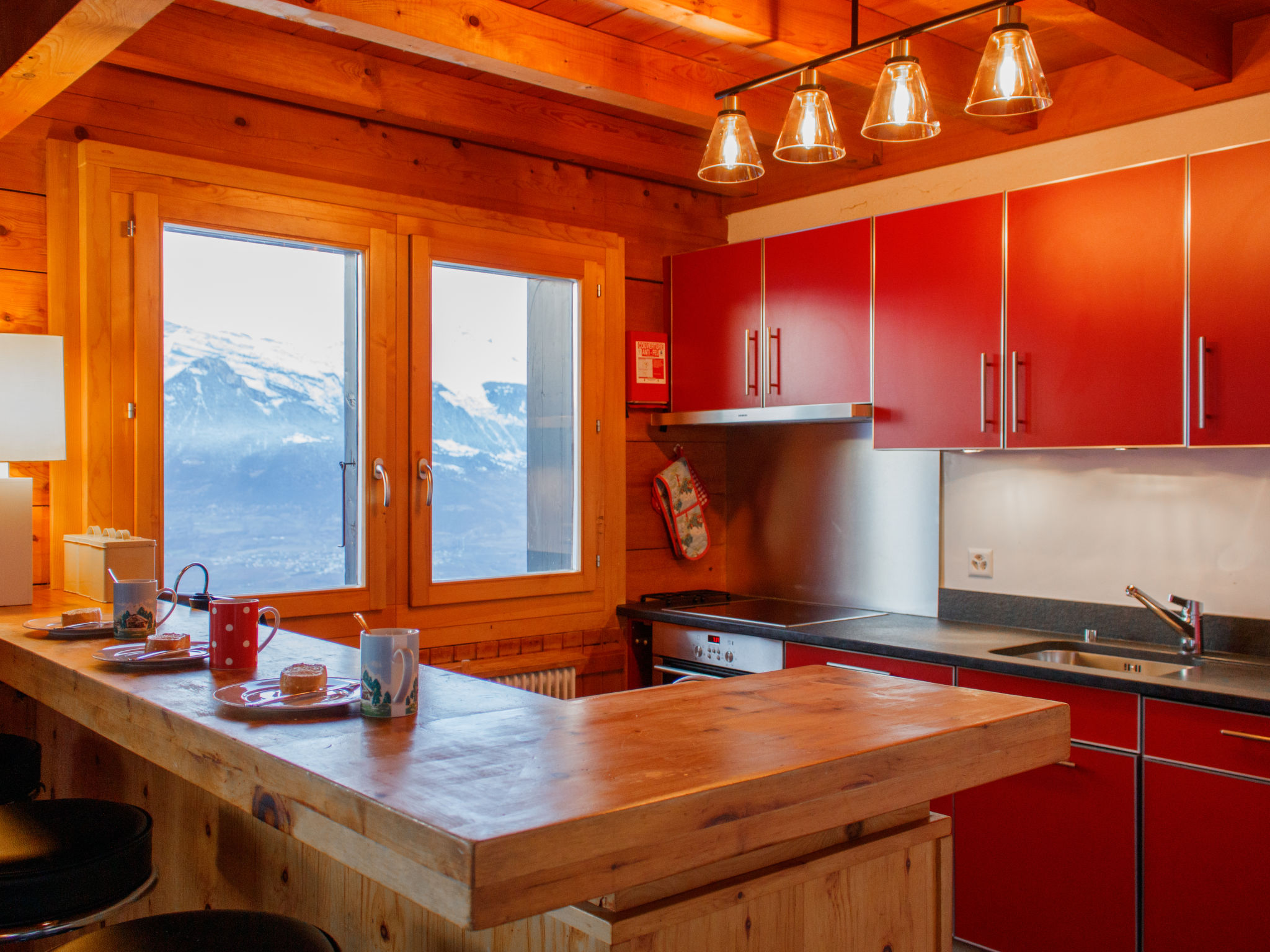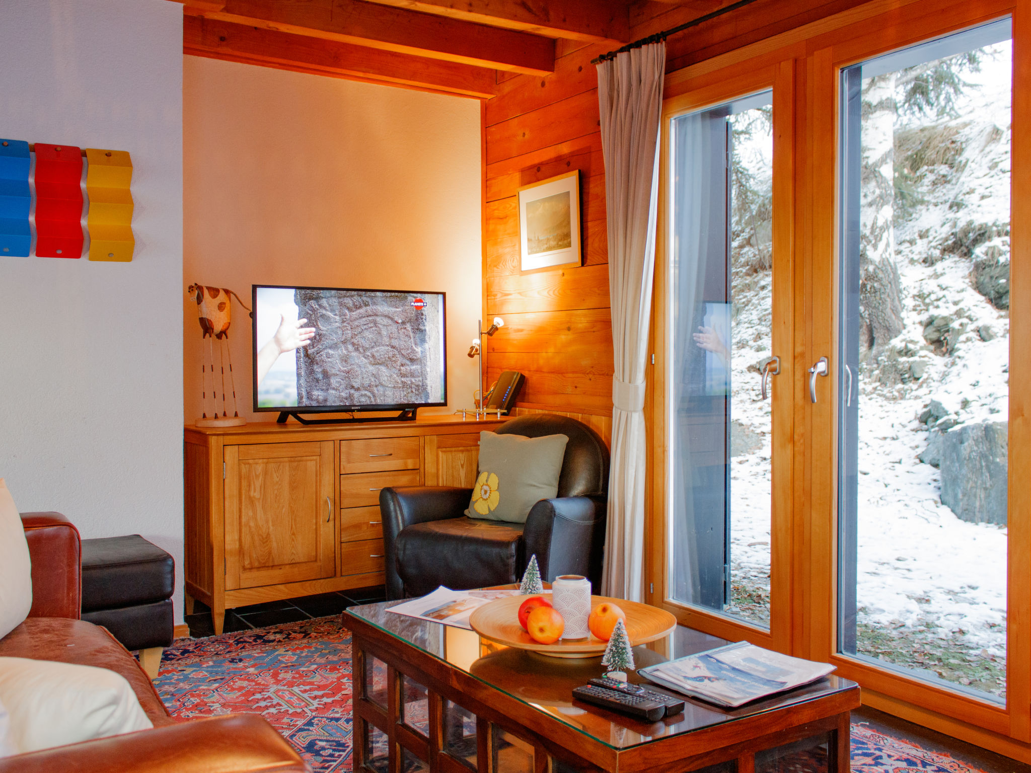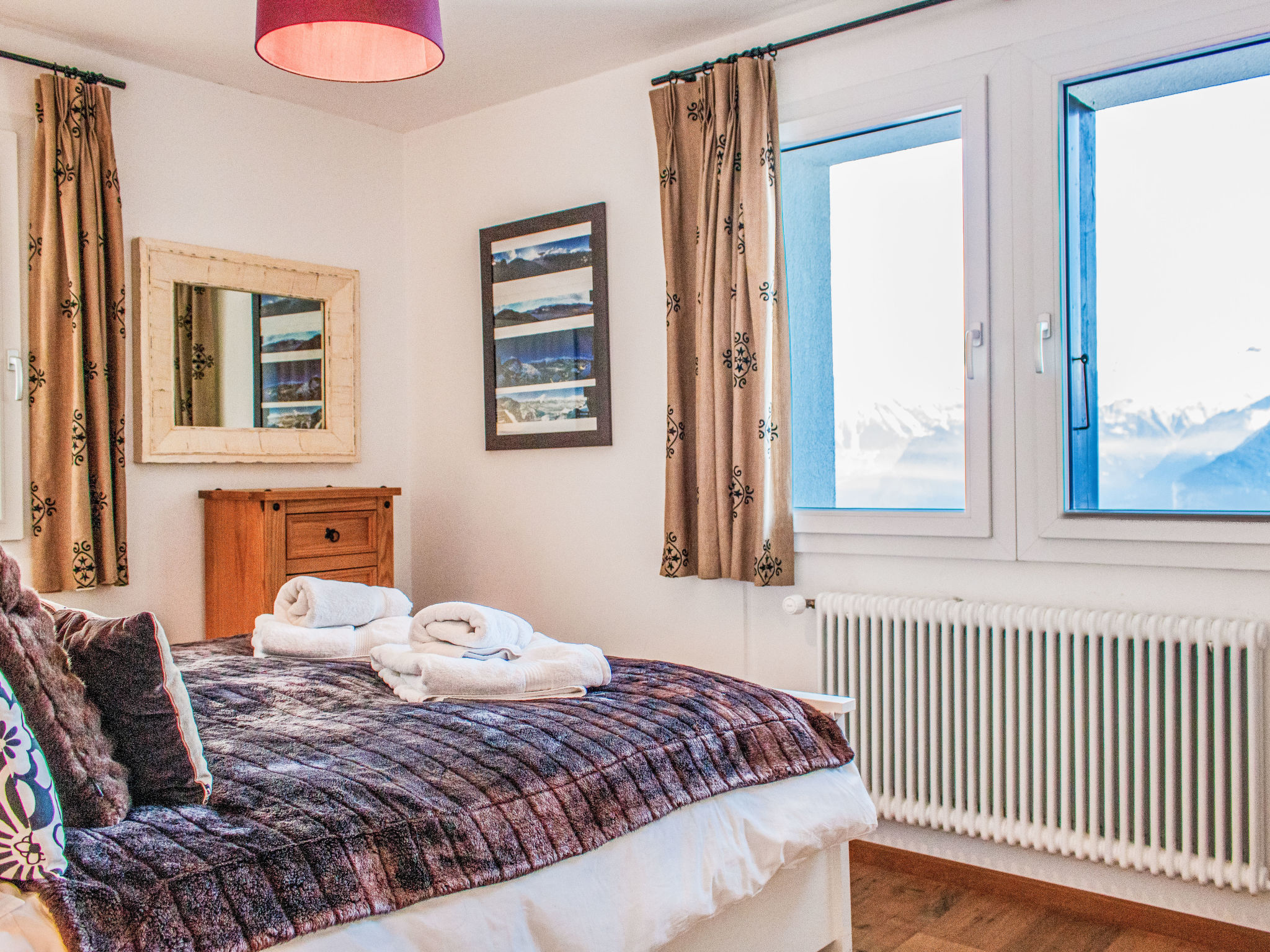 "Crettamour", 5-Zimmer-Chalet 170 m2 auf 3 Stockwerken. Komfortabel und geschmackvoll eingerichtet: Eingang. Wohn-/Esszimmer mit offenem Kamin, Kabel-TV und DVD. Ausgang zur Terrasse. Offene Küche (Backofen, Geschirrspüler, 4 Glaskeramikplatten, Toaster, Wasserkocher, Mikrowelle, elektrische Kaffeemaschine, Kapseln für die Kaffeemaschine (Nespresso) extra, Racletteofen, Fondue Set (Käse)). Dusche/WC. Heizung. Unteres Geschoss: 1 Zimmer mit 2 Betten (75 cm, Länge 190 cm). 1 Zimmer mit 1 franz. Bett (1 x 160 cm, Länge 200 cm). 1 Zimmer mit 2 Betten (90 cm, Länge 190 cm). Bad/WC. Obergeschoss: 1 Zimmer mit 2 Betten (90 cm, Länge 190 cm). Balkon, Nordlage, grosse Terrasse, Westlage. Terrassenmöbel, Gartengrill. Sehr schöne Sicht auf die Berge und das Tal. Zur Verfügung: Waschmaschine, Wäschetrockner, Kinderhochstuhl, Babybett bis 2 Jahre. Internet (WLAN, gratis). Parkplatz (2 Autos) in 50 m. Bitte beachten: Nichtraucher-Unterkunft.