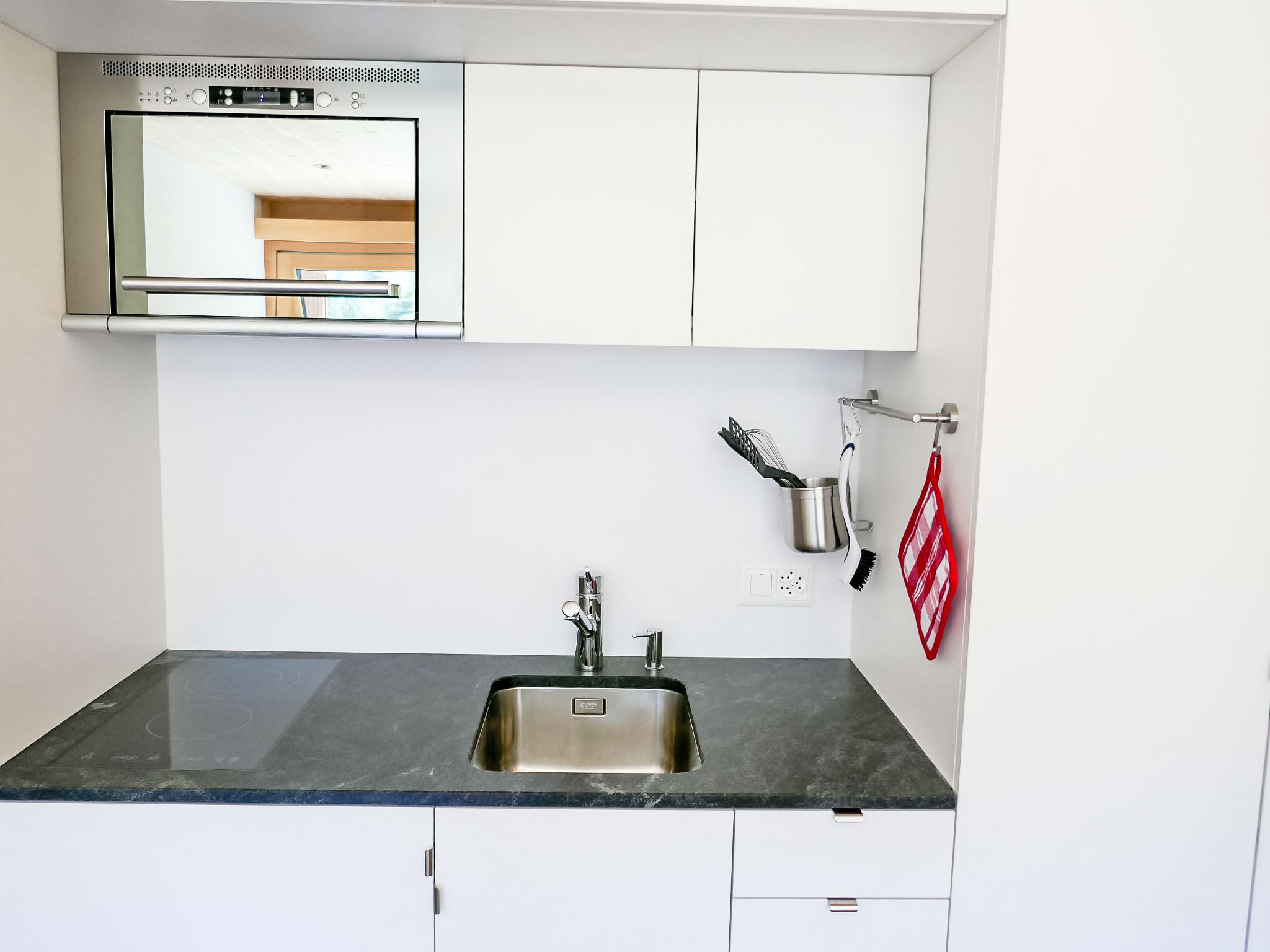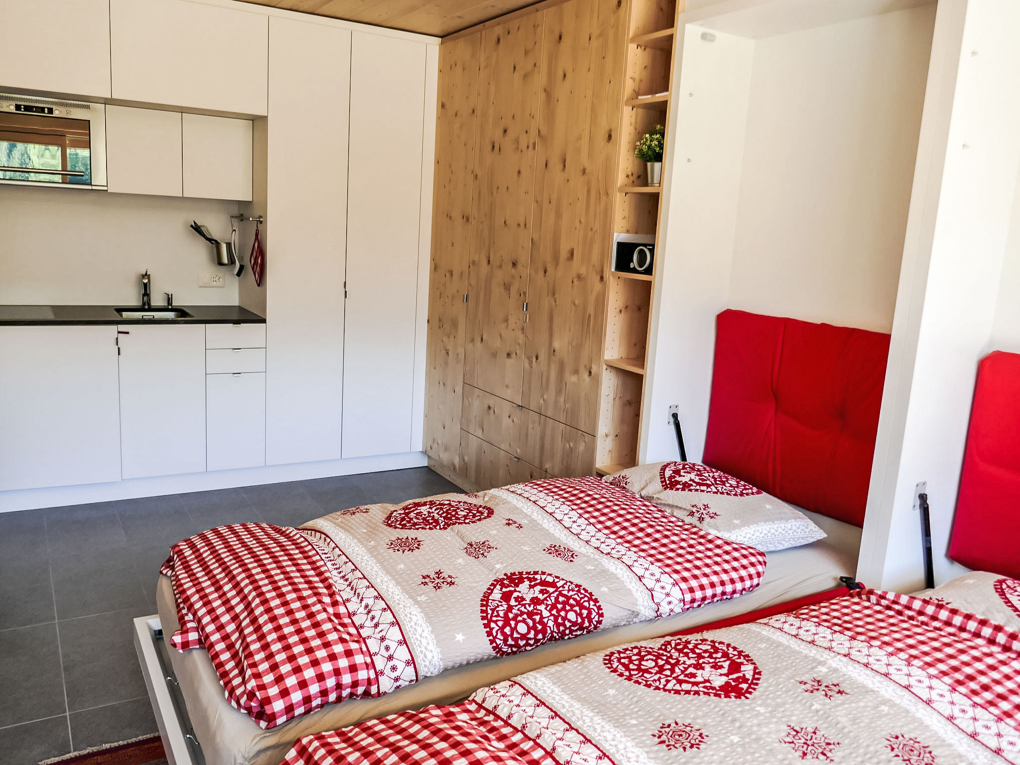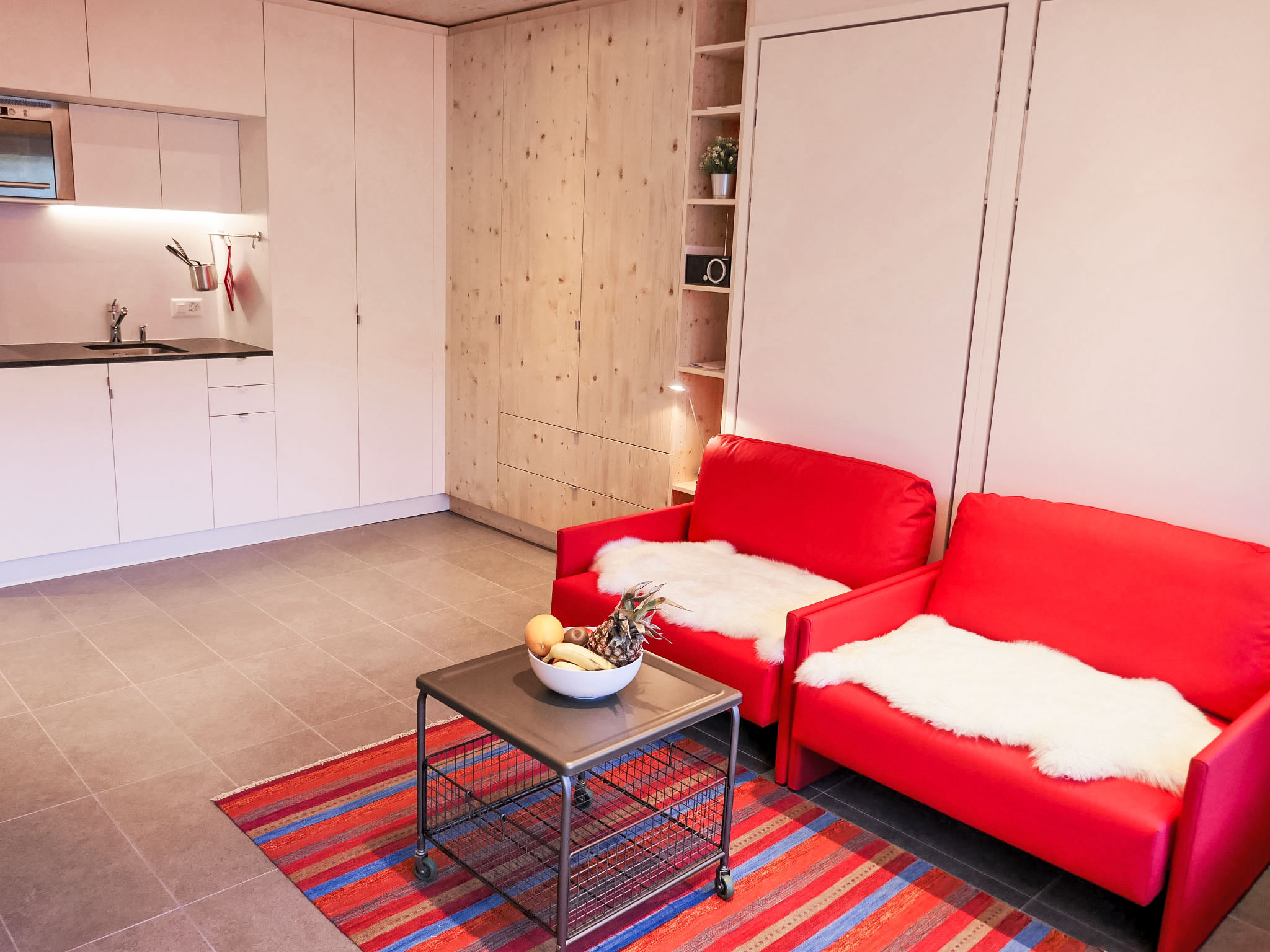 "Rosablanche D52", 1-Zimmer-Wohnung 25 m2 im 5. Stock. Vollständig renoviert im Jahre 2018, modern und geschmackvoll eingerichtet: Wohn-/Esszimmer mit 2 Wandschrankbetten (90 cm, Länge 190 cm) (2 Pers.), Kabel-TV und Radio. Kochnische (2 Glaskeramikplatten, Toaster, Wasserkocher, Mikrowelle, elektrische Kaffeemaschine, Kapseln für die Kaffeemaschine (Nespresso) extra, Fondue Set (Käse)). Dusche/WC. Balkon, Südlage. Balkonmöbel. Sicht auf die Skipiste. Zur Verfügung: Haartrockner. Internet (Wireless LAN). Bitte beachten: Nichtraucher-Haus. Aufzug D.