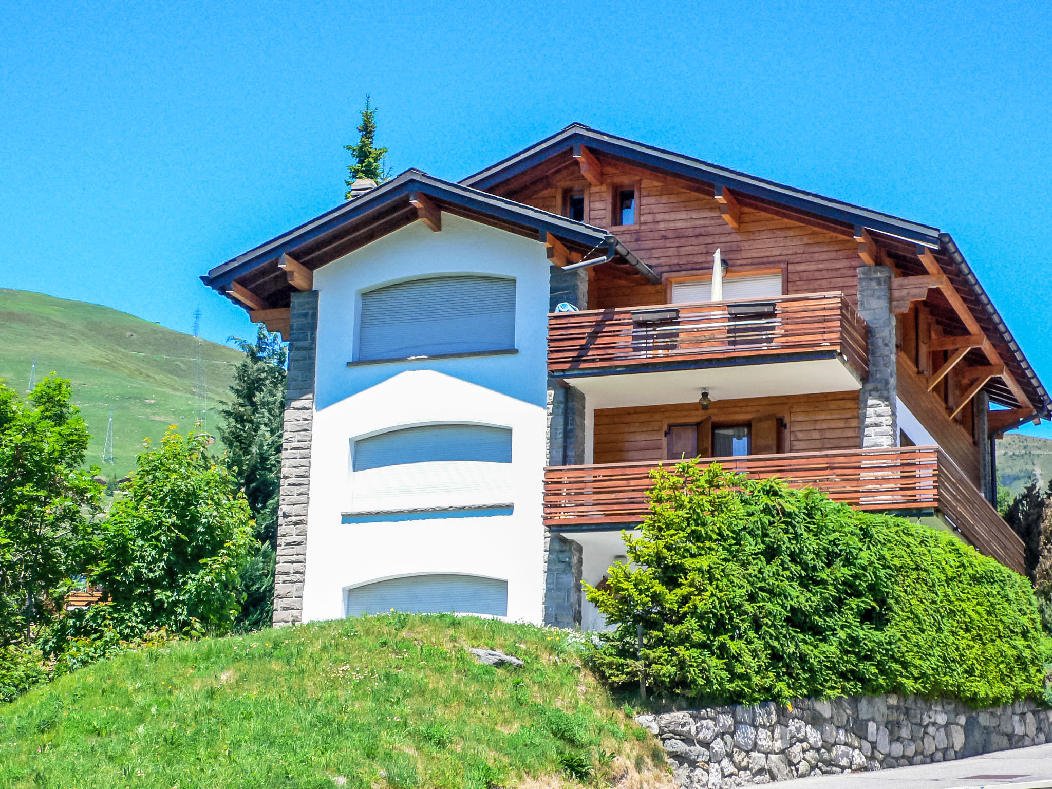 Dreifamilienhaus "La Toura". Im Ort, 400 m vom Zentrum von la station, sonnige Lage, an einer Hauptstrasse, Richtung Südosten. Im Hause: Zentralheizung. Zufahrt bis zum Haus. Parkplatz (beschränkte Anzahl) auf dem Grundstück, öffentliche Parkplätze 30 m. Einkaufsgeschäft 300 m, Supermarkt 100 m, Restaurant 300 m, Bar, Bäckerei 400 m, Café, Bushaltestelle "Montaney" 200 m, Hallenbad 500 m. Golfplatz (18 Loch) 1.6 km, Tennis 500 m, Reitstall 500 m, Sportzentrum, Sessellift 3.2 km, Gondelbahn 1.3 km, Skisportanlagen 800 m, Skibushaltestelle 200 m, Skischule 600 m, Ski-Kindergarten 300 m, Eisfeld 500 m, Kinderspielplatz 400 m. Der gratis Skibus fährt zum Skigebiet Médran 800m, Savoleyres 1.3km und Carrefour 3.2km. Bitte beachten: Nacht Club/Disco 300 m vom Haus.
