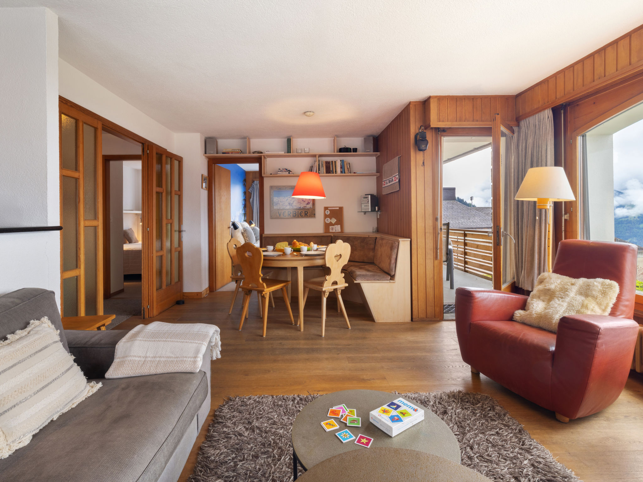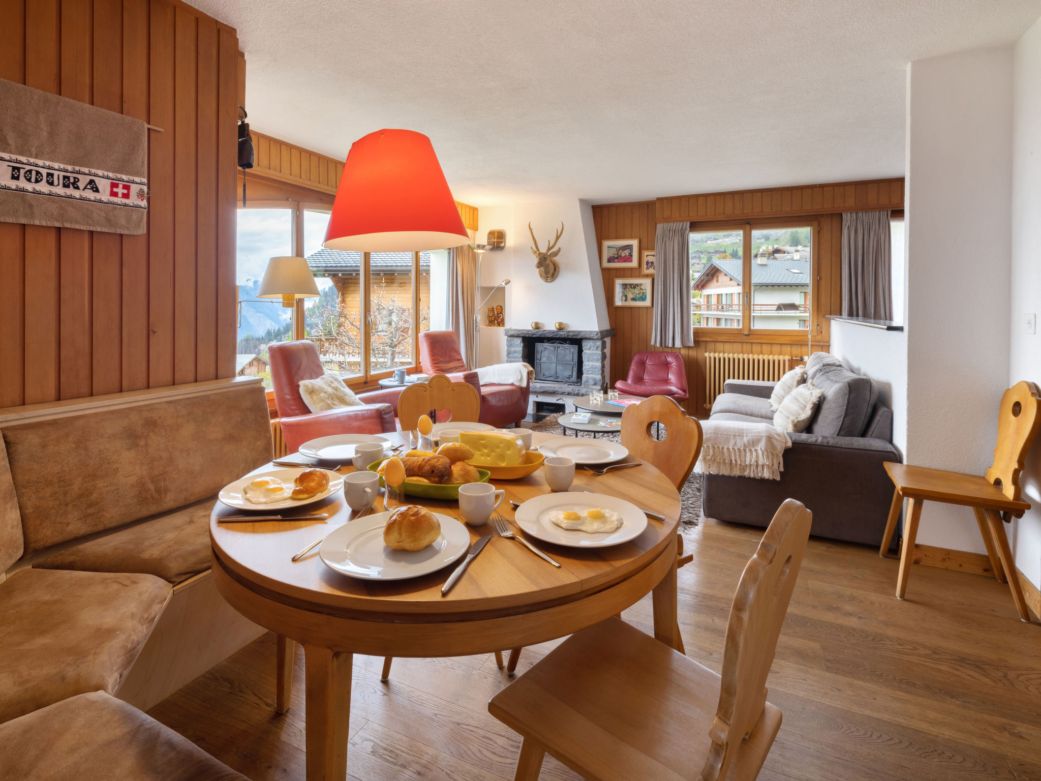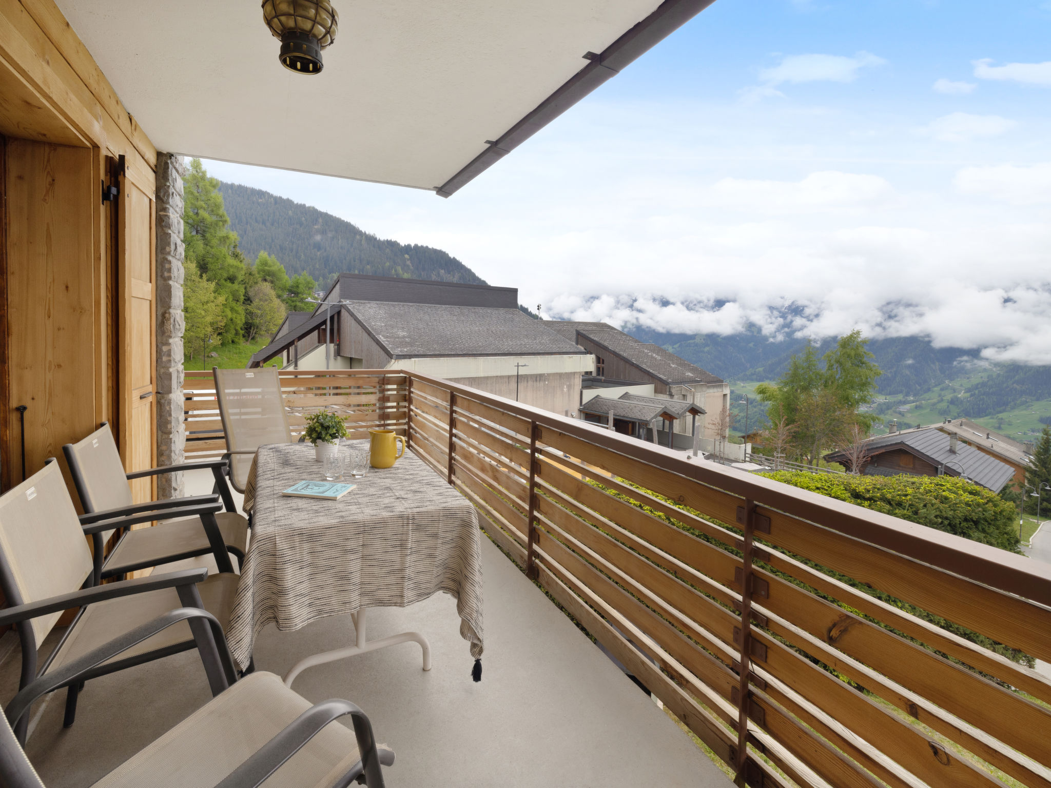 "La Toura", 4-Zimmer-Wohnung 70 m2 im 1. Stock, Südostlage. Teilweise renoviert im Jahre 2022, schön und gemütlich eingerichtet: Wohn-/Esszimmer mit offenem Kamin, Radio und CD. Ausgang zum Balkon. 2 Zimmer, jedes Zimmer mit 2 Betten (90 cm, Länge 200 cm). 1 Zimmer mit 1 franz. Bett (1 x 180 cm, Länge 200 cm). Offene Küche (Backofen, Geschirrspüler, 4 Induktionskochplatten, Toaster, Wasserkocher, Mikrowelle, Fondue Set (Käse)). Bad/WC. Balkon 10 m2, Südlage und Ostlage. Balkonmöbel. Sehr schöne Sicht auf die Berge und das Tal. Zur Verfügung: Haartrockner. Internet (Wireless LAN, gratis). Parkplatz Nr. milieu beim Haus. Bitte beachten: Nichtraucher-Unterkunft.