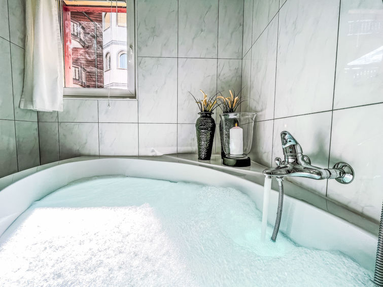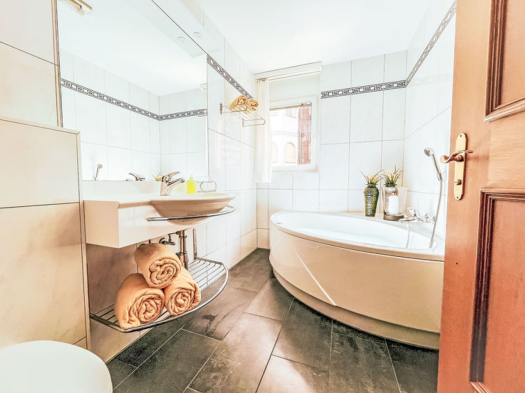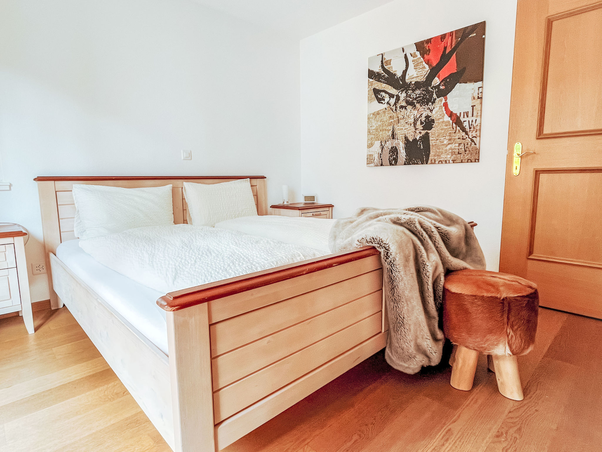 "Apartment Dom", 3-Zimmer-Wohnung 80 m2 im 2. Stock. Hell, schön und gemütlich eingerichtet: Wohn-/Esszimmer mit Schwedenofen und Kabel-TV. Ausgang zum Balkon. 2 Doppelzimmer, jedes Zimmer mit 1 Doppelbett (160 cm, Länge 200 cm), Kabel-TV. Offene Küche (Backofen, Geschirrspüler, 4 Glaskeramikplatten, Toaster, Wasserkocher, elektrische Kaffeemaschine) mit Esstisch. Bad/WC, Dusche/WC. Balkon. Balkonmöbel. Sicht auf die Berge. Zur Verfügung: Haartrockner. Internet (Wireless LAN, gratis). Bitte beachten: Nichtraucher-Unterkunft.