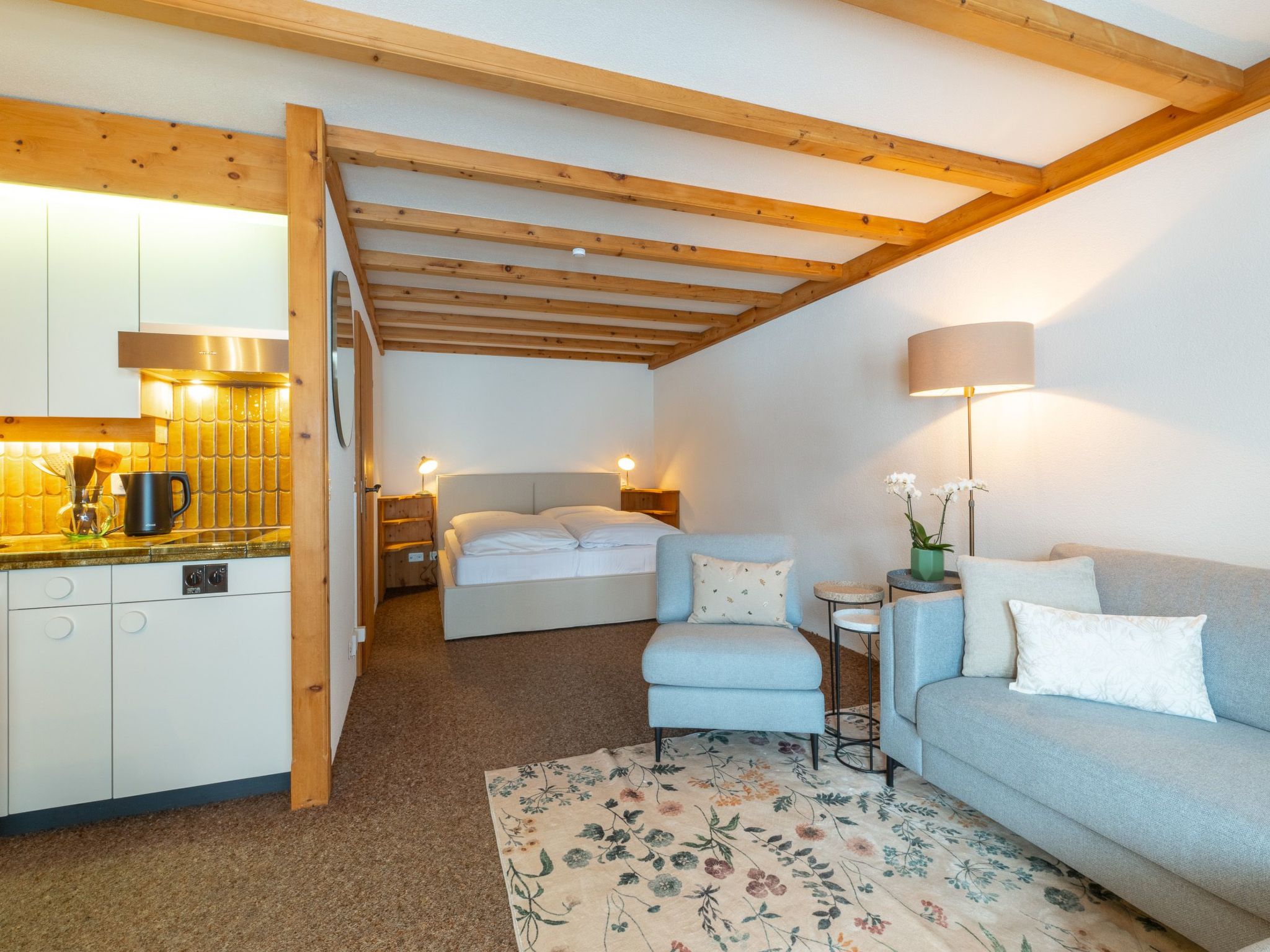 Bestehen aus einem Vorraum, einem grossen Wohn- und Schlafzimmer sowie einem kleinen Badezimmer.