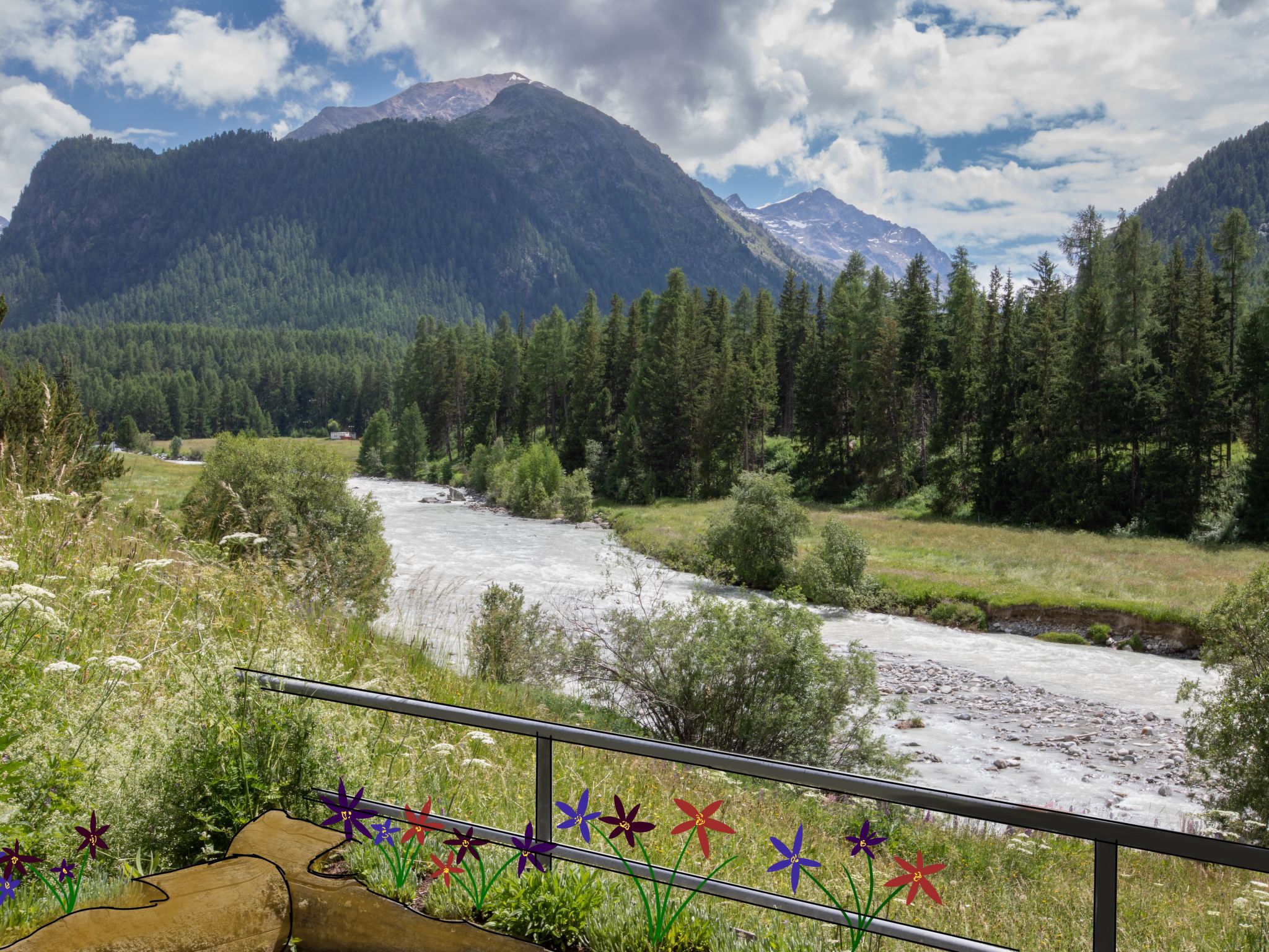 • Gartensitzplatz mit einzigartiger Aussicht auf die Berge und den Flaz (Fluss)