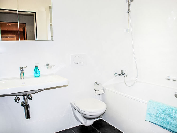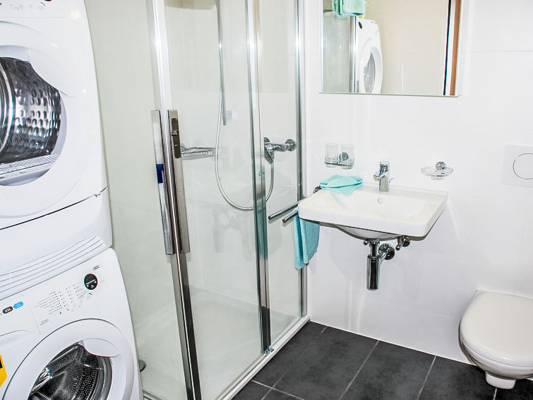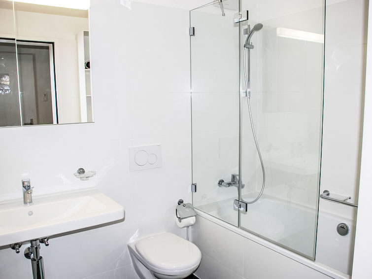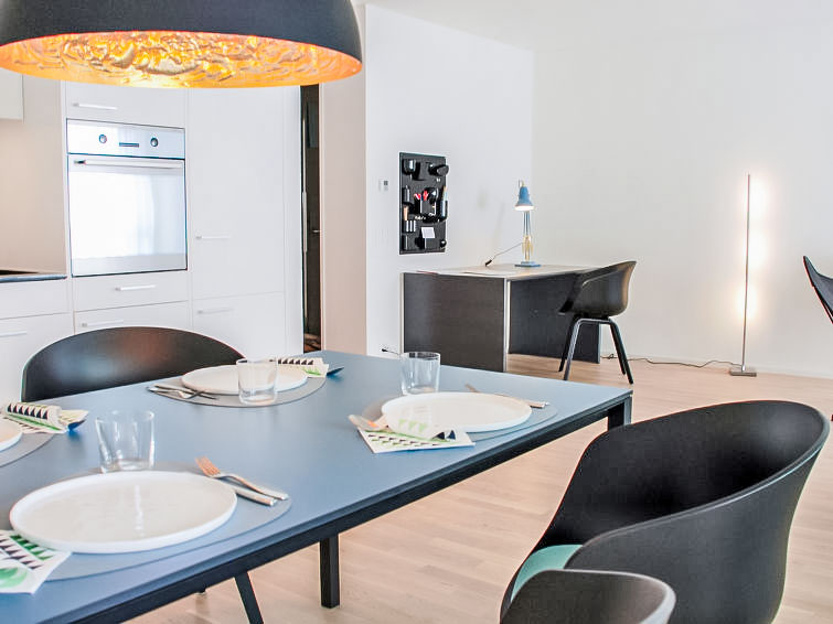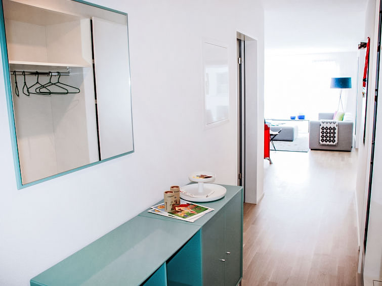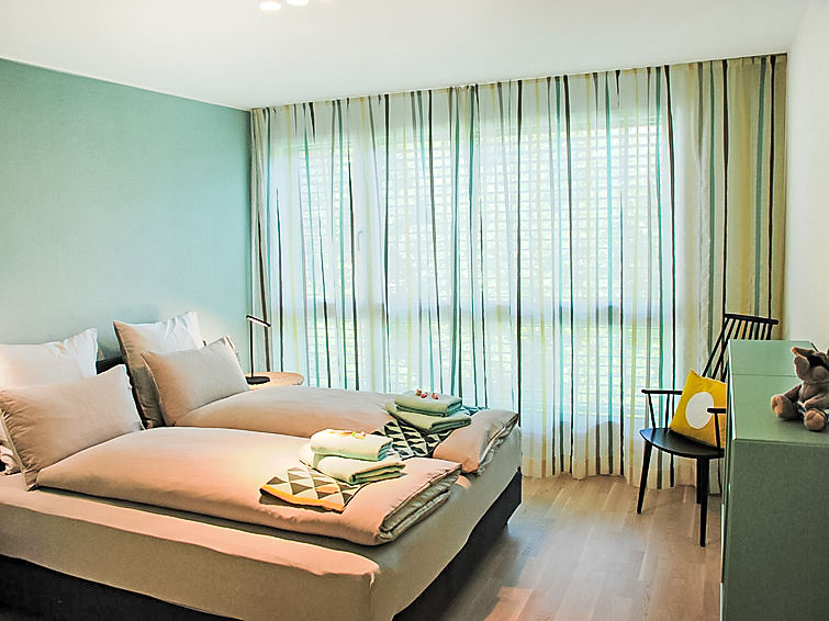 "LaVille A-3-4", 3-Zimmer-Wohnung 80 m2 im 3. Stock, Südwestlage. Geräumig und hell, modern und geschmackvoll eingerichtet: offenes grosses Wohn-/Esszimmer mit Sat-TV und Flachbildschirm. 1 Doppelzimmer mit 1 Doppelbett (2 x 90 cm, Länge 200 cm). 1 Zimmer mit 2 Betten (90 cm, Länge 200 cm). Offene Küche (Backofen, Geschirrspüler, 4 Induktionskochplatten, Tiefkühler, elektrische Kaffeemaschine, Kapseln für die Kaffeemaschine (Nespresso) extra) mit Esstisch. Ausgang zum Balkon. Bad/WC, Dusche/WC. Bodenheizung. Balkon 9 m2, Südlage und Westlage. Balkonmöbel, Liegestühle (1). Sicht auf die Berge und die Landschaft. Zur Verfügung: Waschmaschine, Wäschetrockner, Bügeleisen, Kinderhochstuhl, Babybett bis 2 Jahre (extra), Haartrockner. Internet (WLAN, gratis). Parkplatz Nr. 48 (extra), Höhe 210 cm, Breite 230 cm. Bitte beachten: Nichtraucher-Unterkunft. NL-00006854