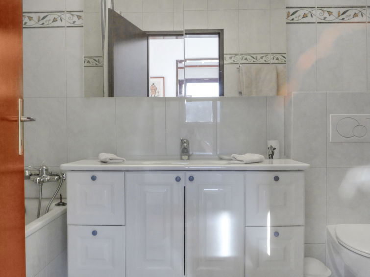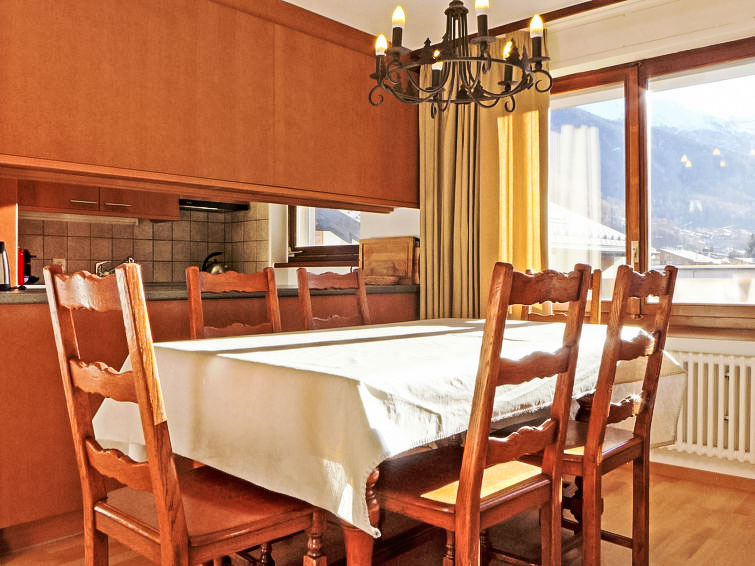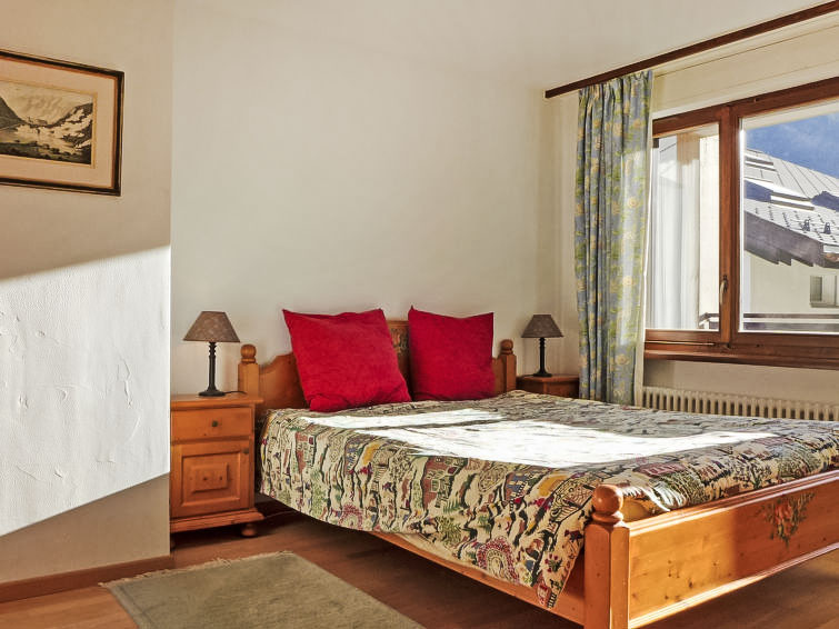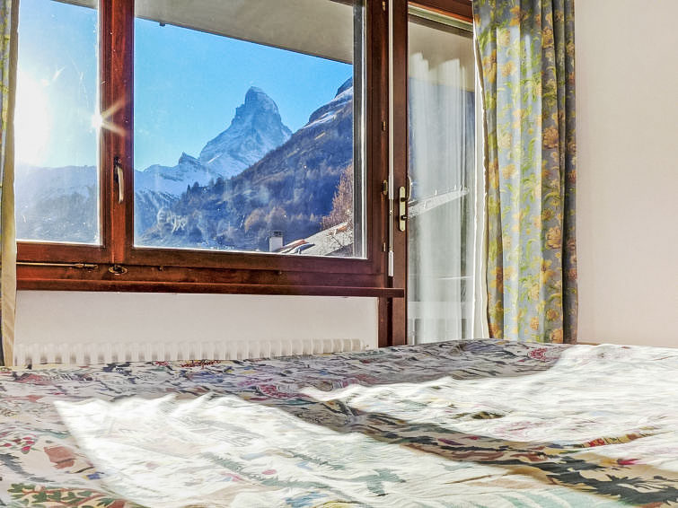 4-Zimmer-Wohnung 115 m2 im 4. Stock. Hell, komfortabel und gemütlich eingerichtet: Wohnzimmer mit offenem Kamin, Esstisch und TV. Ausgang zum Balkon. 2 Doppelzimmer, jedes Zimmer mit 1 Doppelbett (1 x 160 cm, Länge 200 cm). 1 Zimmer mit 2 Betten (90 cm, Länge 200 cm). Küche (Backofen, Geschirrspüler, 4 Glaskeramikplatten, Toaster, Wasserkocher, Tiefkühler, elektrische Kaffeemaschine, Racletteofen, Fondue Set (Käse)) mit Durchreiche. Bad/WC, Dusche/WC. Grosser Balkon 30 m2, Südlage. Balkonmöbel, Liegestühle. Schöne Sicht auf das Matterhorn. Zur Verfügung: Haartrockner. Internet (WLAN, gratis). Bitte beachten: Nichtraucher-Unterkunft. NO.5457A/S