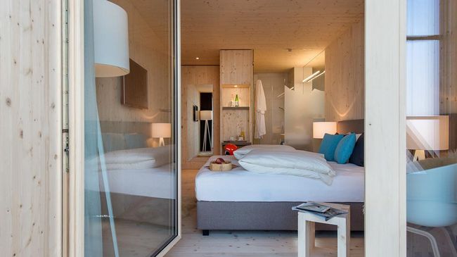 Ein Hotel für Langläufer und Mountainbiker, Bergsportler und Winter-Wanderer. Mitten im Land der Loipen, Pisten, Passstrassen, Wanderwege und Singletrails. Herzlich willkommen im ersten modularen Hotel aus Holz in der Schweiz!