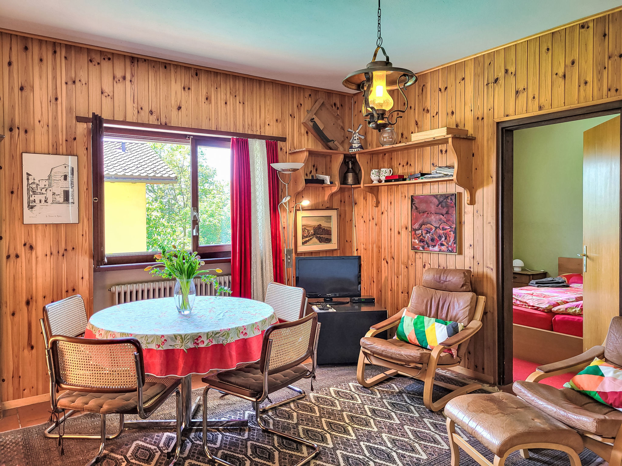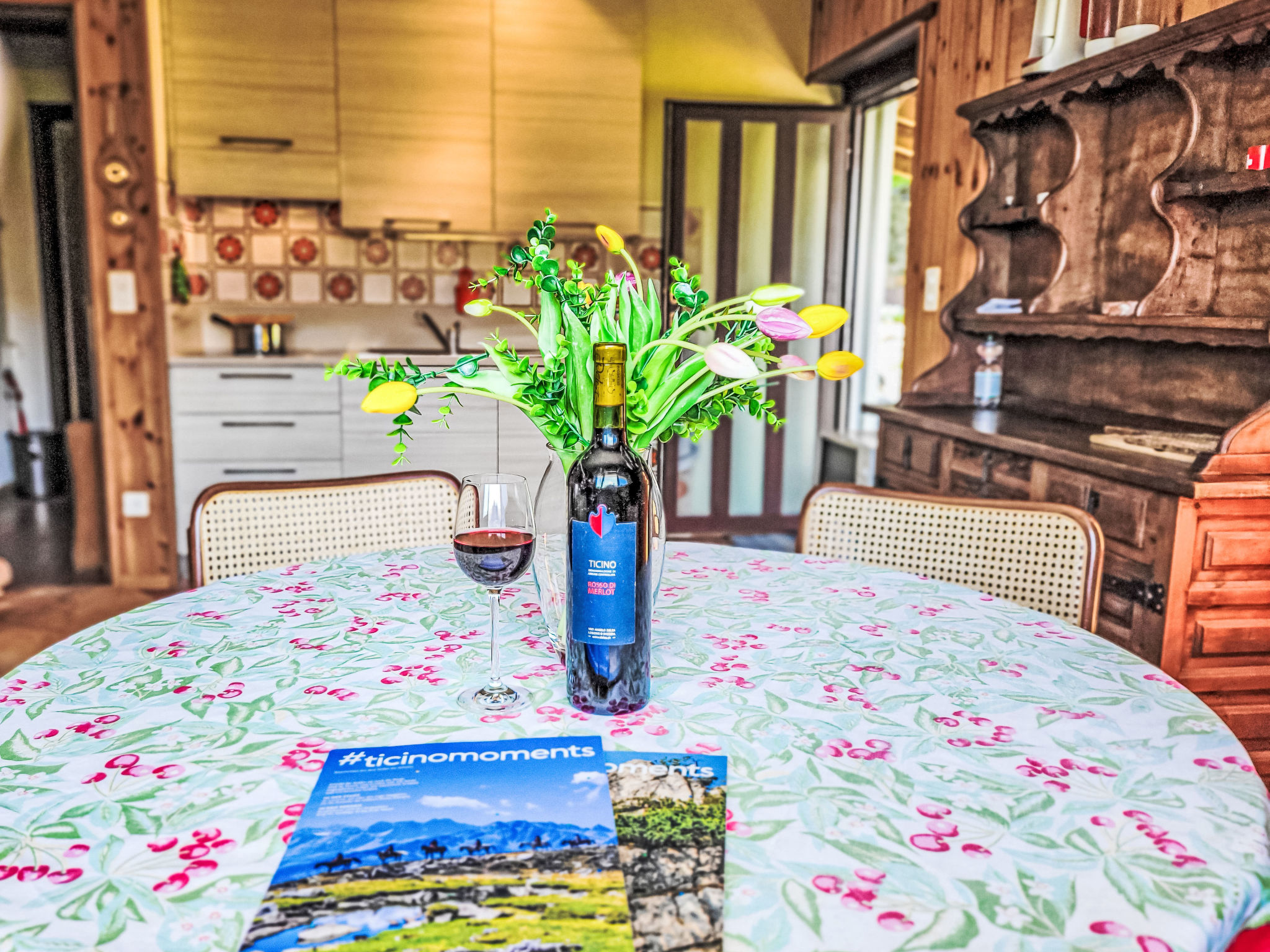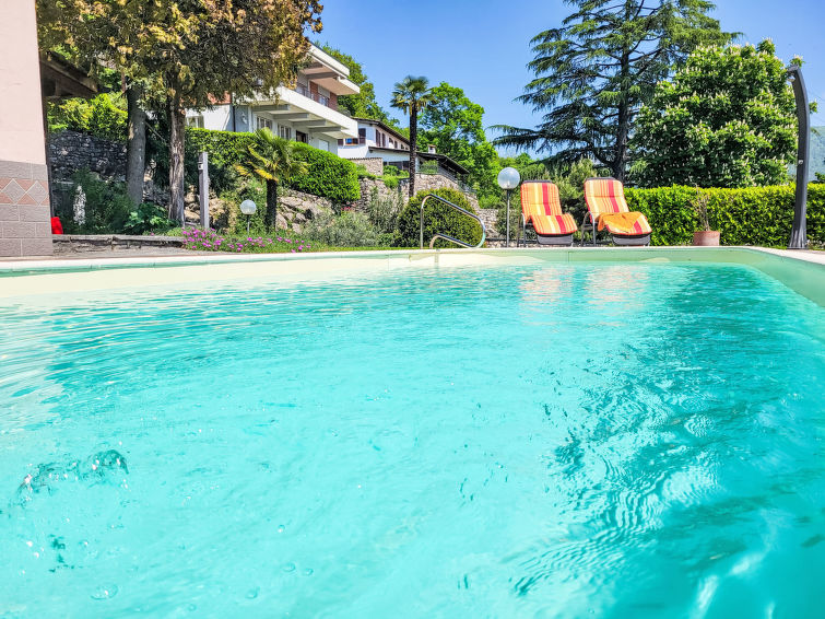 3-Zimmer-Wohnung Südwestlage. Objekt geeignet für 4 Erwachsene. Zweckmässig und mit viel Holz eingerichtet: Wohn-/Esszimmer mit Internationale TV-Sender, Flachbildschirm und Radio. Ausgang zum Garten, zum Schwimmbad. 1 Doppelzimmer mit 2 Betten (90 cm, Länge 200 cm). 1 Zimmer mit 2 Betten (90 cm, Länge 200 cm). Offene Küche (4 Glaskeramikplatten, Toaster, Wasserkocher, Mikrowelle, elektrische Kaffeemaschine, Kapseln für die Kaffeemaschine (Nespresso) extra). Ausgang zum Garten, zum Gartensitzplatz, zum Schwimmbad. Dusche/WC. Natursteinboden. Grosser Gartensitzplatz. Terrassenmöbel, Gartengrill. Sehr schöne Panoramasicht auf die Berge, die Landschaft und die Ortschaft. Zur Verfügung: Haartrockner. Internet (WLAN). Geeignet für Familien. NL-00011874