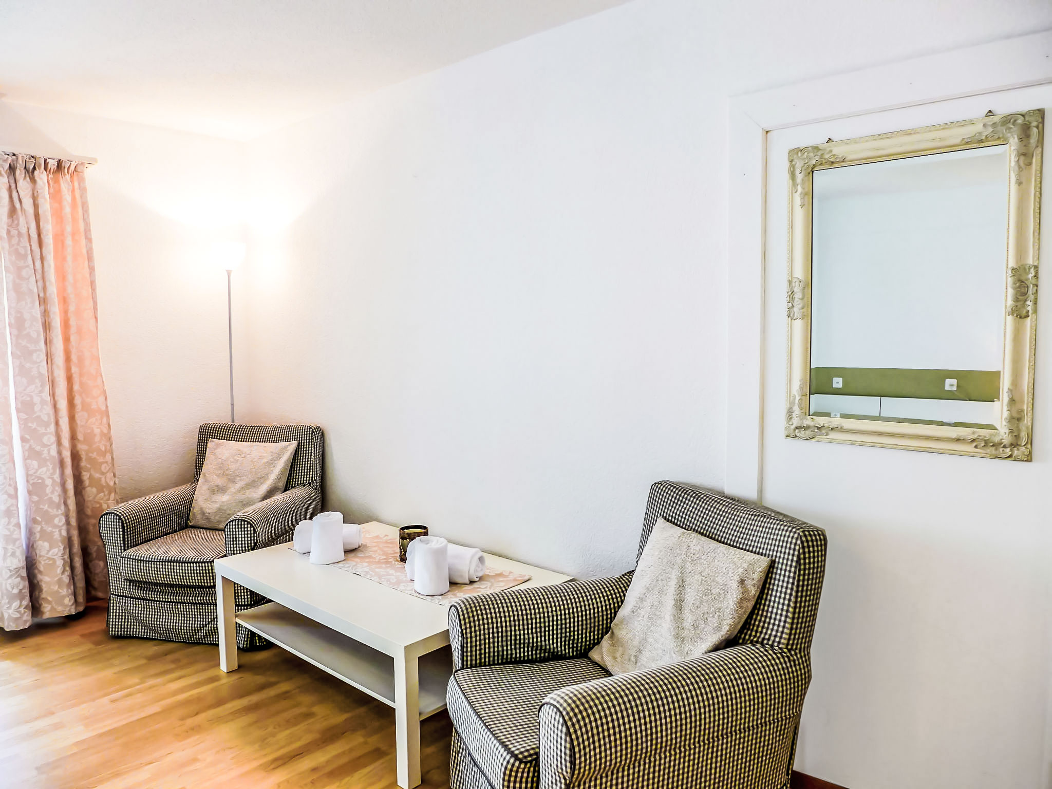 "Chesa Ova Cotschna 304", 1-Zimmer-Wohnung 32 m2 im 3. Stock, Westlage. Modern und gemütlich eingerichtet: Wohn-/Schlafzimmer mit 1 Doppelbett (2 x 90 cm, Länge 200 cm), Esstisch und TV (Flachbildschirm). Ausgang zur Loggia. Kleine Küche (Backofen, 4 Glaskeramikplatten, Toaster, Wasserkocher, elektrische Kaffeemaschine, Kapseln für die Kaffeemaschine (Nespresso) extra). Bad/WC. Balkonmöbel. Sicht auf die Berge und die Ortschaft. Zur Verfügung: Haartrockner. Internet (WLAN, gratis). Bitte beachten: Nichtraucher-Unterkunft, kein Parkplatz. Maximal 1 Haustier/Hund erlaubt.