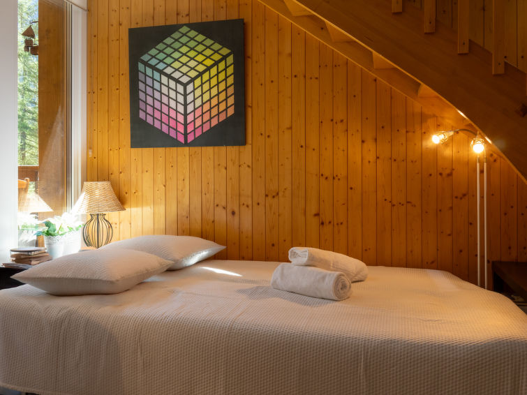 "Mont-Fort 70", 3-Zimmer-Attikawohnung 65 m2 auf 2 Stockwerken im 7. Stock. Teilweise abgeschrägt, schön und mit viel Holz eingerichtet: Wohn-/Esszimmer mit 1 Diwanbett (140 cm, Länge 190 cm), Kabel-TV. Ausgang zum Balkon. Offene Küche (Geschirrspüler, 4 Glaskeramikplatten, Toaster, Wasserkocher, Mikrowelle, Tiefkühler, elektrische Kaffeemaschine, Racletteofen, Fondue Set (Käse)). Bad/WC. Dachgeschoss: offenes, verbundenes Zimmer mit 1 Doppelbett (2 x 80 cm, Länge 200 cm). 1 abgeschrägtes kleines Zimmer, Deckenhöhe 80 - 250 cm mit Dusche/WC. Kleiner Balkon, Südlage. Balkonmöbel. Sehr schöne, auf die Berge. Zur Verfügung: Internet (WLAN). Bitte beachten: Nichtraucher-Unterkunft, kein Parkplatz.