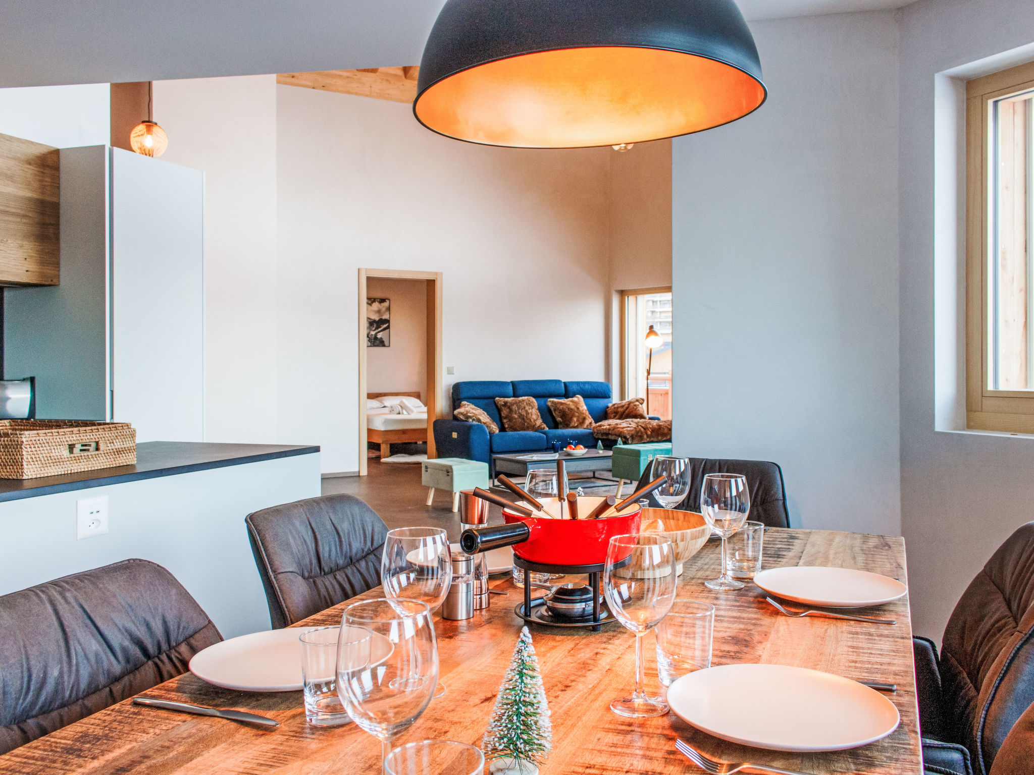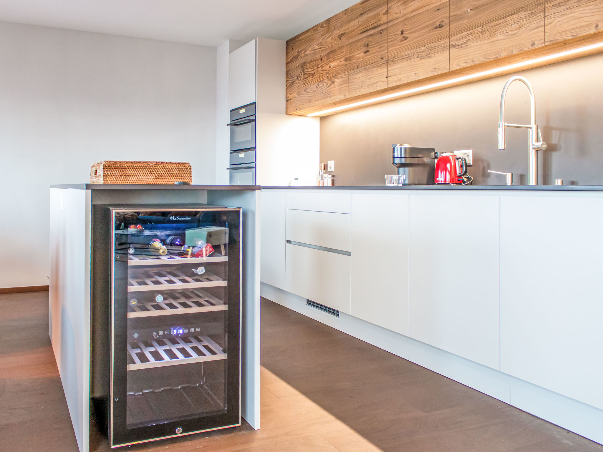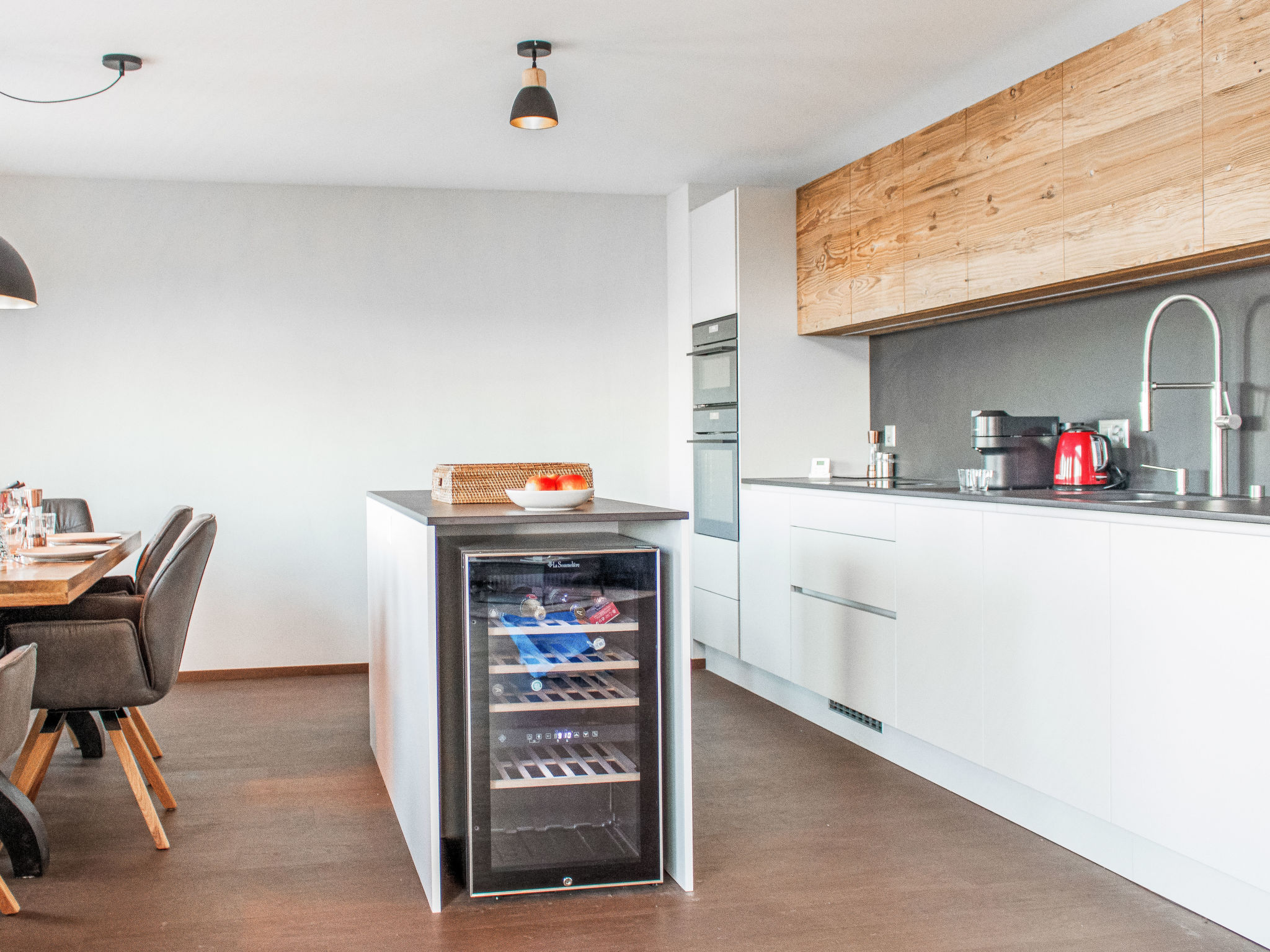 "Bike & Ski 301", 4-Zimmer-Dachterrassenwohnung 128 m2 im 3. Stock, Nordostlage. Geräumig, komfortabel und geschmackvoll eingerichtet: grosses Wohn-/Esszimmer mit Kabel-TV. Ausgang zur Terrasse. 1 Zimmer mit 1 franz. Bett und Dusche/WC. Ausgang zur Terrasse. 1 Zimmer mit 1 franz. Bett und Dusche/WC. Ausgang zur Terrasse. 1 Zimmer mit 1 Ausziehbett (2 Pers.), Dusche/WC. Offene Küche (Backofen, Geschirrspüler, 4 Induktionskochplatten, Toaster, Wasserkocher, Mikrowelle, elektrische Kaffeemaschine, Kapseln für die Kaffeemaschine (Nespresso) extra, Racletteofen, Fondue Set (Käse)). Sep. WC. Fussbodenheizung. Herrliche Panoramasicht auf die Berge. Zur Verfügung: Waschmaschine, Wäschetrockner, Haartrockner. Internet (Wireless LAN, gratis). Parkplatz (überdacht). Bitte beachten: Nichtraucher-Unterkunft.
