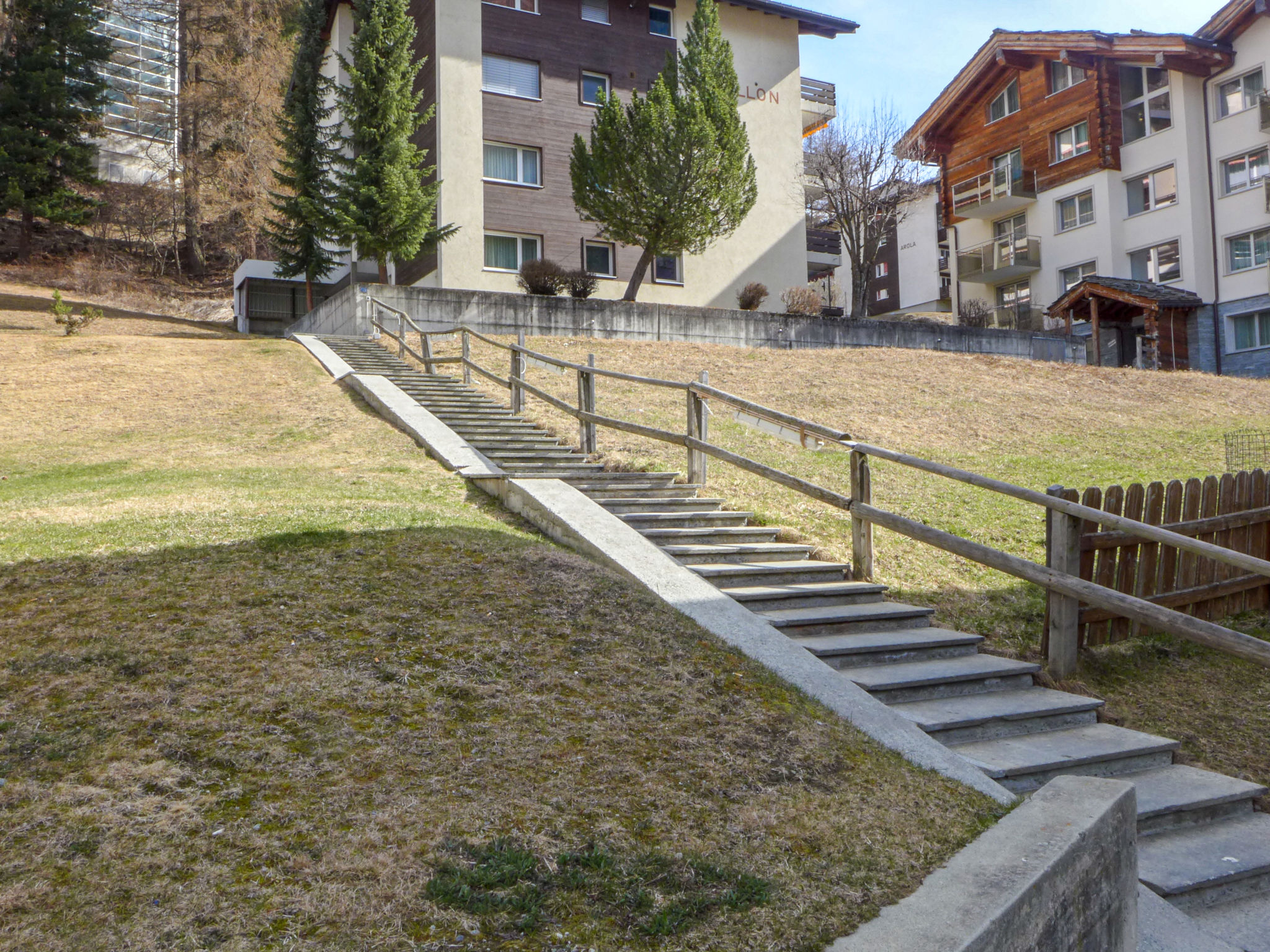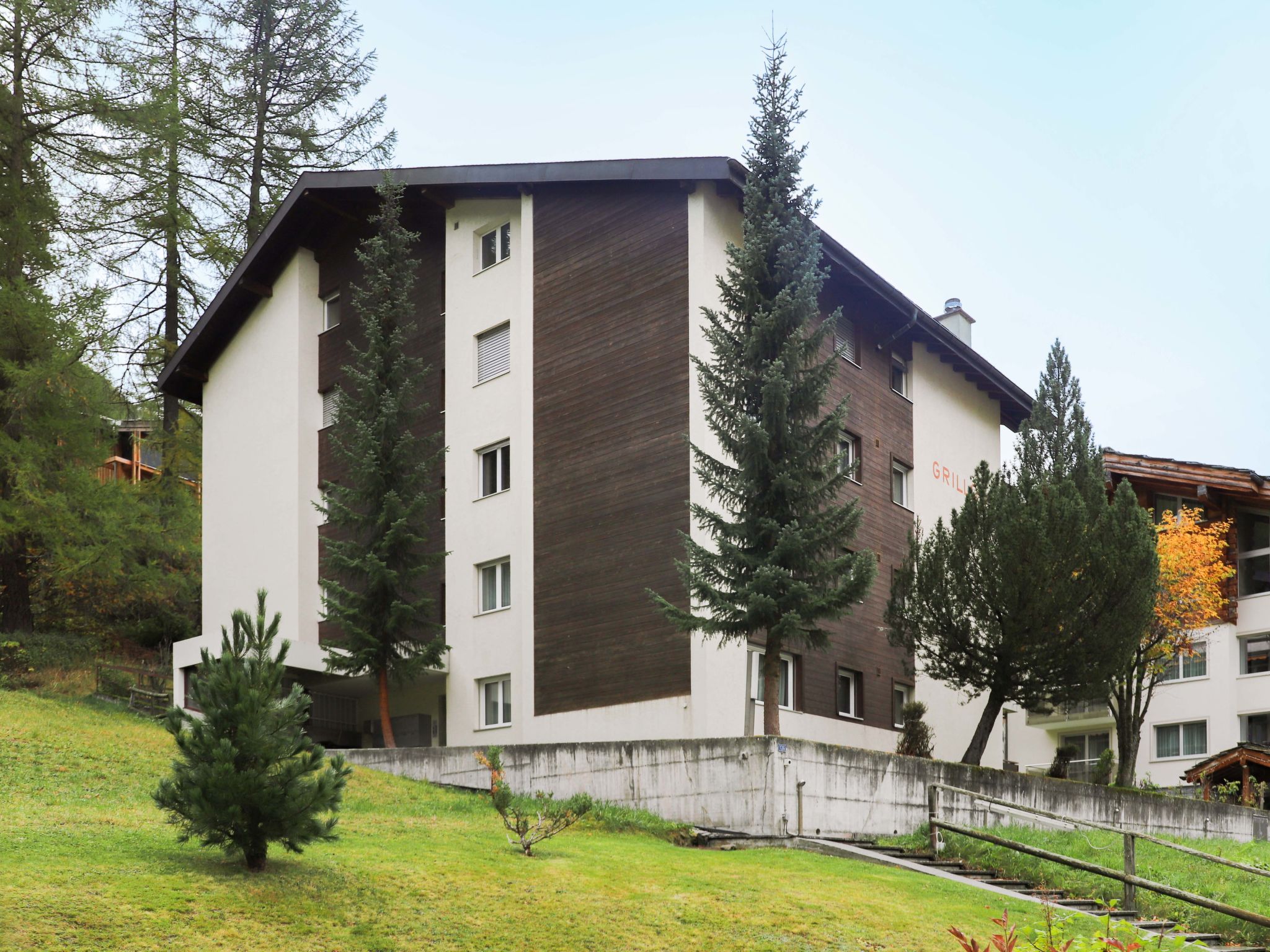 Einfaches Mehrfamilienhaus "Grillon", auf 4 Stockwerken. Im Ortsteil Wiesti, 650 m vom Zentrum von Zermatt, ruhige, erhöhte Lage, Richtung Süden. Im Hause: Fahrstuhl, Skiraum, Zentralheizung. Treppenweg bis zum Haus. Supermarkt 500 m, Restaurant 100 m, Bäckerei 400 m, Zentrum zu Fuss in 10 Minuten erreichbar, Bushaltestelle "Wiestibrücke" 260 m, Bahnstation "Bahnhof Zermatt" 650 m. Bergeisenbahn 350 m, Skiverleih 350 m, Skibushaltestelle, Skischule 750 m, Kinderskischule. Taxi kann nicht bis zum Haus fahren. Die Schlüsselübergabe findet bei der Agentur Interhome in Zermatt statt.