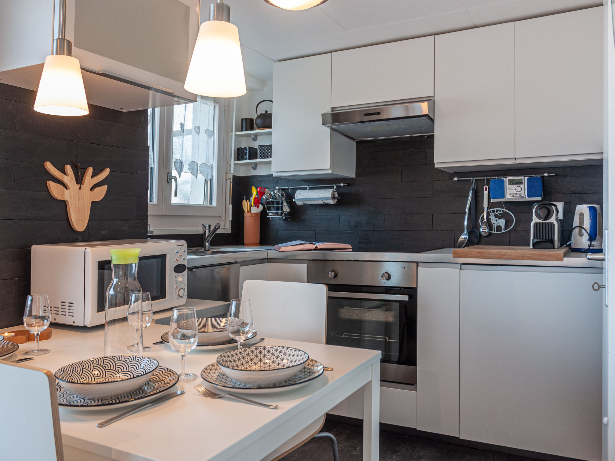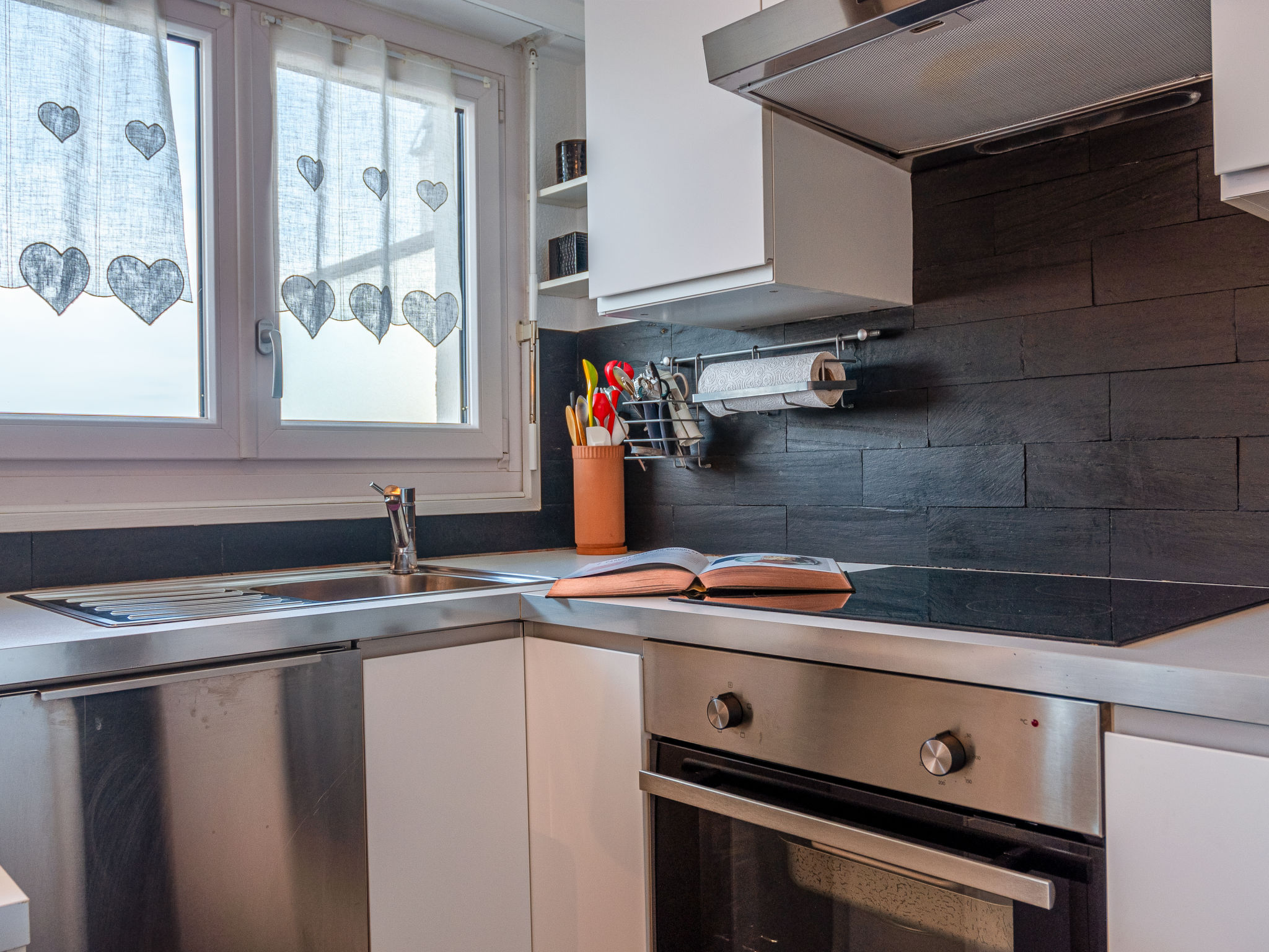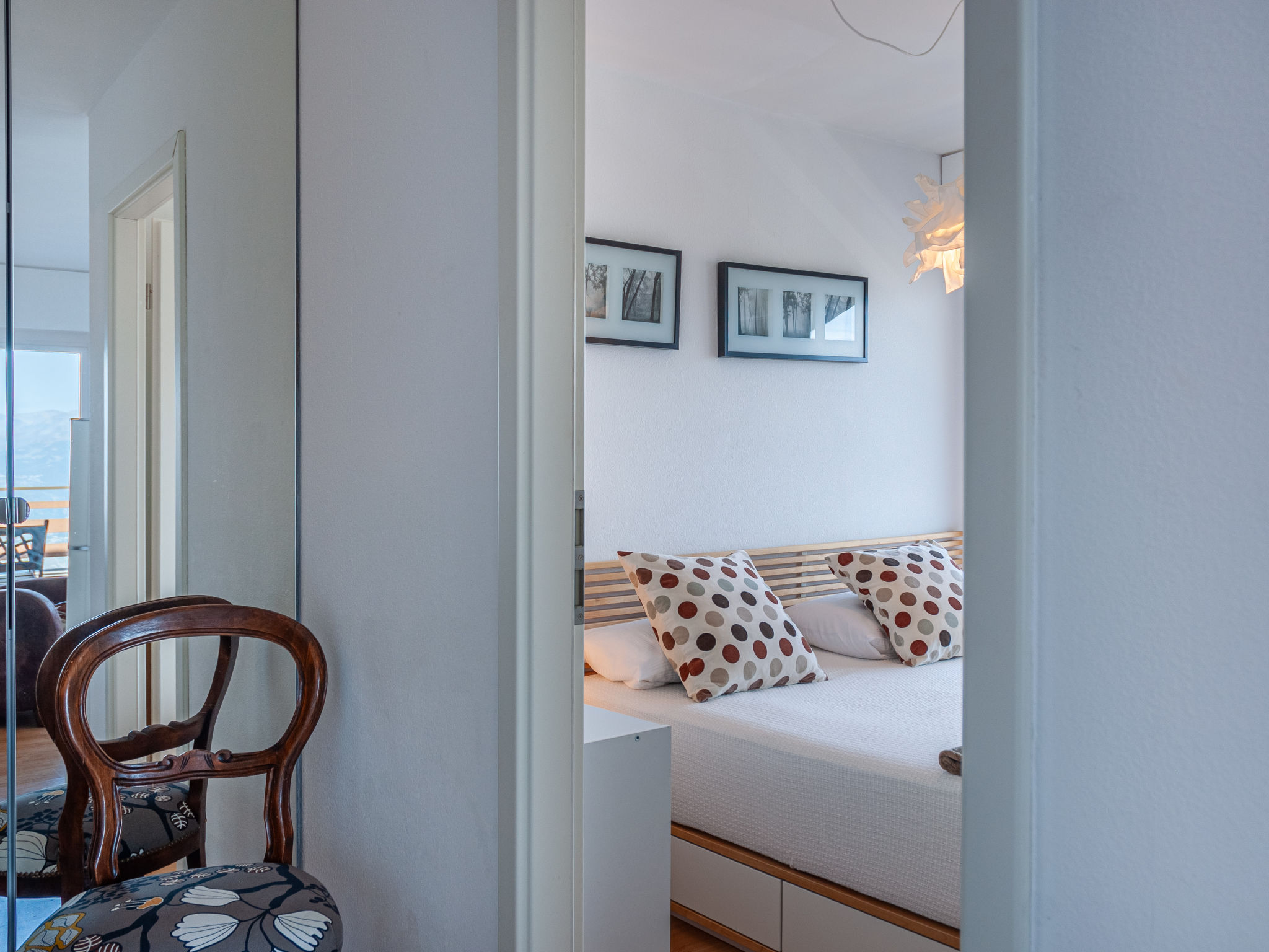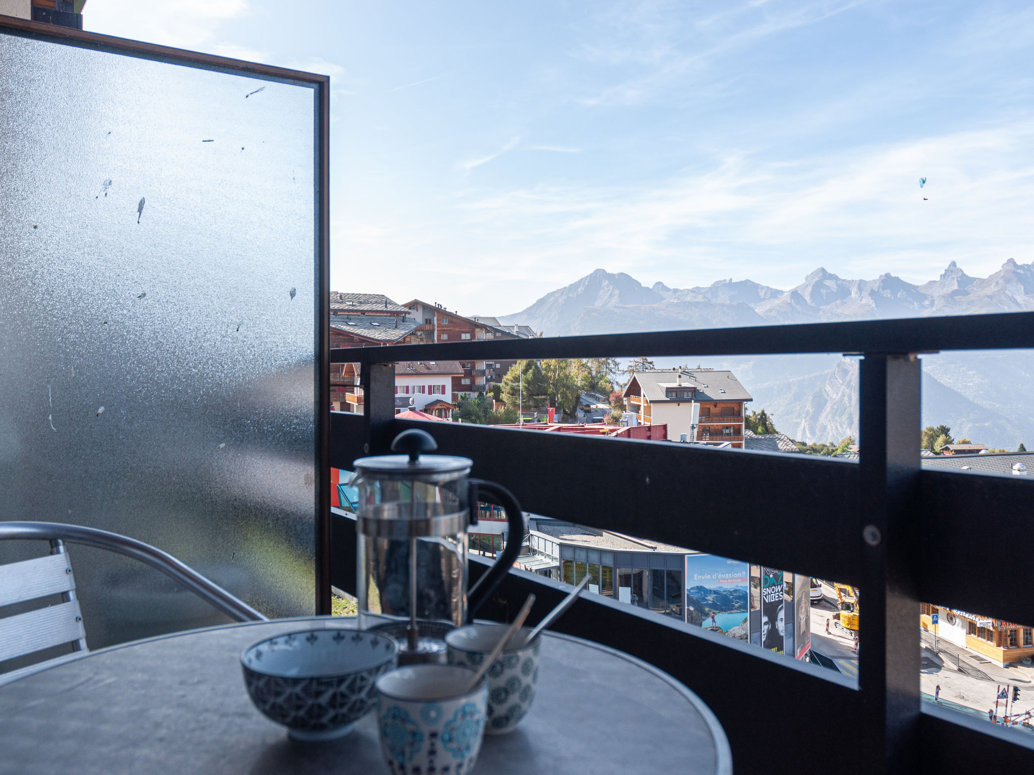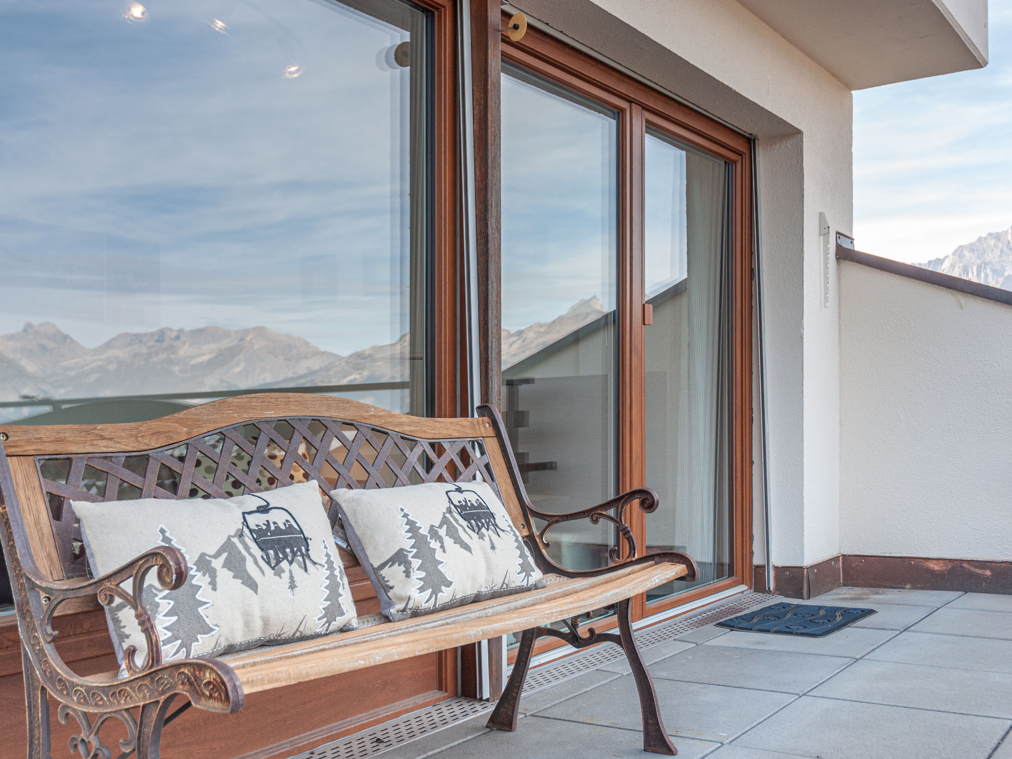 "Olympic C7", 2-Zimmer-Wohnung 38 m2 im 7. Stock, Nordwestlage. Objekt geeignet für 2 Erwachsene + 2 Kinder. Vollständig renoviert im Jahre 2023, komfortabel und schön eingerichtet: Eingang. 1 Zimmer mit 1 franz. Bett (160 cm, Länge 200 cm). Ausgang zum Balkon. Eingang mit 1 x 2 Etagenbetten (90 cm, Länge 190 cm), Kabel-TV. Ausgang zur Terrasse. Offene Küche (Backofen, Geschirrspüler, 4 Glaskeramikplatten, Toaster, Wasserkocher, Mikrowelle, elektrische Kaffeemaschine, Kapseln für die Kaffeemaschine (Nespresso) extra, Racletteofen, Fondue Set (Chinoise, Käse)) mit kleinem Esstisch. Dusche/WC. Kleiner Balkon, Nordlage, grosse Terrasse 35 m2, Westlage. Terrassenmöbel, Balkonmöbel. Sehr schöne Sicht auf die Berge und das Tal. Zur Verfügung: Haartrockner. Internet (Wireless LAN, gratis). Bitte beachten: Nichtraucher-Unterkunft.