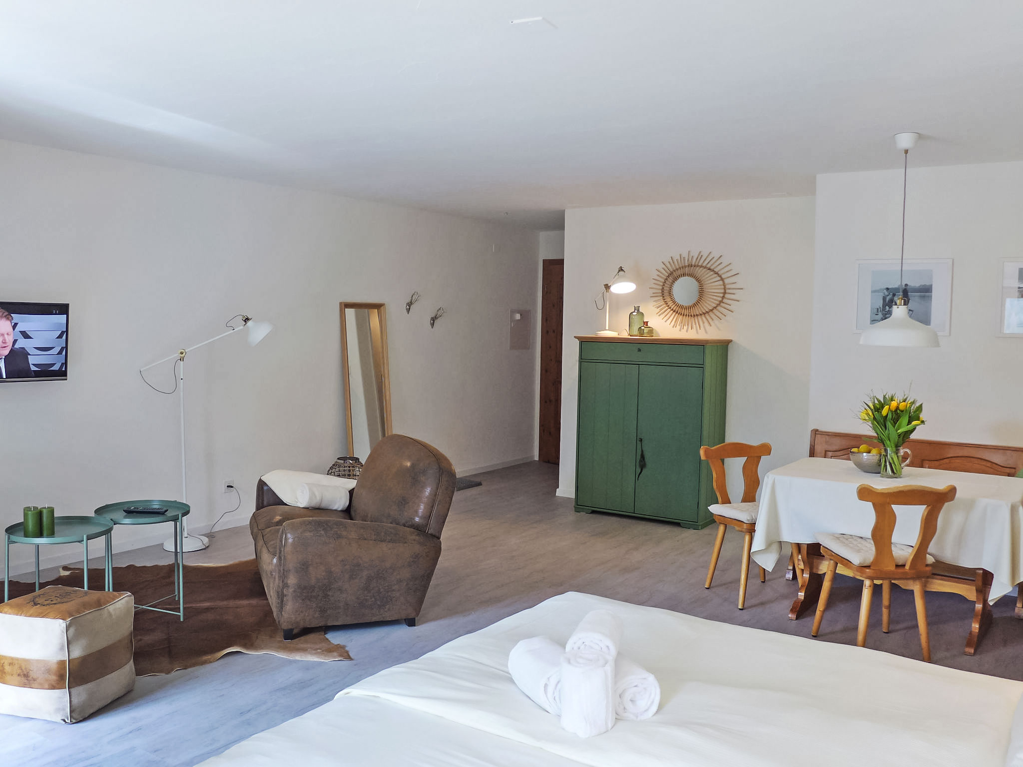 "Chesa Bursella 21", 1-Zimmer-Wohnung 41 m2 im 1. Stock. Geräumig, teilweise renoviert im Jahre 2017, gemütlich eingerichtet: offenes Wohn-/Schlafzimmer mit 1 Doppelbett (2 x 90 cm, Länge 200 cm), Essecke und TV. Ausgang zum Balkon, Richtung Osten. Kleine Küche (Backofen, Geschirrspüler, 4 Glaskeramikplatten, Toaster, Wasserkocher, elektrische Kaffeemaschine). Dusche/WC. Heizung. Balkonmöbel (2). Sehr schöne Sicht auf die Berge und das Tal. Zur Verfügung: Haartrockner. Internet (Wireless LAN, gratis). Garage Nr. 21, Höhe 195 cm, Breite 235 cm. Bitte beachten: Maximal 1 Haustier/Hund erlaubt. Kein Fahrstuhl.