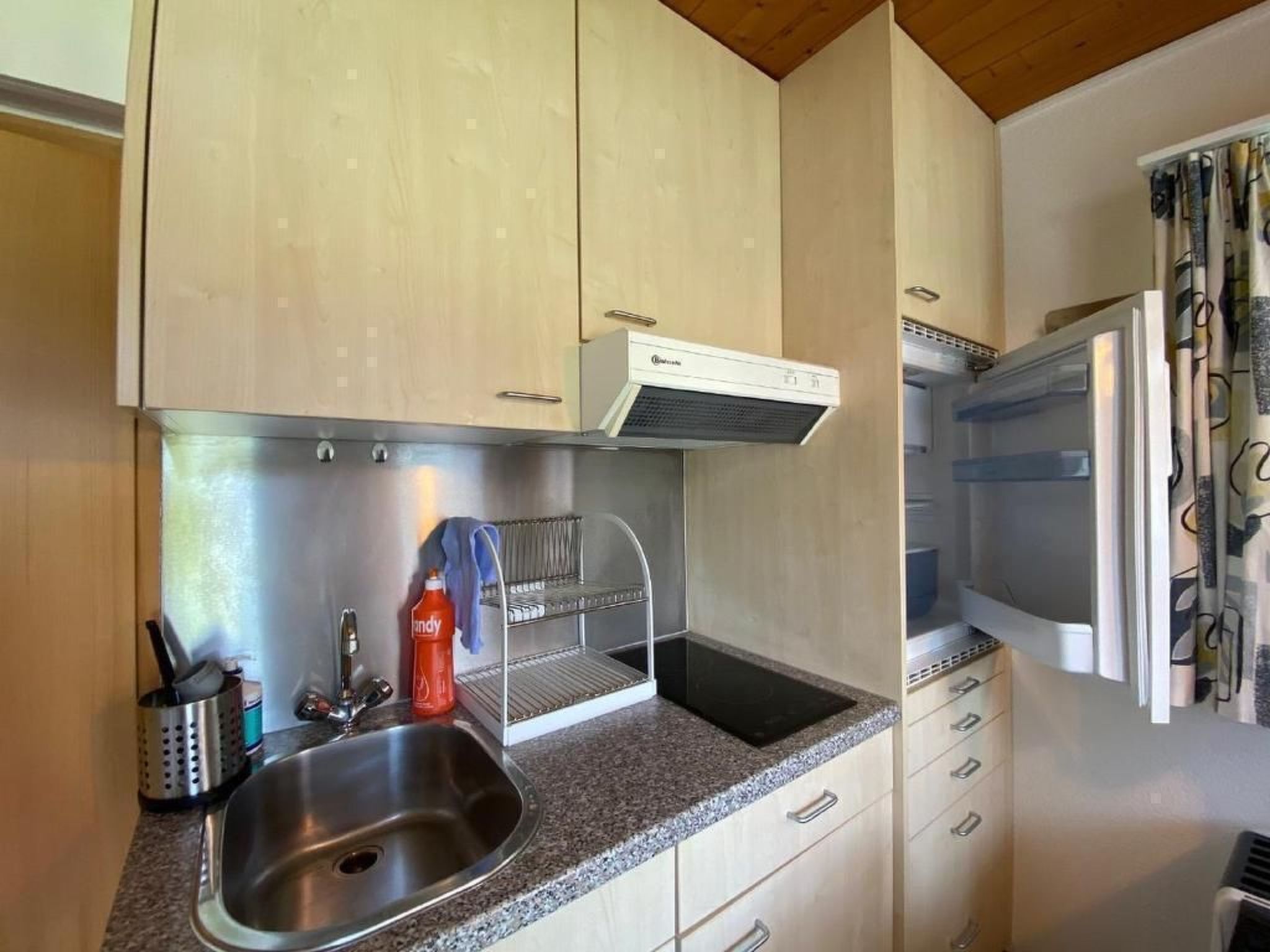 1 Zimmer -Studio mit allem drin was es für die Ferien braucht. Kajüttenbett für 2 Personen. Kochnische, Dusche, WC, etc.