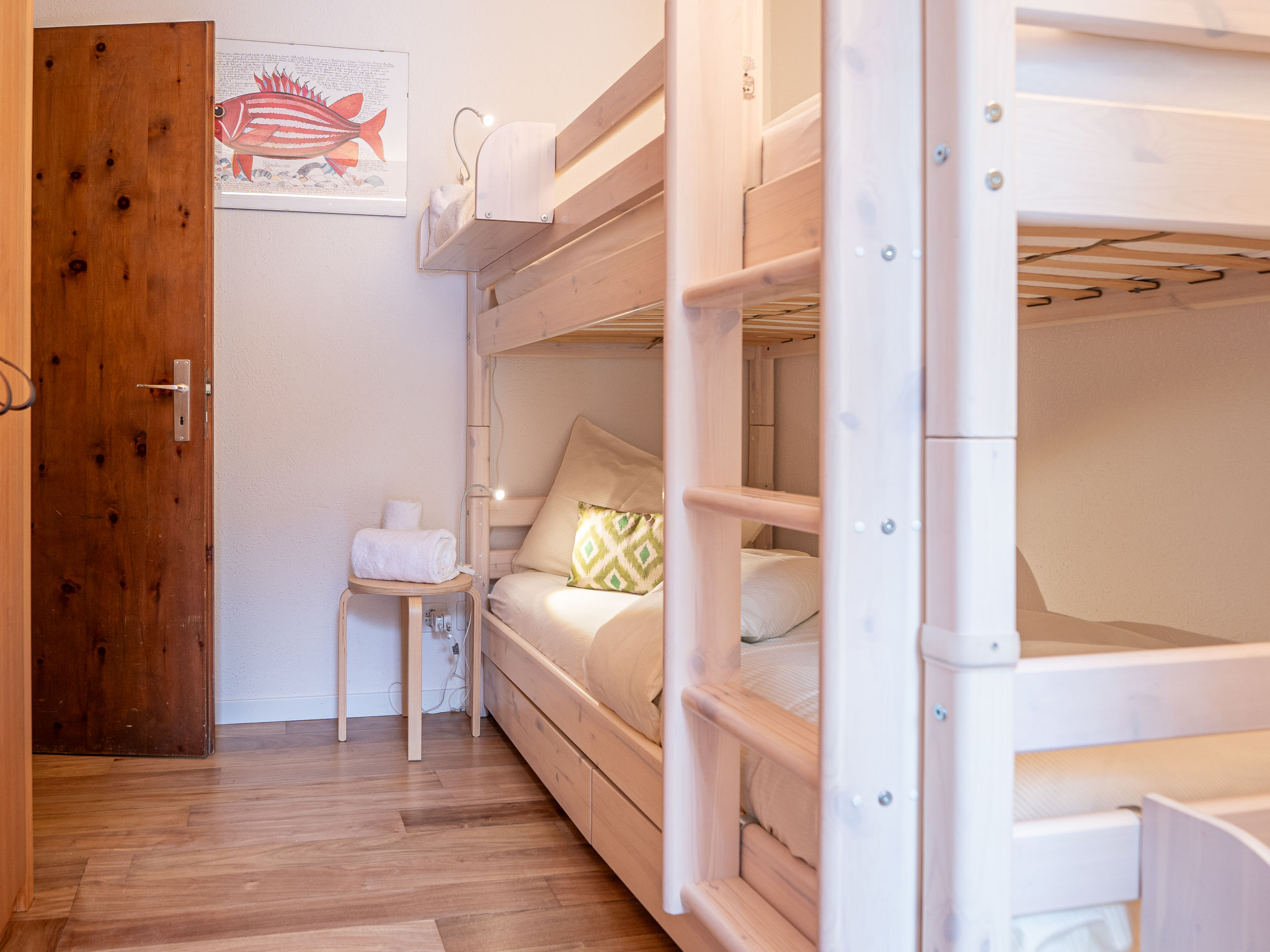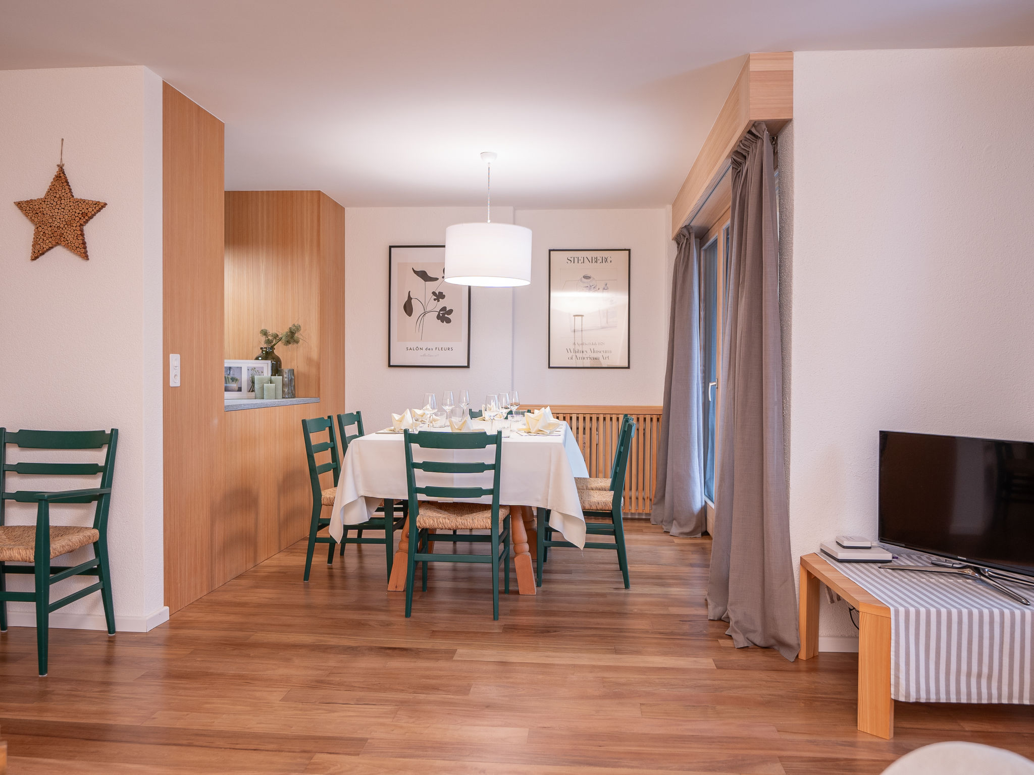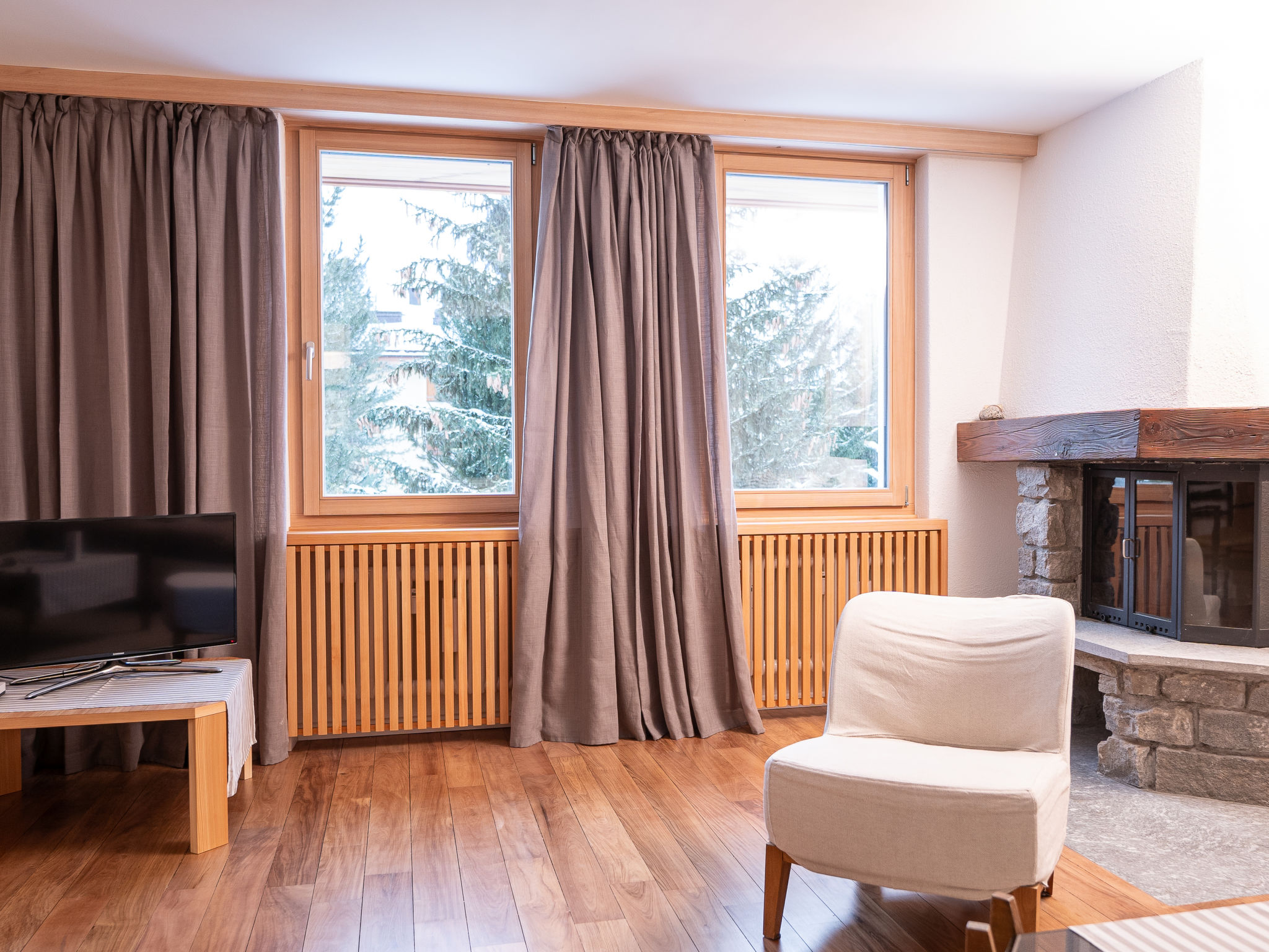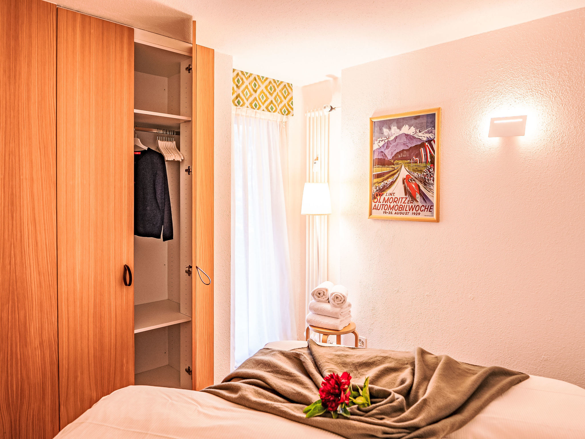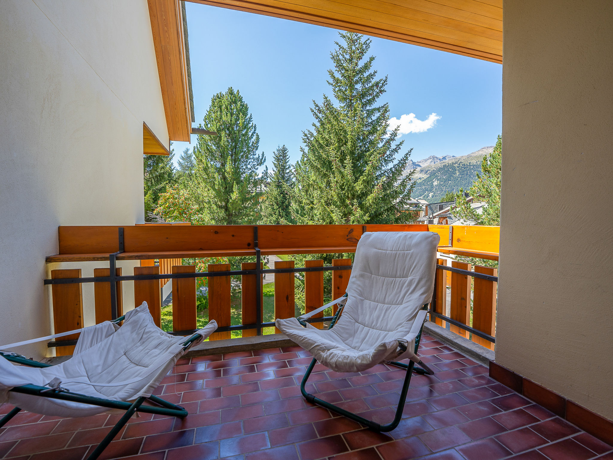 "Chesa Nair 9D", 4-Zimmer-Wohnung 95 m2 im 2. Stock. Teilweise renoviert im Jahre 2023, modern und gemütlich eingerichtet: Wohn-/Esszimmer mit offenem Kamin, Esstisch und TV (Flachbildschirm). Ausgang zum Balkon, Richtung Südwesten. 1 Doppelzimmer mit 1 franz. Bett (2 x 90 cm, Länge 200 cm). Ausgang zum Balkon. 1 kleines Zimmer mit 1 x 2 Etagenbetten (90 cm, Länge 200 cm). Ausgang zum Balkon. 1 Zimmer mit 1 franz. Bett (1 x 160 cm, Länge 200 cm). Ausgang zum Balkon. Offene Küche (Backofen, Geschirrspüler, 4 Induktionskochplatten, Toaster, Wasserkocher, Mikrowelle, elektrische Kaffeemaschine, Kapseln für die Kaffeemaschine (Nespresso) extra). Dusche/Bidet/WC, Bad/Dusche/Bidet/WC. Holzdielenboden. Liegestühle (6). Schöne Sicht auf die Landschaft und die Ortschaft. Zur Verfügung: Bügeleisen, Haartrockner. Internet (Wireless LAN, gratis). Garage Nr. 24, Höhe 200 cm, Breite 225 cm. Bitte beachten: geeignet für Familien. Nichtraucher-Unterkunft. Maximal 1 Haustier/Hund erlaubt. Kein Fahrstuhl.