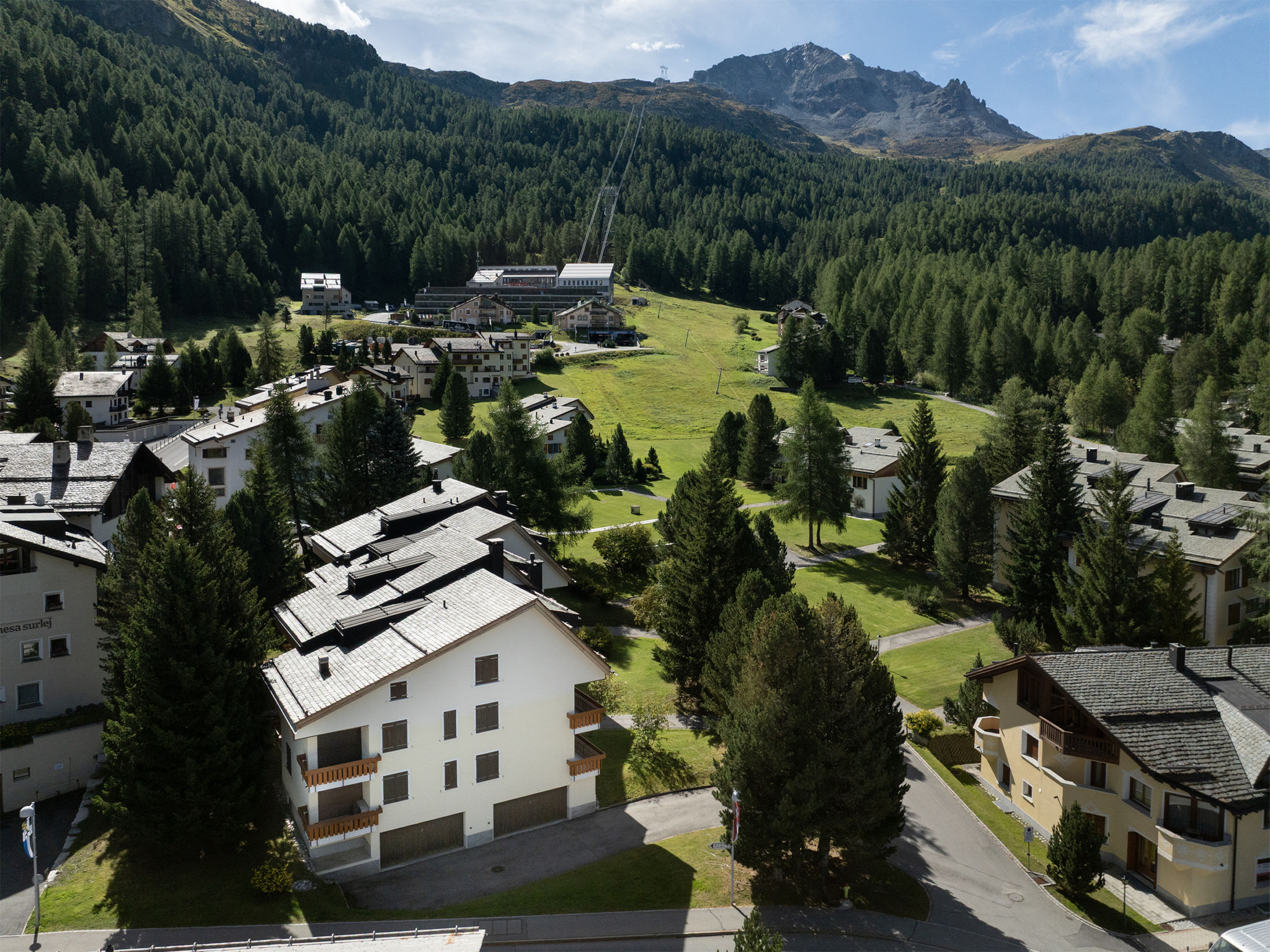 Surlej 1 km von Silvaplana: Mehrfamilienhaus "Chesa Nair", auf 3 Stockwerken. Im Ortszentrum von Surlej, zentrale Lage in einem Wohnquartier, 400 m vom Waldrand, 800 m vom See. Im Hause: Skiraum, Zentralheizung, Waschmaschine, Wäschetrockner (zur Mitbenutzung, extra). Gemeinschaftsgarage. Einkaufsgeschäft 1.3 km, Lebensmittelgeschäft 1.3 km, Restaurant 300 m, Bäckerei 240 m, Café 240 m, Fahrradverleih 70 m, Bushaltestelle "Surlej Parkplatz" 200 m, Hallenbad 6 km, See Silvaplaner See 800 m. Golfplatz (18 Loch) 13 km, Surfschule 1.6 km, Tennis 1.6 km, Tennishalle 6 km, Minigolf 6 km, Reitstall 3.6 km, Sportzentrum 1.6 km, Wanderwege ab Haus, Radweg 400 m, Luftseilbahn 500 m, Skilift, Skiverleih 70 m, Skibushaltestelle, Skischule, Kinderskischule 50 m, Schlittelbahn 12 km, Langlaufloipe 200 m, Eisfeld 1.6 km, Kinderspielplatz 1.3 km. Nahe gelegene Sehenswürdigkeiten: Nietzsche-Haus in Sils-Maria 6 km, Segantini-Museum in St. Morit 6 km. Bekannte Skigebiete sind gut erreichbar: Corvatsch - Furtschellas 500 m, Corviglia 6 km, Diavolezza - Lagalb 25 km. Bekannte Seen in der Umgebung sind gut erreichbar: Silvaplana See 800 m, Silser See 6 km, St. Moritzer See 6 km. Wandergebiete: Corvatsch - Furtschellas 500 m, Via Engiadina 1.6 km, Seengebiet St. Moritz - Maloja. Bitte beachten: kein Fahrstuhl vorhanden. Gratis Skibus. Der gratis Skibus fährt zum Skigebiet Corvatsch. Bitte beachten: Be- und Entladen am Ferienhaus möglich.