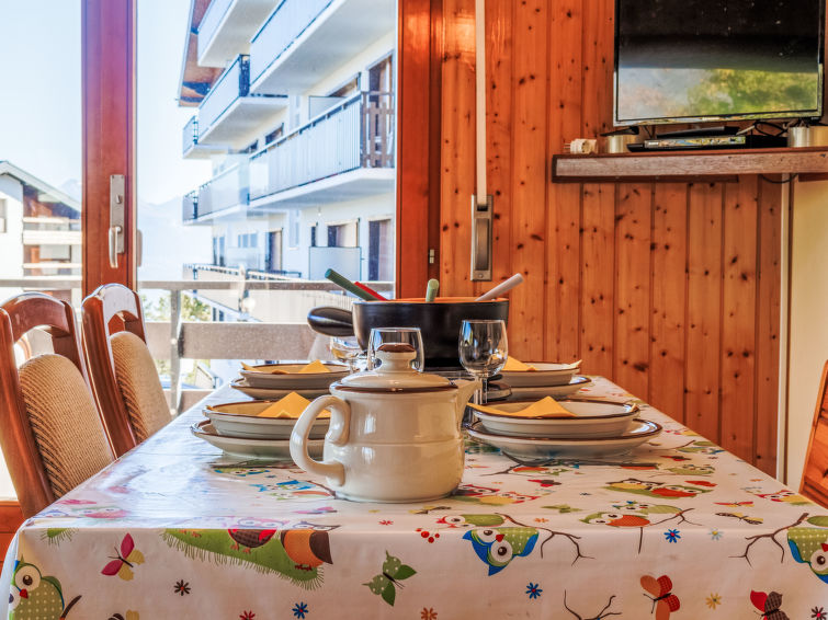 Residenz "L'Aiglon". Im Ort, 300 m vom Zentrum, erhöhte Lage auf einem Hügel. Im Hause: Fahrstuhl, Skiraum, Zentralheizung, Waschmaschine (extra), Wäschetrockner (zur Mitbenutzung, extra), Trockenraum. Im Winter bitte Schneeketten mitbringen. Parkplatz (beschränkte Anzahl). Einkaufsgeschäft, Restaurant 100 m, Zentrum zu Fuss in 3 Minuten erreichbar, Bushaltestelle "Haute-Nendaz, station/poste" 650 m, Bahnstation "Sion" 16.2 km, Freibad 800 m. Golfplatz (18 Loch) 18 km, Tennis 300 m, Skisportanlagen 700 m, Skibushaltestelle 100 m, Schlittelbahn 500 m, Eisfeld 300 m, Kinderspielplatz 500 m. Bekannte Skigebiete sind gut erreichbar: Nendaz 4 vallées Tracouet 700 m, Funiculaire Tracouet 400 m. Wandergebiete: Bisse du Milieu 700 m. Bitte beachten: Gratis Skibus.