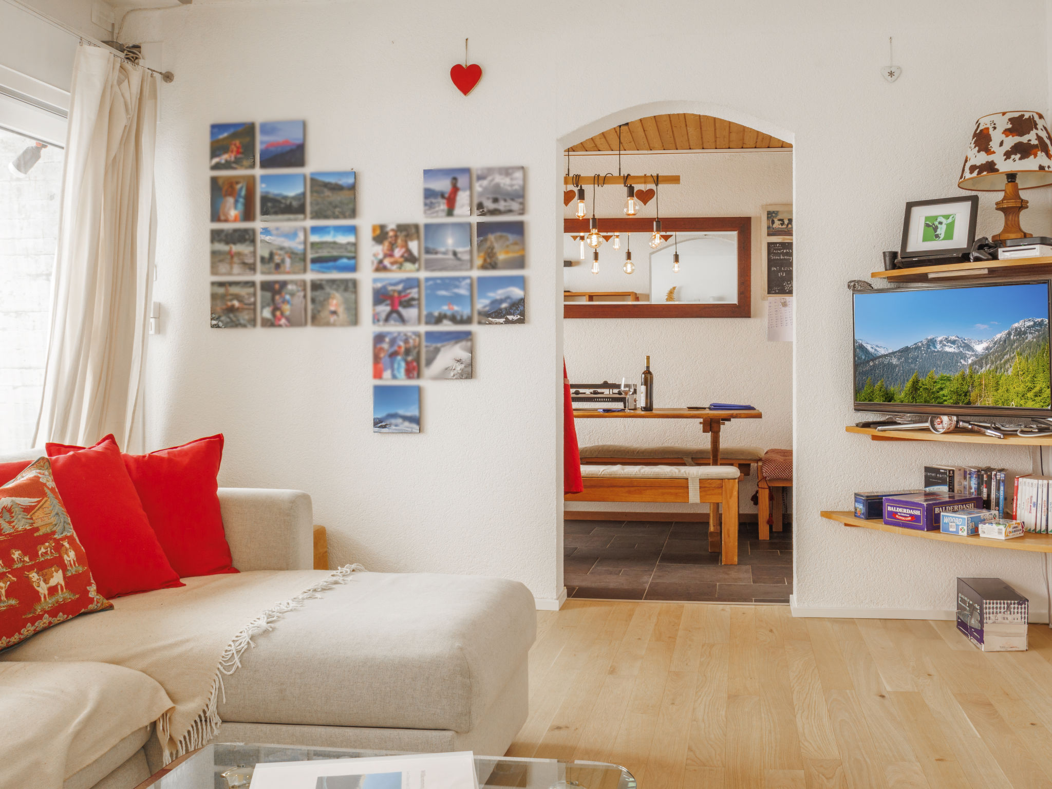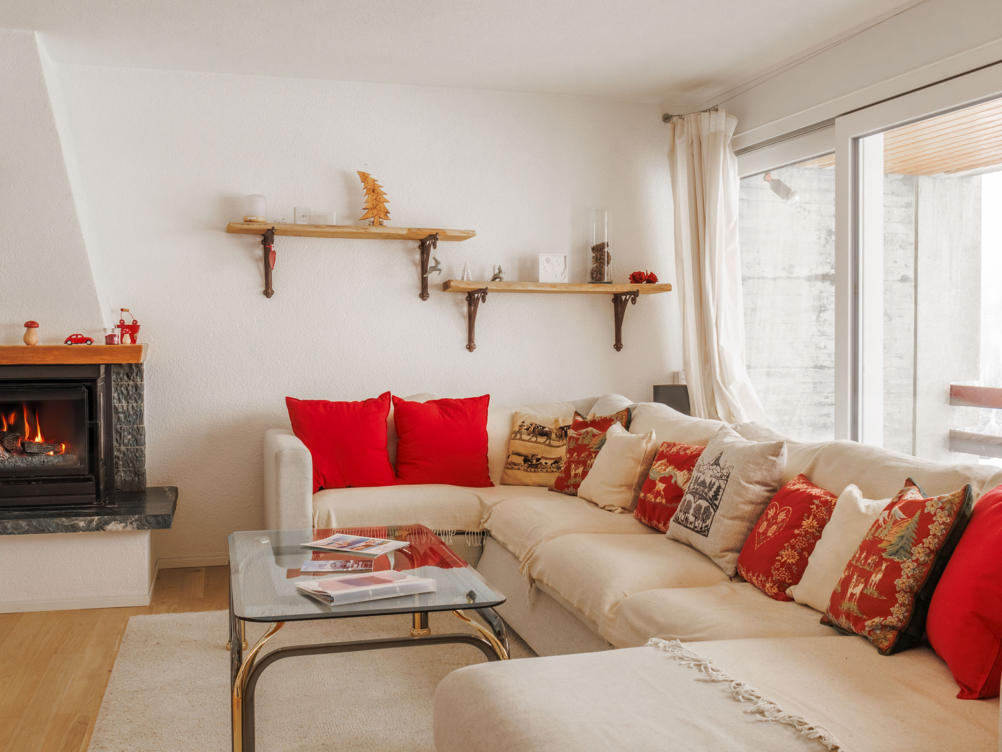 "Les Cimes", 5-Zimmer-Wohnung 130 m2. Objekt geeignet für 6 Erwachsene + 4 Kinder. Teilweise renoviert im Jahre 2024, komfortabel und gemütlich eingerichtet: Wohnzimmer mit offenem Kamin und TV (Flachbildschirm), DVD. Ausgang zum Balkon. 1 Zimmer mit 1 Doppelbett (180 cm, Länge 190 cm). Küche (4 Kochplatten, Backofen, Geschirrspüler, Mikrowelle, elektrische Kaffeemaschine, Kapseln für die Kaffeemaschine (Nespresso) extra, Racletteofen, Fondue Set (Chinoise, Käse)) mit Bar, Esstisch. Ausgang zum Balkon. Bad, sep. WC. Unteres Geschoss: 1 Zimmer mit 1 Doppelbett (180 cm, Länge 200 cm). 1 Kinderzimmer mit 2 x 2 Etagenbetten (90 cm, Länge 190 cm). 1 Zimmer mit 2 franz. Betten (130 cm, Länge 190 cm). Bad, sep. WC. 2 Balkone. Balkonmöbel. Sehr schöne Sicht auf die Berge, die Skipiste, die Landschaft und die Ortschaft. Zur Verfügung: Kinderhochstuhl, Babybett bis 3 Jahre, Haartrockner. Internet (Wireless LAN, gratis). Bitte beachten: geeignet für Familien. Nichtraucher-Unterkunft.