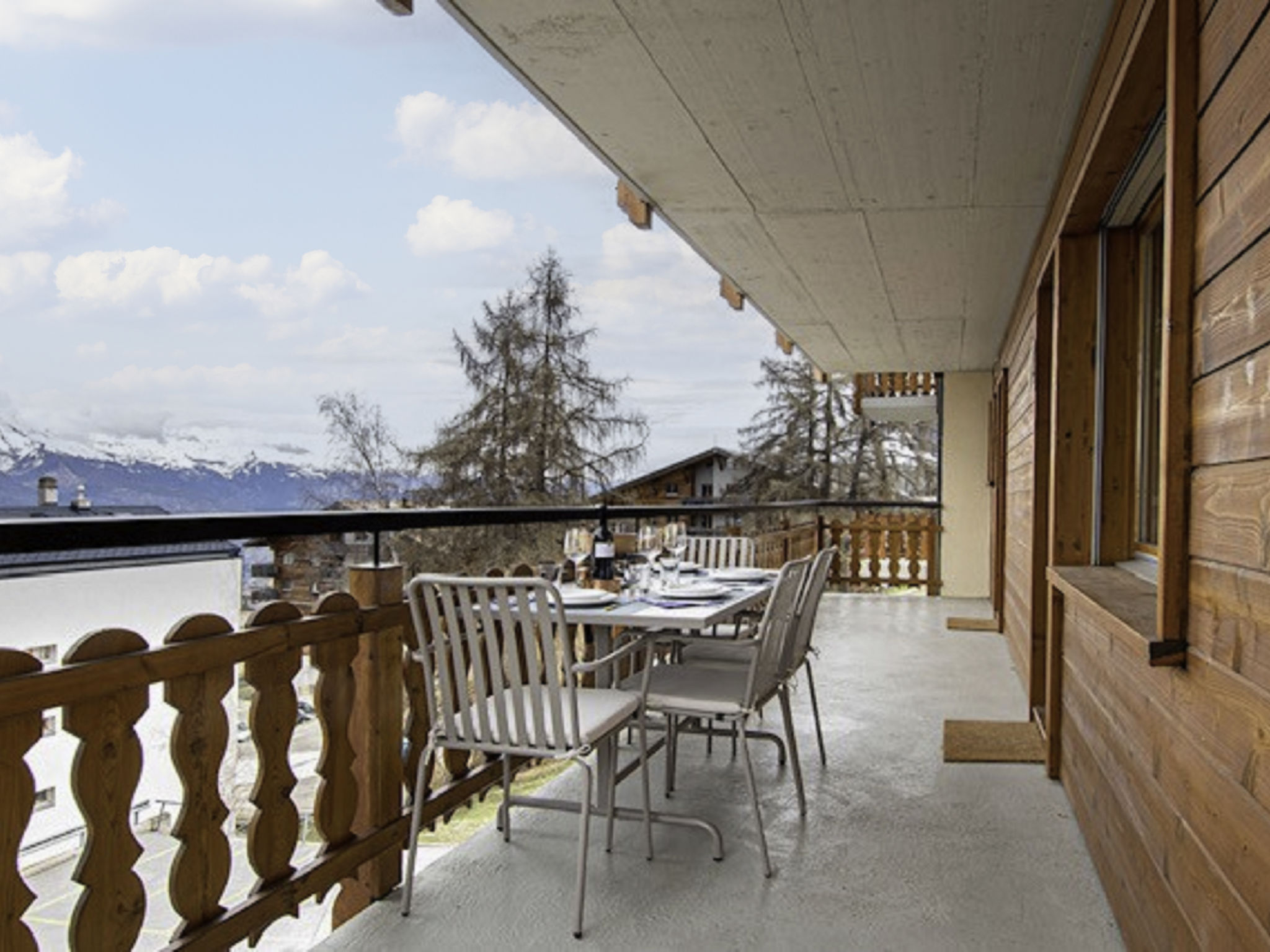 "Ambassador I Apt 7", 3-Zimmer-Wohnung 75 m2 im 2. Stock. Wohn-/Esszimmer mit 1 Diwanbett (160 cm, Länge 190 cm), Kabel-TV und DVD. Ausgang zum Balkon. 1 Zimmer mit 1 franz. Bett (160 cm, Länge 200 cm). Ausgang zum Balkon. 1 Zimmer mit 2 Betten (90 cm, Länge 200 cm). Ausgang zum Balkon. Küche (Backofen, Geschirrspüler, Mikrowelle, elektrische Kaffeemaschine, Racletteofen, Fondue Set (Käse)). Bad/WC, Dusche/WC. Grosser Balkon 45 m2, Nordlage und Westlage, kleiner Balkon, Nordlage und Ostlage. Terrassenmöbel. Schöne Sicht auf die Berge. Zur Verfügung: Haartrockner. Internet (WLAN, gratis). Bitte beachten: Nichtraucher-Unterkunft. CH1961.831.3