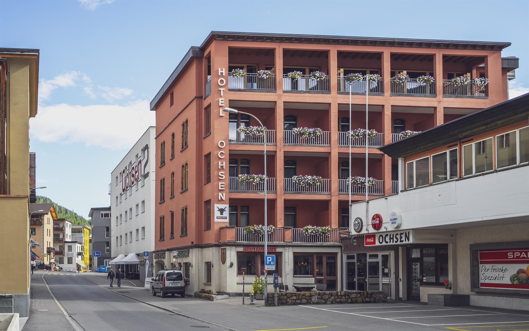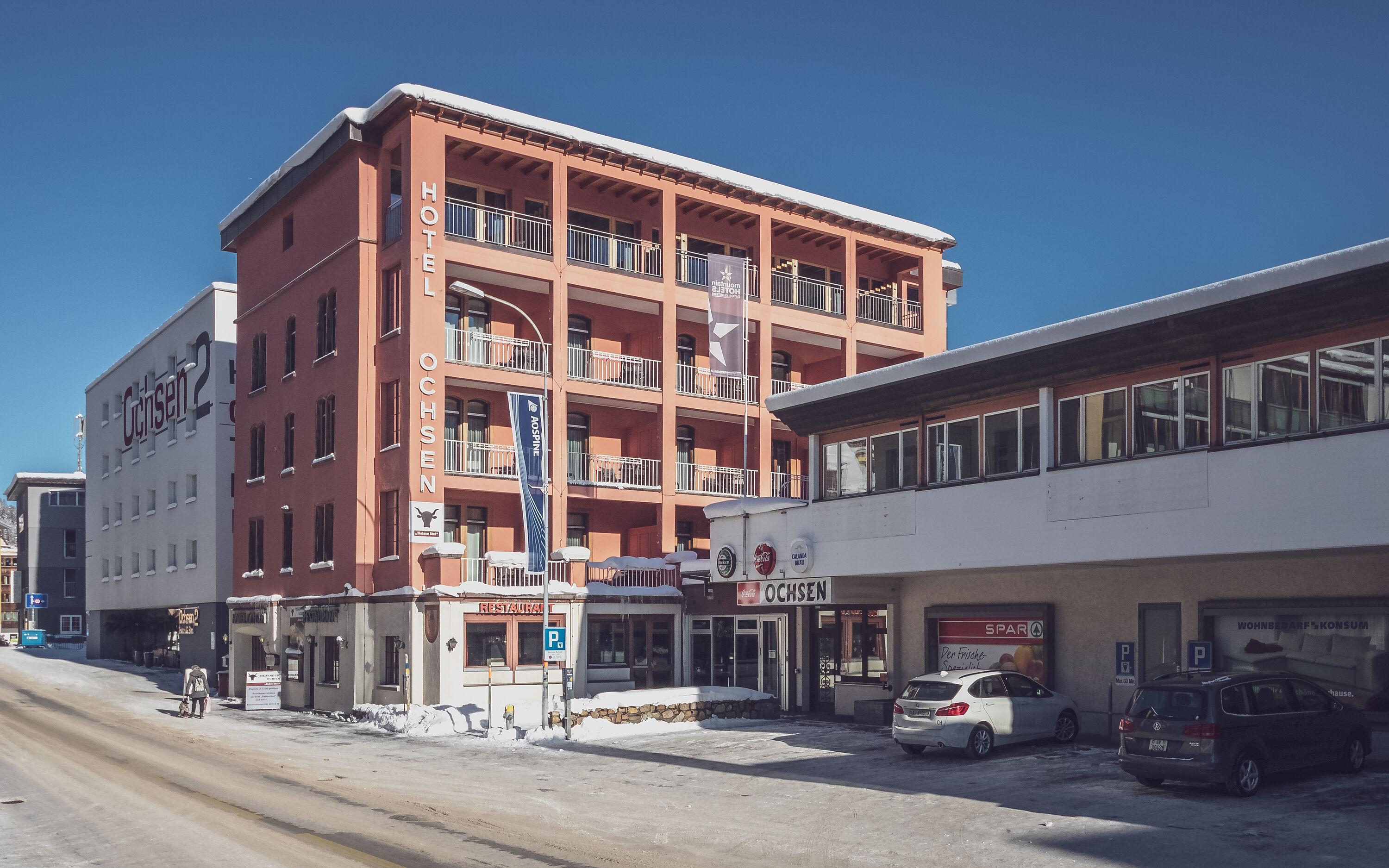 Das Hotel Ochsen überzeugt die Gäste durch seine gute Lage in Davos Platz. Die modernen und gut ausgestatteten Zimmer im 3-Sterne Komfort werden den Ansprüchen verschiedener Gäste gerecht. Vom Hotel aus kann die Ortschaft Davos zu Fuss gemütlich erkundet werden. Gute Restaurants, angesagte Bars und die Bergbahn Jakobshorn für Ausflüge auf den Berg liegen im nahen Umfeld. Das Hotel Ochsen ist somit ideal für Gruppenreisen, Firmenausflüge und Sportferien. Besonders beliebt ist das Hotel bei Biker, sie profitieren von einer idealen Ausstattung für Ihre Bikeferien.