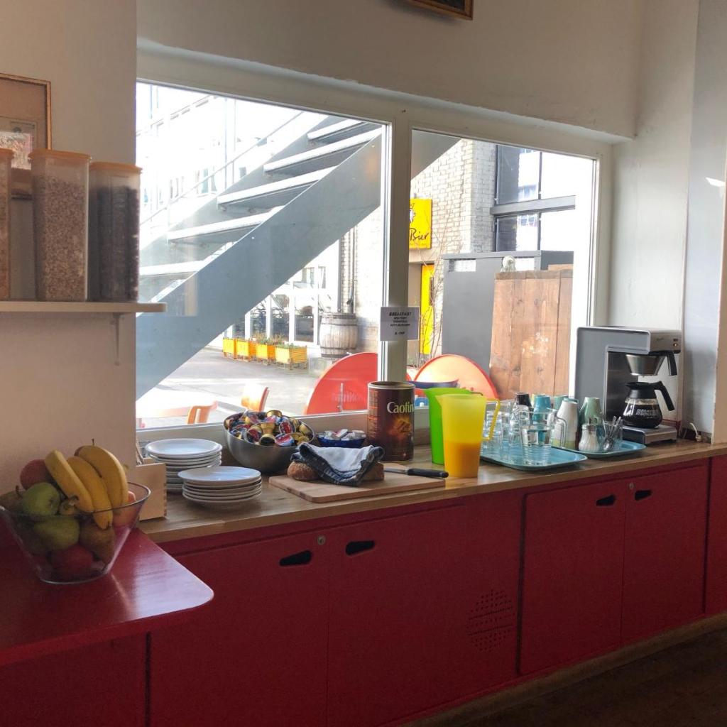 Es gibt auch eine Küche, in der Sie nach Lust und Laune selbst den Kochlöffel schwingen können. Getränke und Snacks erhalten Sie auch an den bereitstehenden Automaten.