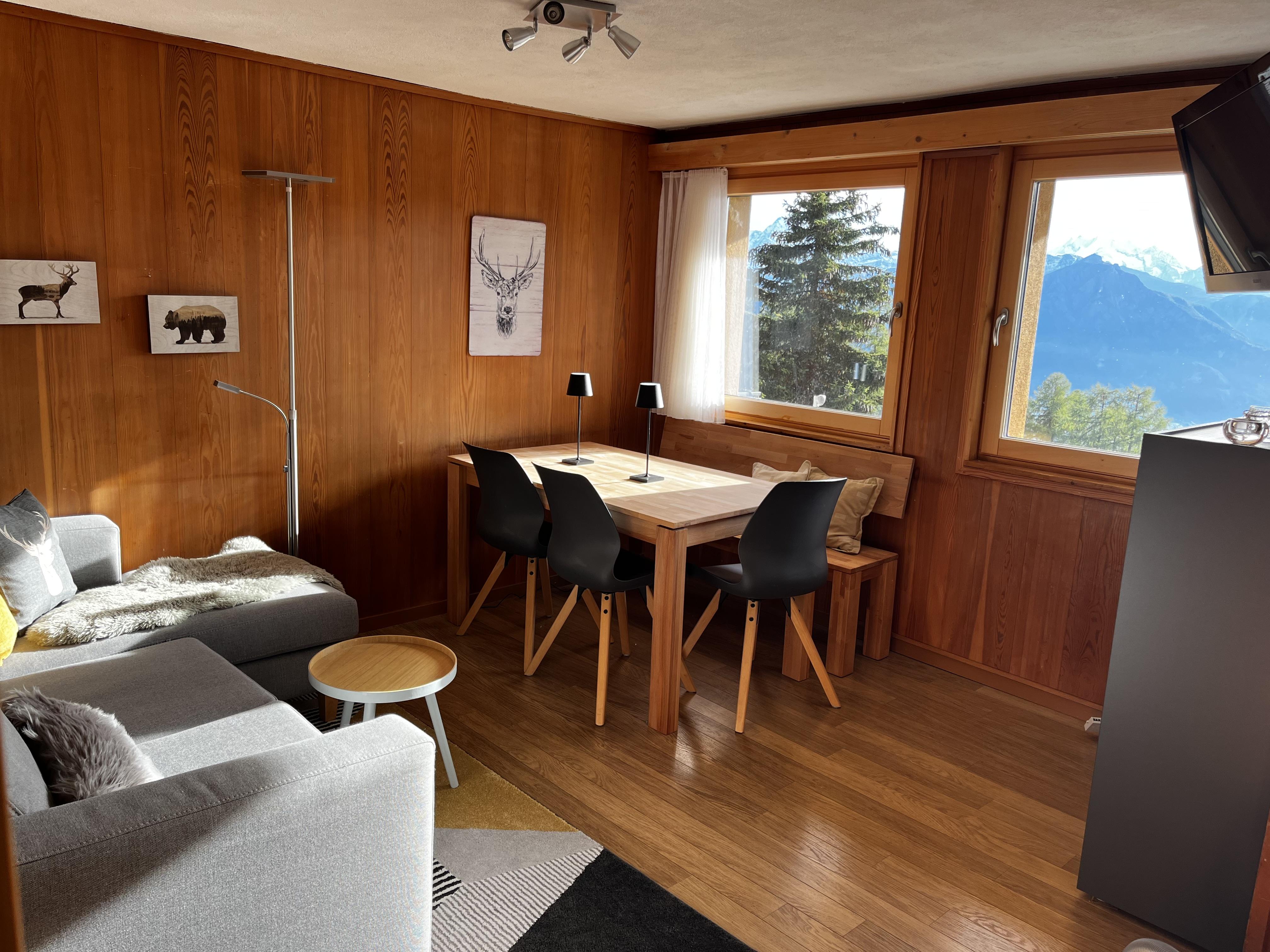 Diese gemütliche und helle 3-Zimmer-Wohnung befindet sich in unmittelbarer Nähe zum Schönbiel-Sessellift und bietet damit einen idealen Ausgangspunkt zum Skifahren und Wandern. Die traumhafte Lage garantiert eine unverbaute und einmalige Aussicht auf die umliegenden Gipfel. Als eines der letzten Häuser im Dorf geniesst du hier auf der Terrasse besonders lange die Abendsonne – ein echtes Highlight nach einem aktiven Tag in der Natur.
