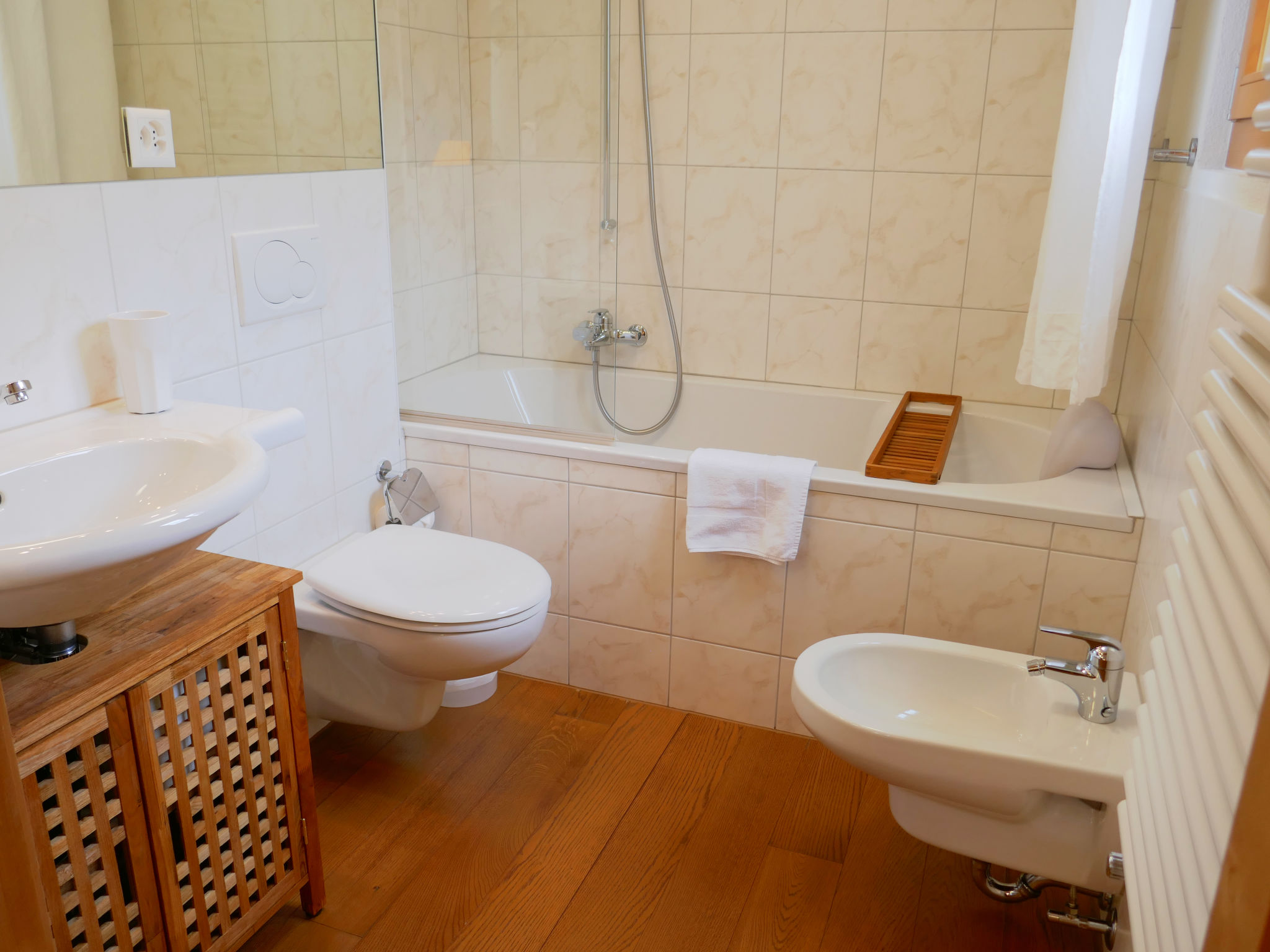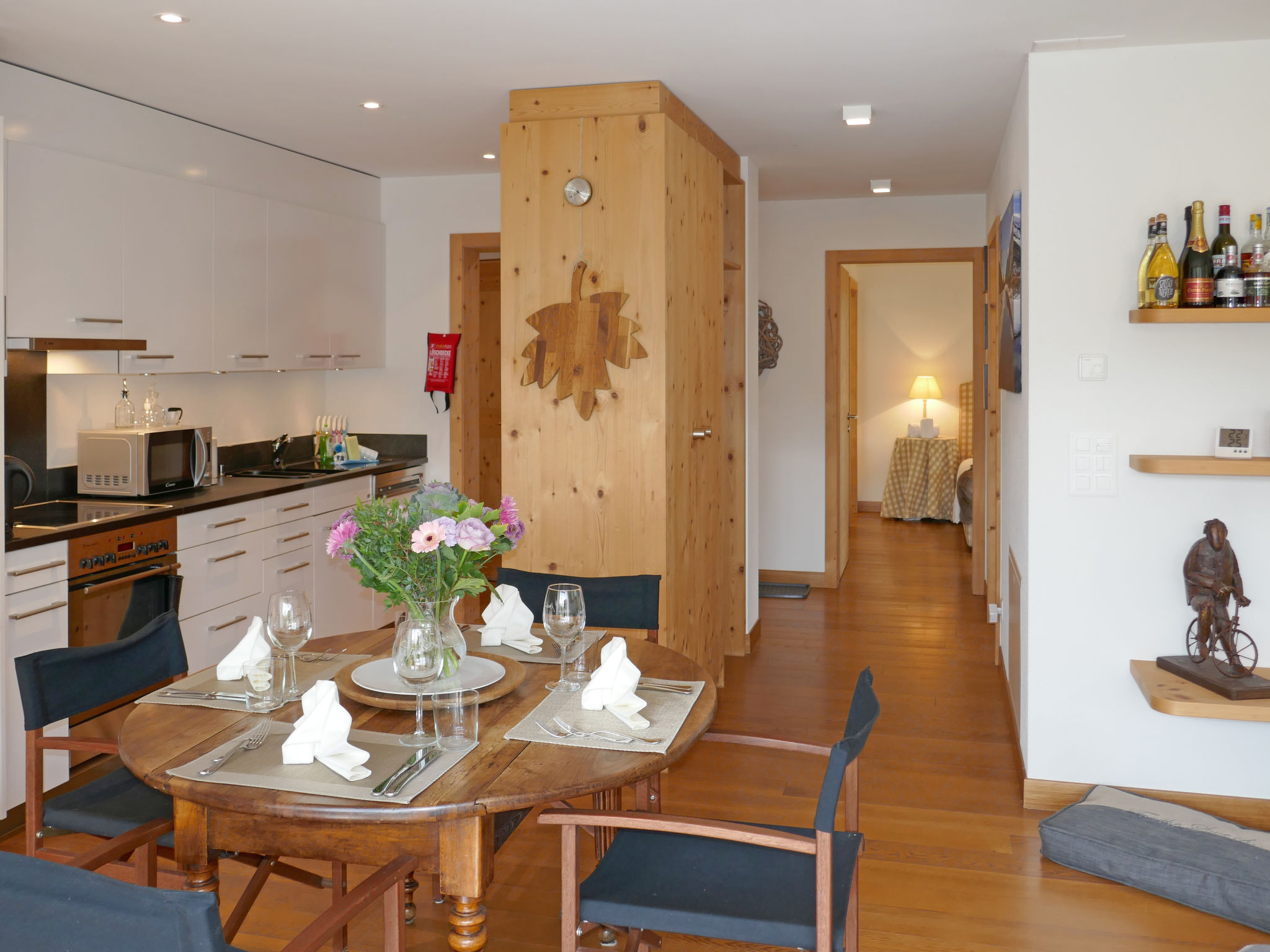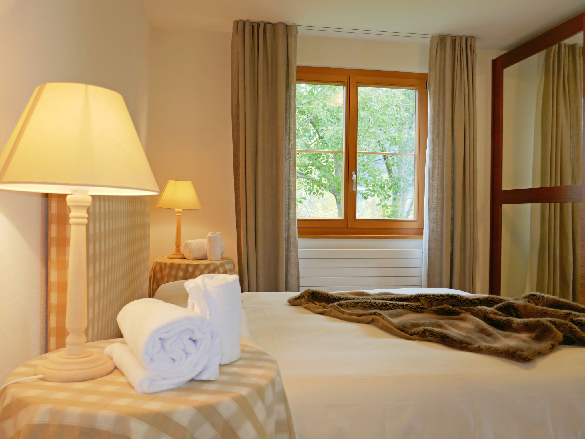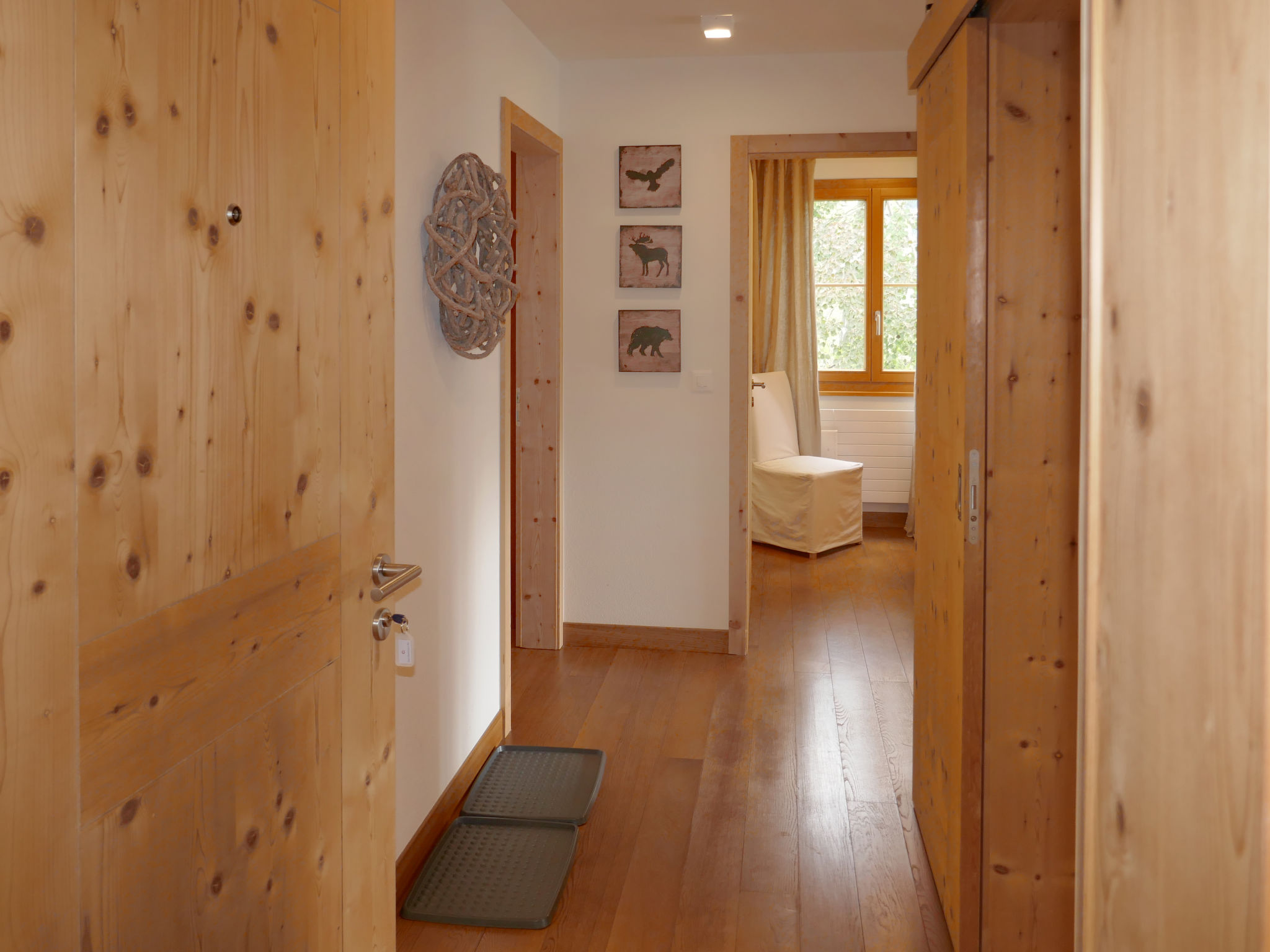 "Chesa San Bastiaun B4", 3-Zimmer-Wohnung 60 m2 im 1. Stock, Südostlage. Objekt geeignet für 2 Erwachsene + 2 Kinder. Hell, geschmackvoll und gemütlich eingerichtet: Wohn-/Esszimmer mit Esstisch und TV (Flachbildschirm), DVD. Ausgang zum Balkon. 1 Doppelzimmer 10 m2 mit 1 franz. Bett (1 x 160 cm, Länge 200 cm). 1 Kinderzimmer 6 m2 mit 1 x 2 Etagenbetten (2 x 90 cm, Länge 190 cm). Offene Küche (Backofen, Geschirrspüler, 4 Glaskeramikplatten, Toaster, Wasserkocher, Mikrowelle, elektrische Kaffeemaschine, Kapseln für die Kaffeemaschine (Nespresso) extra, Racletteofen, Fondue Set (Chinoise, Käse)). Bad/Bidet/WC, Dusche/WC. Heizung. Holzdielenboden. Balkonmöbel. Sehr schöne Sicht auf die Berge und den Fluss. Zur Verfügung: Bügeleisen, Haartrockner. Internet (Wireless LAN, gratis). Garage Nr. B4 auf dem Grundstück (1 Auto), Höhe 230 cm, Breite 250 cm. Bitte beachten: geeignet für Familien. Nichtraucher-Unterkunft, Nichtraucher-Haus.