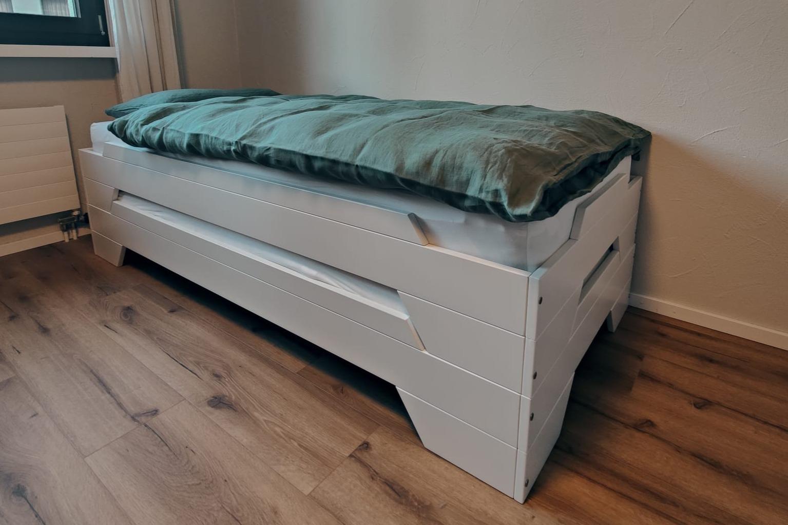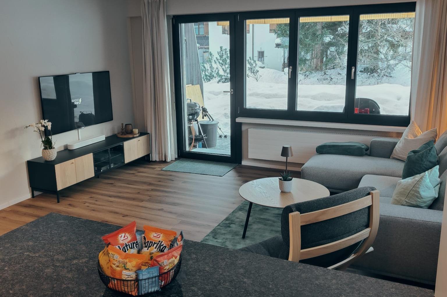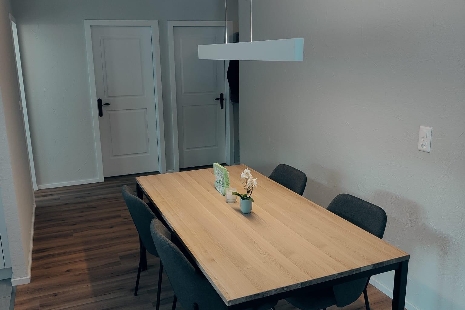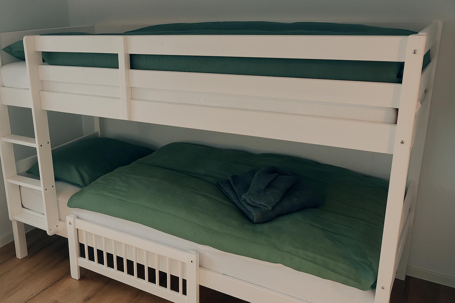 1 Schlafzimmer mit Doppelbett (Matratzen 2*90*200), 1 Schlafzimmer mit Kajütenbett (2*90*200) und zwei stapelbare Einzelbetten (2*90*200); WLAN, TV; Bad mit Regendusche; stilvoller Wohn-/Essbereich mit voll ausgestatteter Küch mit Geschirrspülmaschine , 4-Plattenglaskeramikherd, Backofen, Kühlschrank mit Gefrierfach, Wasserkocher, Toaster, Kaffeemaschine, Fondue-Set, Raclette-Set; Terrasse mit Gasgrill; ruhig, gemütlich; Bettwäsche, Küchentücher, Frotteewäsche; Haustiere nicht erlaubt; Nichtraucherwohnung; Parkplatz vorhanden.