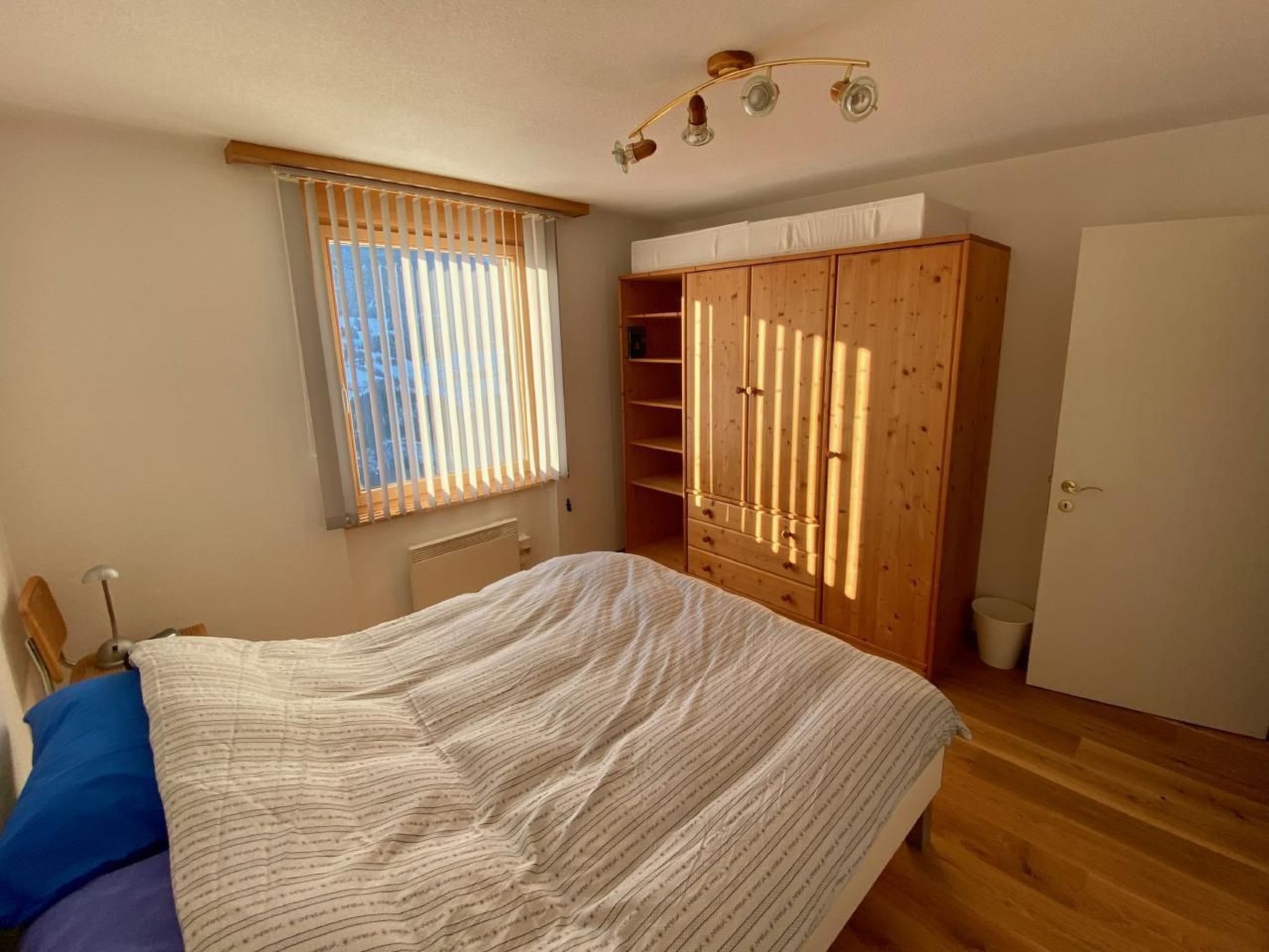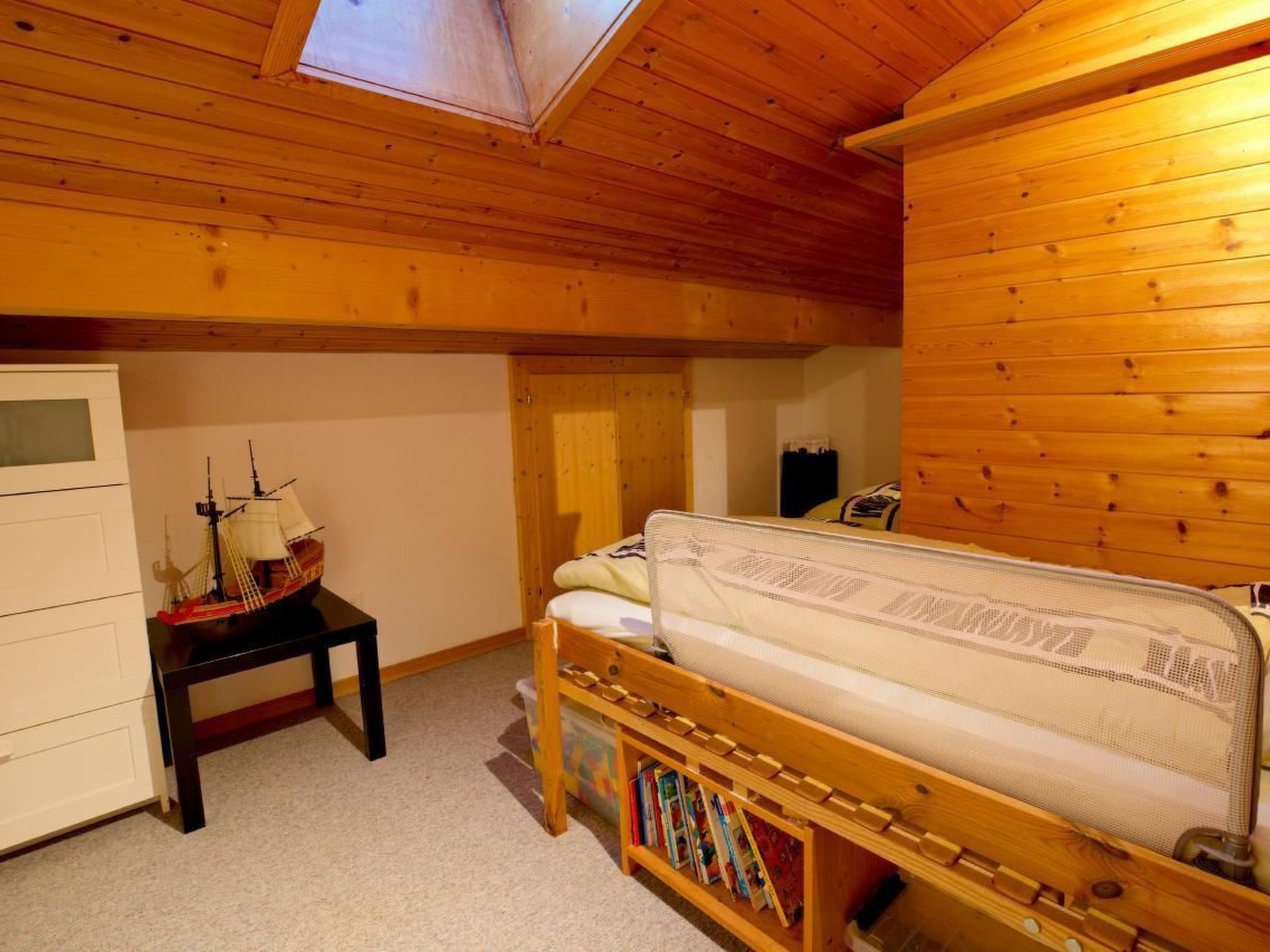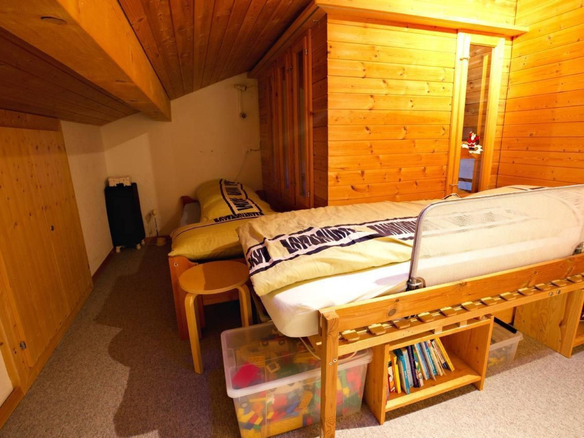 Die Wohnung ist über zwei Stockwerke verteilt. Im unteren Stock befindet sich der Eingang mit Garderobe, einer Nasszelle und zwei WCs. Ebenfalls im unteren Stock befindet sich ein geräumiges Zimmer mit komfortablen Doppelbett (160x200cm) und grossem Wandschrank.