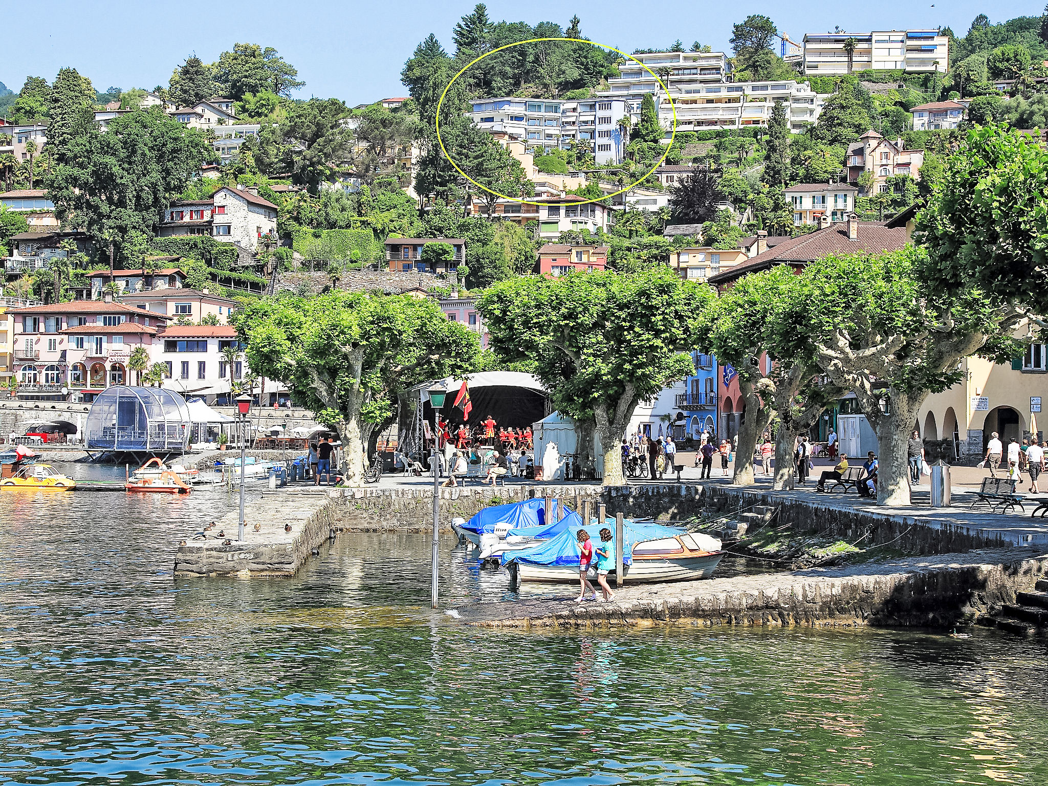 Ascona: Modernes Haus "Palazzo Miralago", auf 4 Stockwerken, Baujahr 1960, renoviert. 22 Wohnungen im Ferienhaus. Oberhalb von Ascona, 400 m vom Zentrum von Ascona, im Bezirk Lago Maggiore, ruhige, sonnige Lage am Hang, 400 m vom See. Im Hause: Empfang, Wireless LAN, Fahrstuhl, Einstellraum für Fahrräder, Zentralheizung, Waschmaschine (extra), Wäschetrockner (zur Mitbenutzung, extra). Brötchenservice möglich. Parkplatz (beschränkte Anzahl, extra) auf dem Grundstück, Gemeinschaftsgarage (extra). Parkplatz/Garage nur für kleine - mittlere Fahrzeuge geeignet. Maße: Höhe 205 cm Breite 220 cm. Einkaufsgeschäft 400 m, Lebensmittelgeschäft, Supermarkt 600 m, Einkaufszentrum 1.4 km, Bäckerei, Fußgängerzone 400 m, Zentrum zu Fuss in 10 Minuten erreichbar, Bushaltestelle "Ascona Centro (Bus Nr. 1)" 400 m, Bahnstation "SBB-CFF Locarno-Muralto" 4.7 km, Sandstrand "Bagno Pubblico Ascona" 1.3 km, Badesee "Lago Maggiore" 1.3 km, See Lago Maggiore 500 m. Golfplatz (18 Loch) 1 km, Tennis 1 km. Nahe gelegene Sehenswürdigkeiten: Madonana del Sasso, Orselina, Locarno-Ascona, Ronco sopra Ascona, Falconeria, Kamelienpark, Piazza Grande, Castelli di Bellinzona, Monte Verità, Ascona, Brissago Inseln. Bekannte Seen in der Umgebung sind gut erreichbar: Lago Maggiore, Lago di Lugano, Lago di Como, Lago di Orta. Wandergebiete: Monte Veritè, Ronco s. Ascona, Valle Maggia, VMonte Tamaro - Monte Lema, Monte Tamaro - Monte Lema. Bitte beachten: Babyausstattung auf Anfrage (extra). Be- und Entladen am Ferienhaus möglich. Weitere Unterkünfte sind buchbar. Ferienwohnung Ref. CH6612.250.1-24 befindet sich auf dem gleichen Grundstück. ACHTUNG - beschränkte Anzahl Garagenplätze und beschränkte Anzahl Aussenparkplätze direkt beim Haus - UNBEDINGT Vorreservieren.