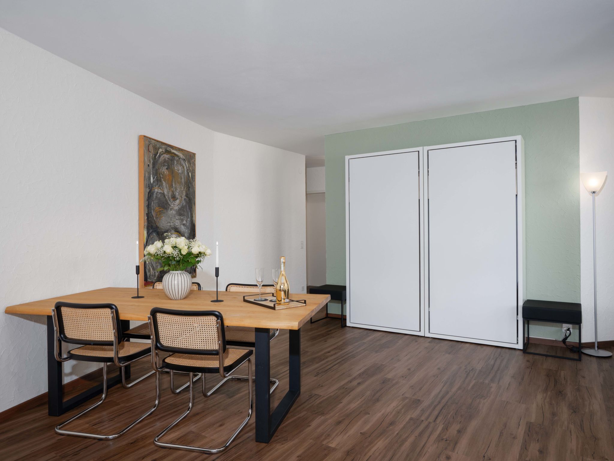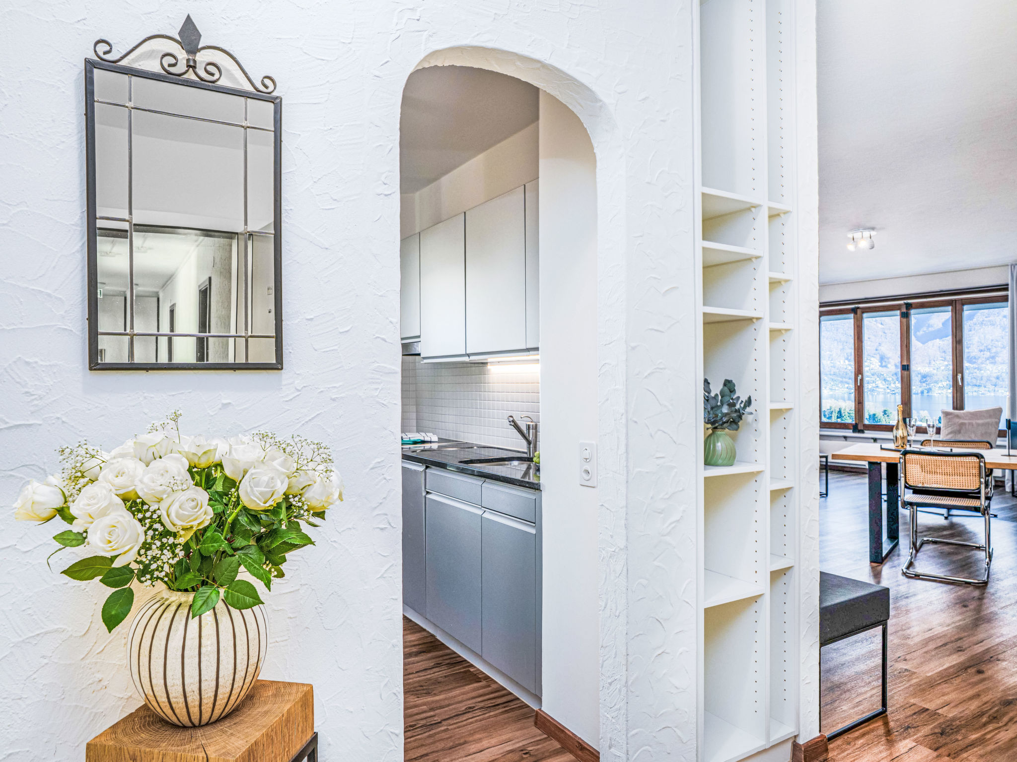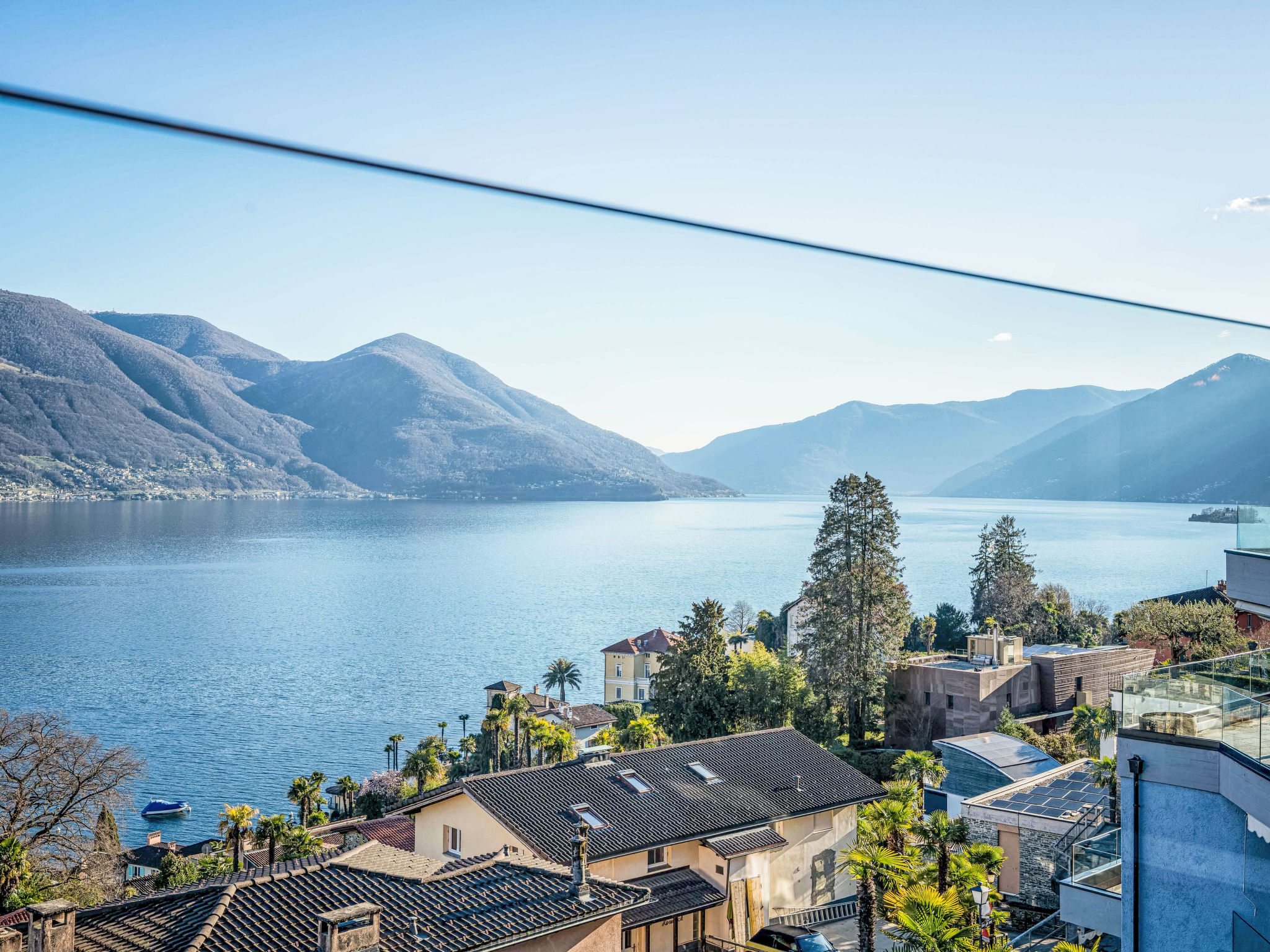 "Suite Classic", 2-Zimmer-Wohnung 90 m2 im 4. Stock, Südostlage. Wohn-/Esszimmer mit 2 Wandschrankbetten (90 cm, Länge 200 cm), Sat-TV und Radio. 1 Zimmer mit 1 Doppelbett (1 x 200 cm, Länge 200 cm). Küche (Backofen, Geschirrspüler, elektrische Kaffeemaschine, Kapseln für die Kaffeemaschine (Nespresso) extra). Bad/WC. Ölheizung. Grosser Balkon, Ostlage, kleiner Balkon, Ostlage. Schöne Panoramasicht auf den See, die Berge und die Ortschaft. Zur Verfügung: Internet (WLAN, gratis). Bitte beachten: Nichtraucher-Unterkunft, Nichtraucher-Haus. Maximal 1 Haustier/Hund erlaubt. NL-00004962