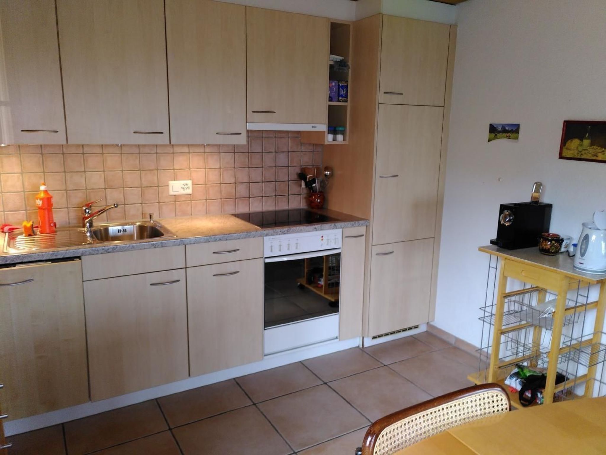 - Küche mit Glaskeramik (4 Kochfelder), Dampfabzug, Geschirrspüler, Kaffeemaschine, Raclette-Ofen, Fondue-Rechaud etc.