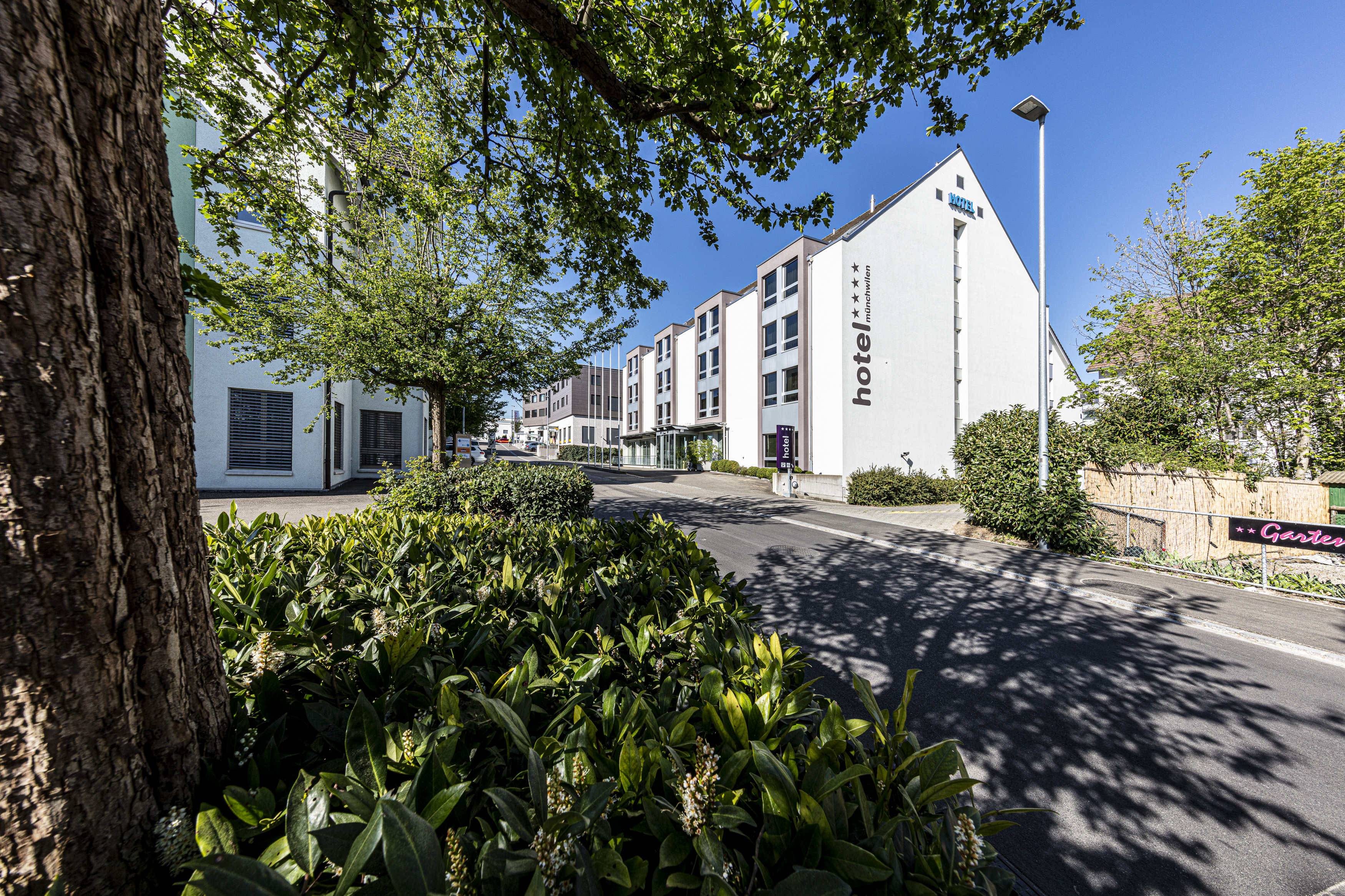 Das Hotel Münchwilen ist ein modernes Viersterne-Garnihotel. Mit seinen 53 Zimmern und 2 Junior-Suiten ist es speziell auf die Bedürfnisse von Geschäftsreisenden zugeschnitten. Fürs Tagen und Besprechen stehen ein sehr ruhiger Seminarraum und zwei Sitzungszimmern zur Verfügung. Aber auch Freizeittouristen fühlen sich hier wohl. Das Hotel ist ruhig und doch zentral gelegen. Es erfreut seine Gäste mit einem reichhaltigen regionalen Frühstücksbuffet in einem modern und gemütlich eingerichteten, lichtdurchfluteten Frühstücksaal, sowie einer Hotel-Bar für einen Schlummertrunk nach einem ereignisreichen Tag. Dank der guten Verkehrsanbindung über die Autobahn A1 sind Gäste in rund einer halben Stunde in Zürich, St. Gallen oder Kreuzlingen. Der Bahnhof ist nur zwei Minuten Fussmarsch vom Hotel entfernt.