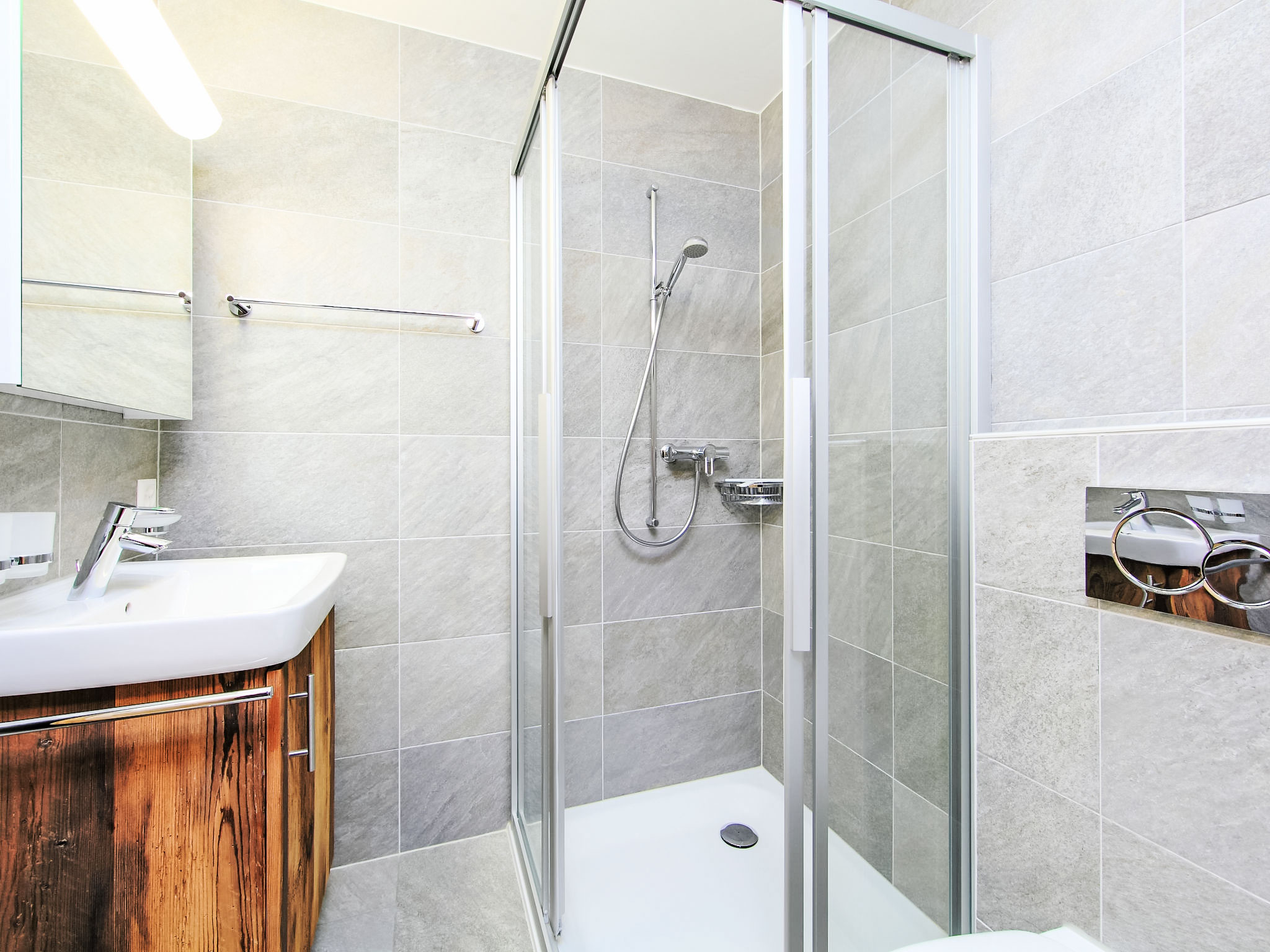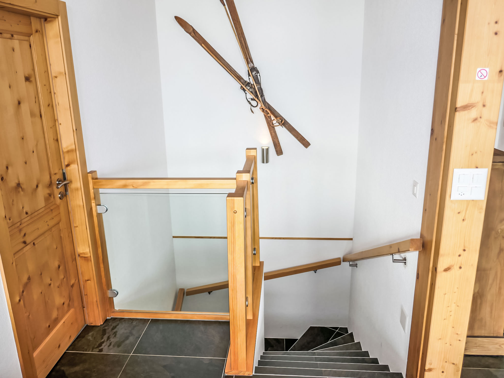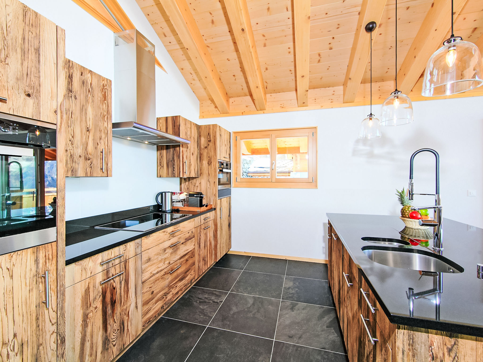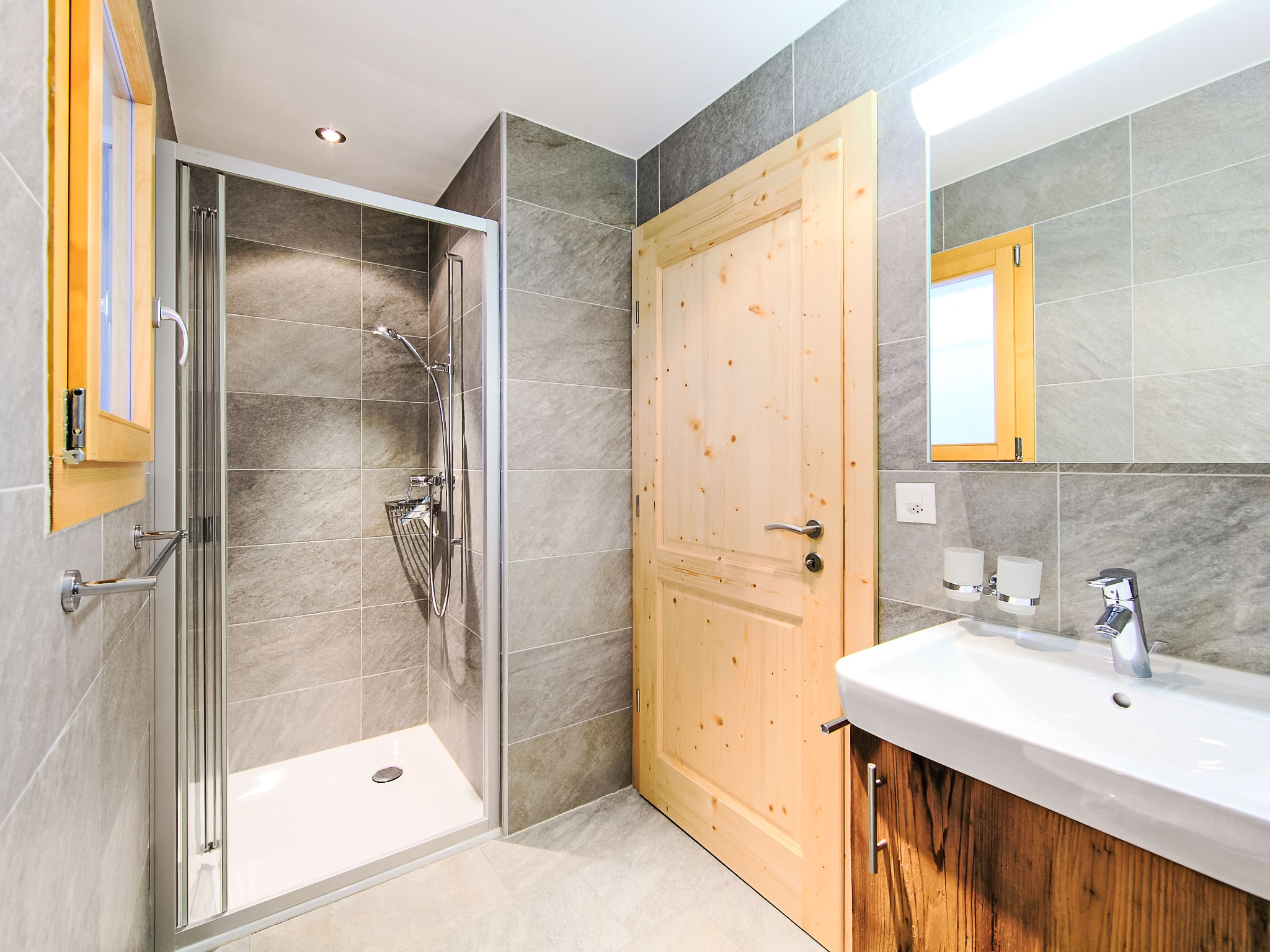 "Chalet Flocon de Neige", 5-Zimmer-Chalet 184 m2 auf 2 Stockwerken. Komfortabel eingerichtet: grosses Wohn-/Esszimmer mit Panoramafenster mit Schwedenofen, Essecke, Kabel-TV und DVD. Offene Küche (Backofen, Geschirrspüler, 6 Induktionskochplatten, Toaster, Wasserkocher, Mikrowelle, elektrische Kaffeemaschine, Kapseln für die Kaffeemaschine (Nespresso) extra, Racletteofen, Kochinsel, Fondue Set (Käse)). Sep. WC. Heizung. Unteres Geschoss: 2 Doppelzimmer, jedes Zimmer mit 2 Betten (90 cm, Länge 200 cm). 1 Kinderzimmer mit 1 Bett (90 cm, Länge 190 cm), 1 x 2 Etagenbetten (90 cm, Länge 190 cm), Kabel-TV, Flachbildschirm und DVD. 1 Doppelzimmer mit 1 franz. Bett (160 cm, Länge 190 cm), Dusche/WC, Kabel-TV und Flachbildschirm. Bad/WC, Dusche/WC. Balkon, Nordlage, Terrasse, Westlage und Nordlage. Terrassenmöbel, Gartengrill, Liegestühle (2). Sehr schöne Sicht auf die Berge und das Tal. Zur Verfügung: Waschmaschine, Wäschetrockner, Kinderhochstuhl, Babybett, Haartrockner. Internet (WLAN, gratis). Parkplatz (3 Autos). Bitte beachten: Nichtraucher-Haus.