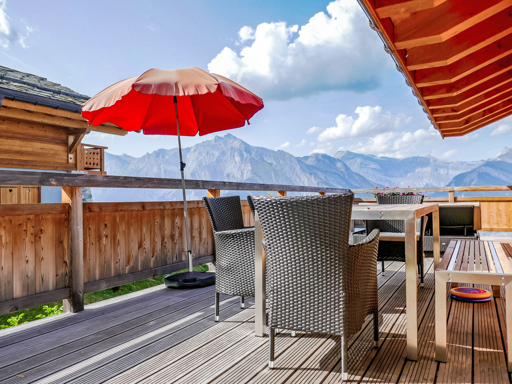 Rairettes: Schönes, gemütliches, komfortables Chalet "Flocon de Neige", auf 2 Stockwerken, Baujahr 2014. Am Ortsrand, 900 m vom Zentrum, am Hang, in einer Sackgasse. Zur Alleinbenutzung: Grill. Im Hause: Skiraum, Skischuhtrockner. Steile Zufahrt. Im Winter bitte Schneeketten mitbringen, im Winter 4x4 empfohlen. Einkaufsgeschäft, Bushaltestelle 800 m. Golfplatz (18 Loch) 18 km, Gondelbahn 800 m.