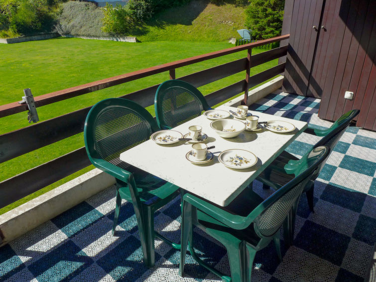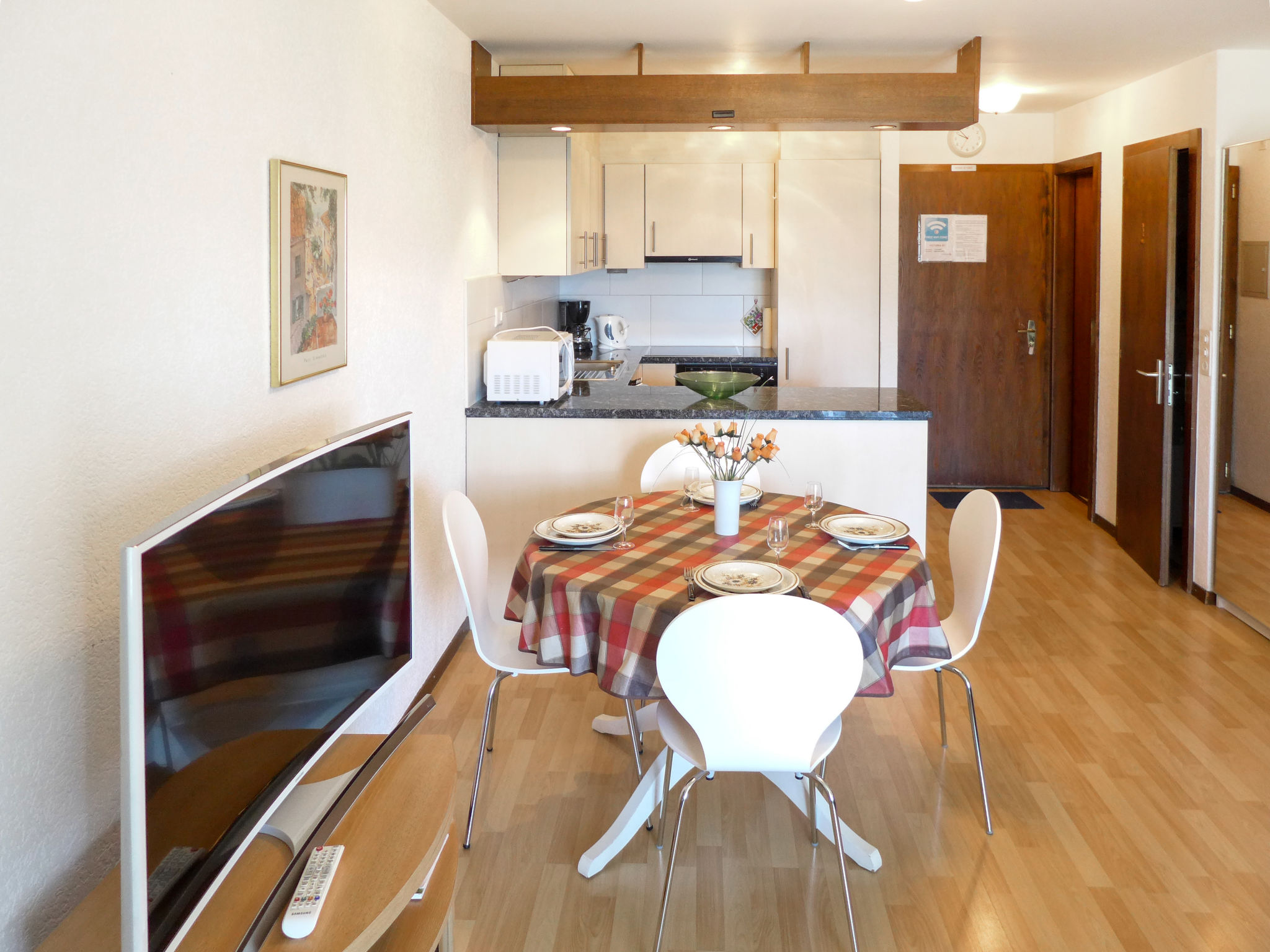 "Victoria B 7", 2-Zimmer-Wohnung 50 m2 im 2. Stock. Komfortabel eingerichtet: Wohn-/Esszimmer mit 1 Diwanbett (160 cm, Länge 200 cm), Kabel-TV (Flachbildschirm). Ausgang zum Balkon. 1 Zimmer mit 2 Betten (90 cm, Länge 190 cm). Ausgang zum Balkon. Offene Küche (Backofen, Geschirrspüler, 4 Glaskeramikplatten, Toaster, Wasserkocher, Mikrowelle, elektrische Kaffeemaschine, Kapseln für die Kaffeemaschine (NESPRESSO) extra, Racletteofen, Fondue Set (Käse)) mit Bar. Bad, sep. WC. Balkon 11 m2, Südlage. Balkonmöbel, Liegestühle (2). Schöne Sicht auf die Berge. Zur Verfügung: Bügeleisen, Haartrockner. Internet (Wireless LAN, gratis). Garage Nr. 7, Höhe 200 cm, Breite 230 cm. Bitte beachten: Nichtraucher-Unterkunft.