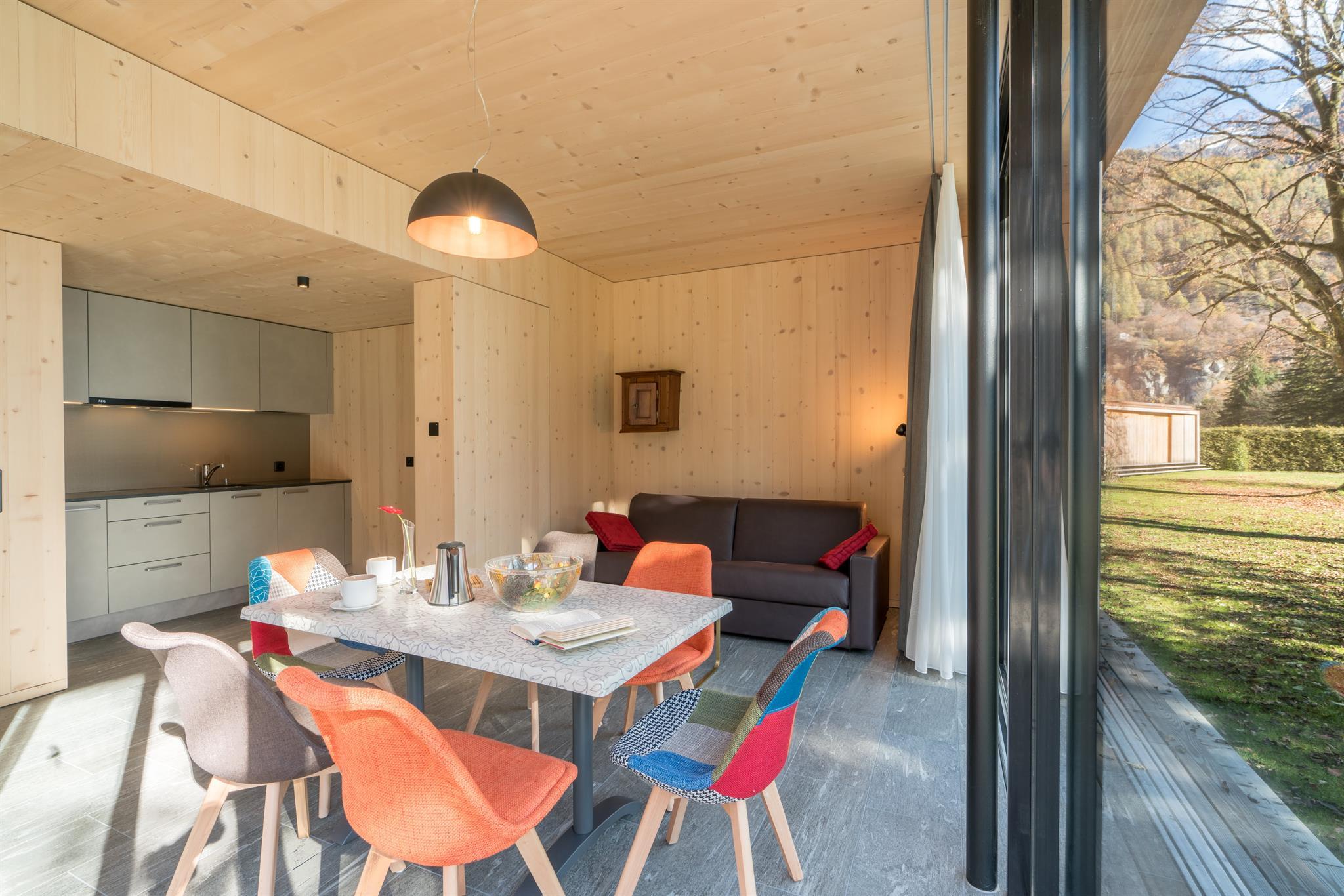 Seit 2020 verfügt das Anwesen auch über fünf Bungalows - Sara Lago - mit einer eleganten Holzarchitektur. Das Hotel Le Prese und die Bungalows Sara Lago in der bezeubernden Landschaft am Lago di Poschiavo bieten alles, was es zu einem unvergesslichen Urlaub braucht.