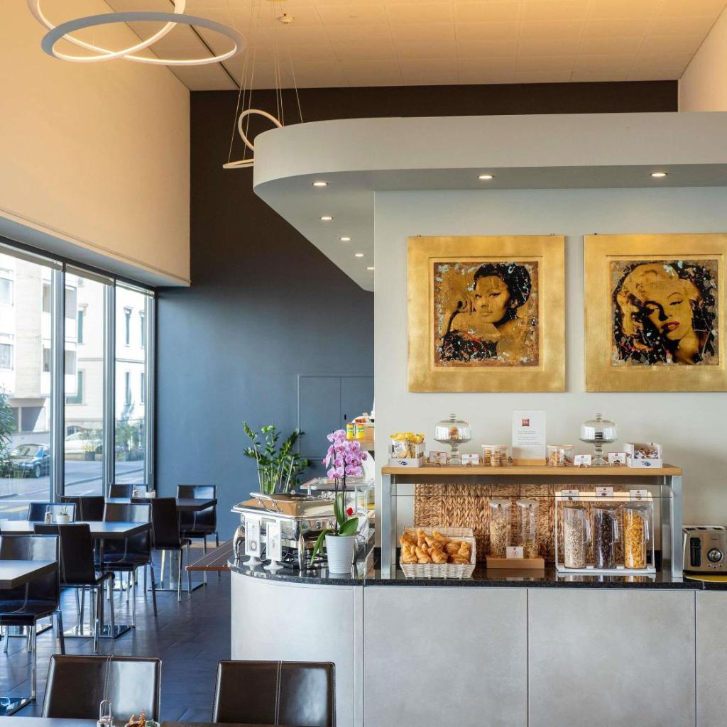 An der Bar des Ibis Locarno werden rund um die Uhr Snacks und Getränke serviert.