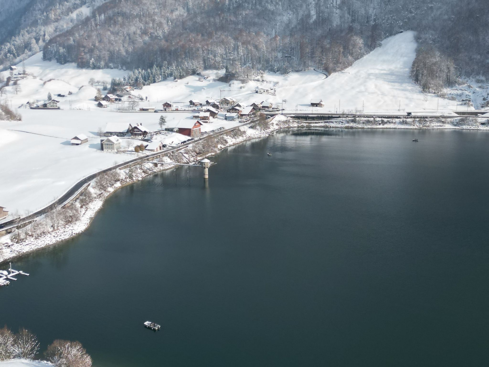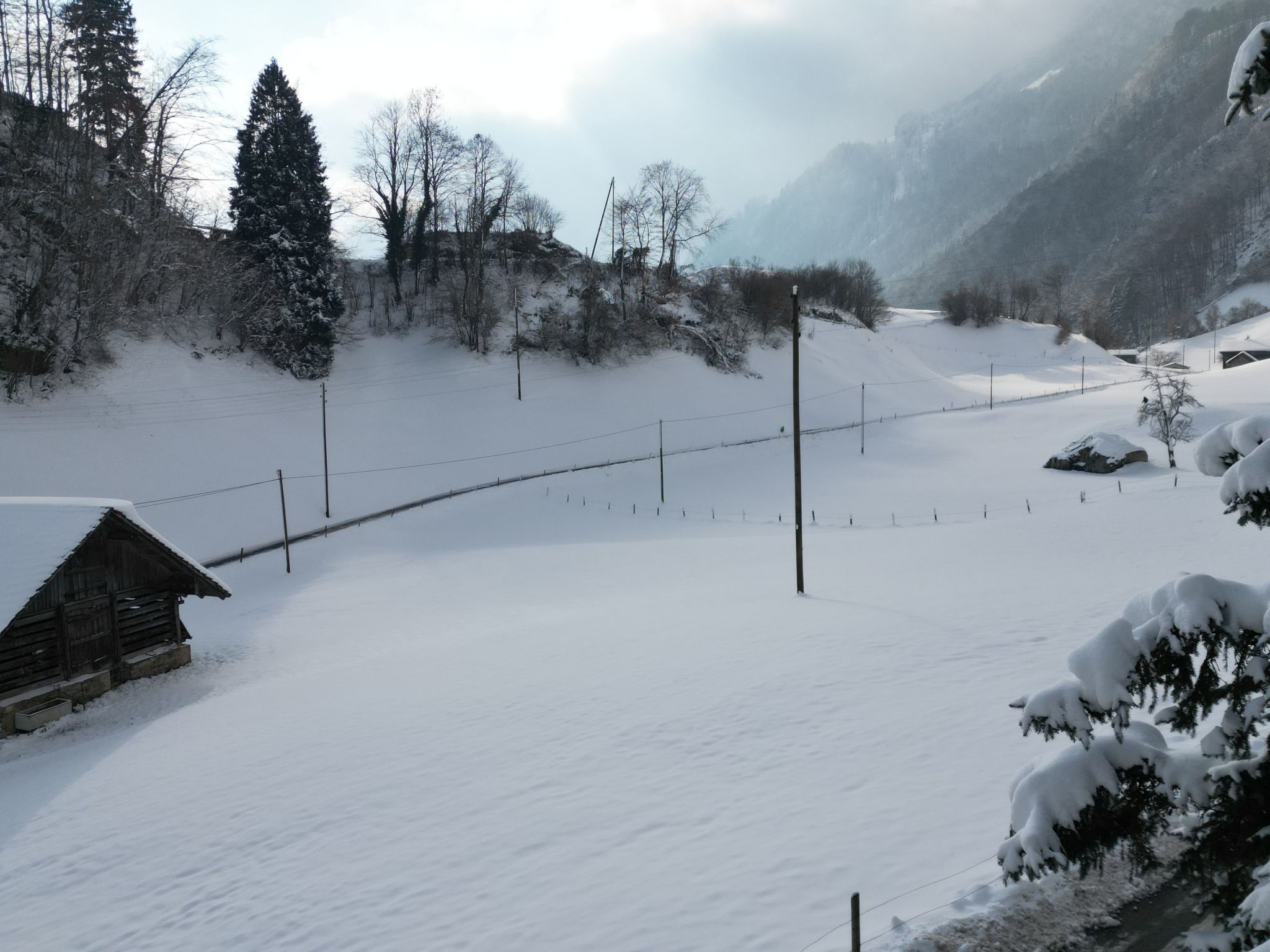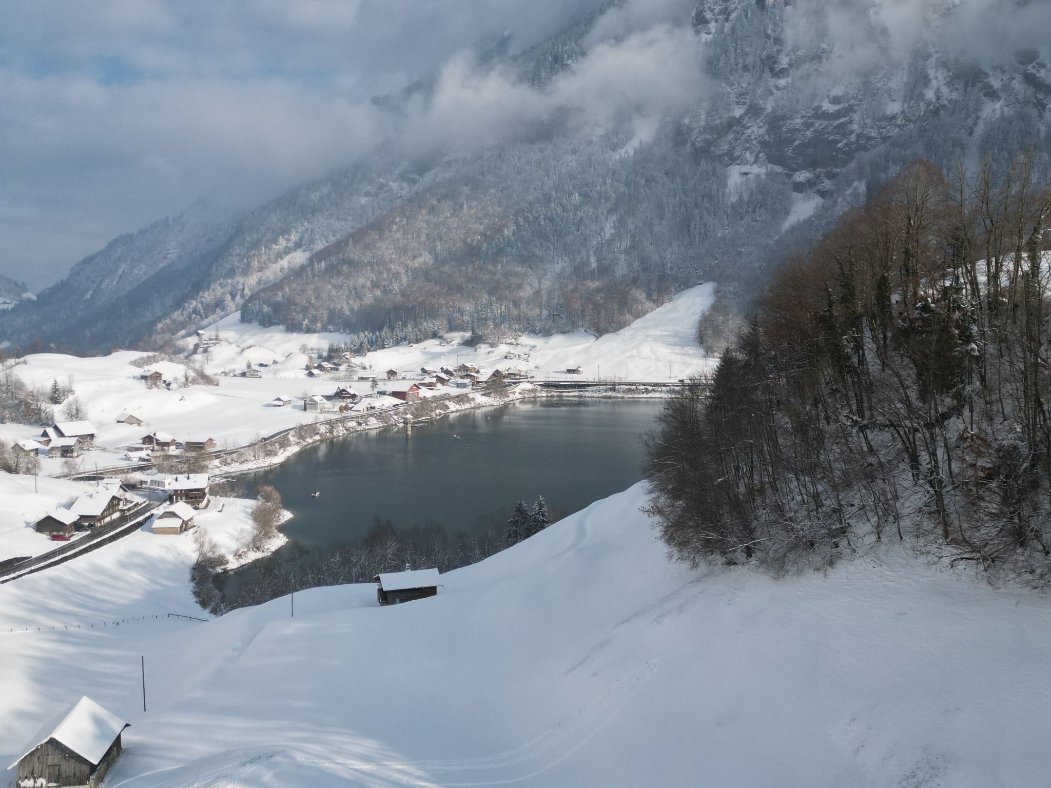 Neben dem Skifahren bietet Bürglen eine Vielzahl an Winteraktivitäten. Vom Chalet aus erreichst du in wenigen Minuten den Lungernsee, ideal für Winterspaziergänge am Ufer. Angelbegeisterte können das „Fischerparadies Lungernsee“ besuchen, wo auch im Winter Angelgenehmigungen und Ausrüstung verfügbar sind. Fans von „Crash Landing on You“ können den nahegelegenen Drehort erkunden, nur 12 Minuten zu Fuss vom Chalet entfernt, mit atemberaubendem Blick über den zugefrorenen See.