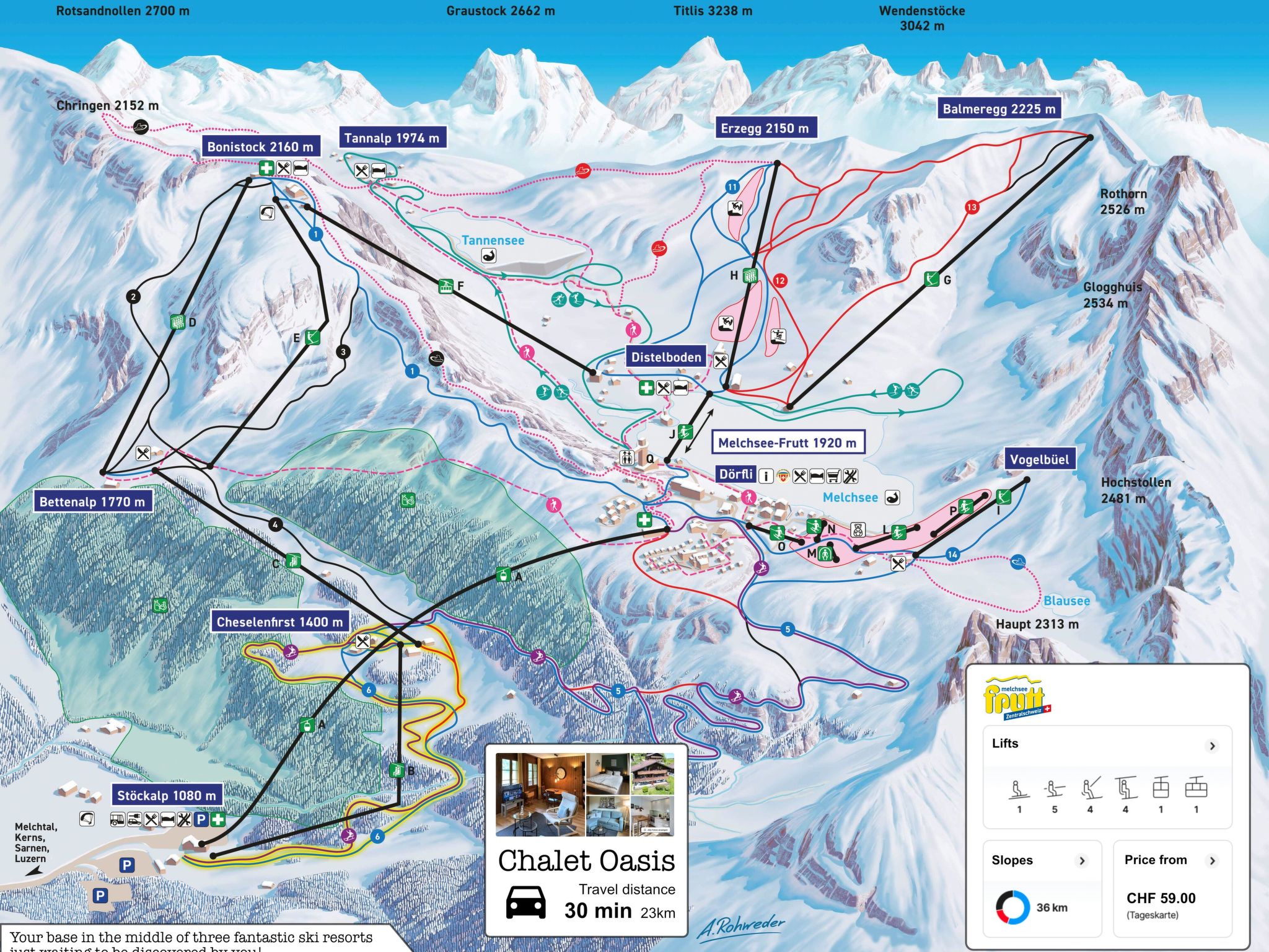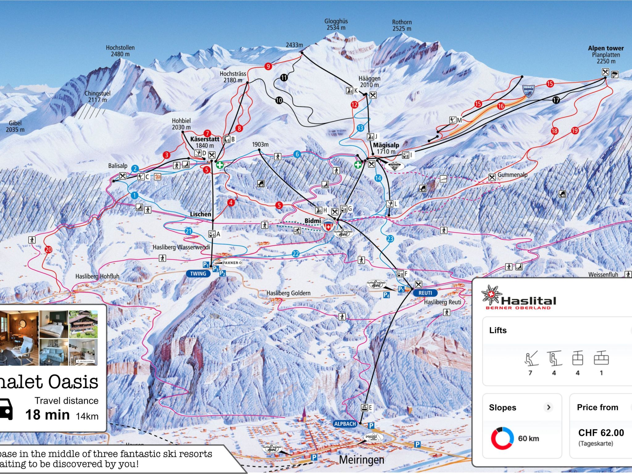 Die Region ermöglicht zudem einfachen Zugang zu Top-Destinationen: Interlaken, Harder Kulm, Jungfraujoch, Titlis, Luzern mit Kapellbrücke und natürlich die Skigebiete selbst. Mit dem Auto erreichst du Luzern in 30 Minuten, Interlaken in 38 Minuten und Grindelwald in 1 Stunde. Das öffentliche Verkehrsnetz ist hervorragend: Den Bahnhof Kaiserstuhl OW erreichst du in 15 Minuten zu Fuss. Von dort aus bist du schnell in Lungern (6 Min.), Luzern (1 h), Interlaken (1 h) oder Grindelwald (2 h).