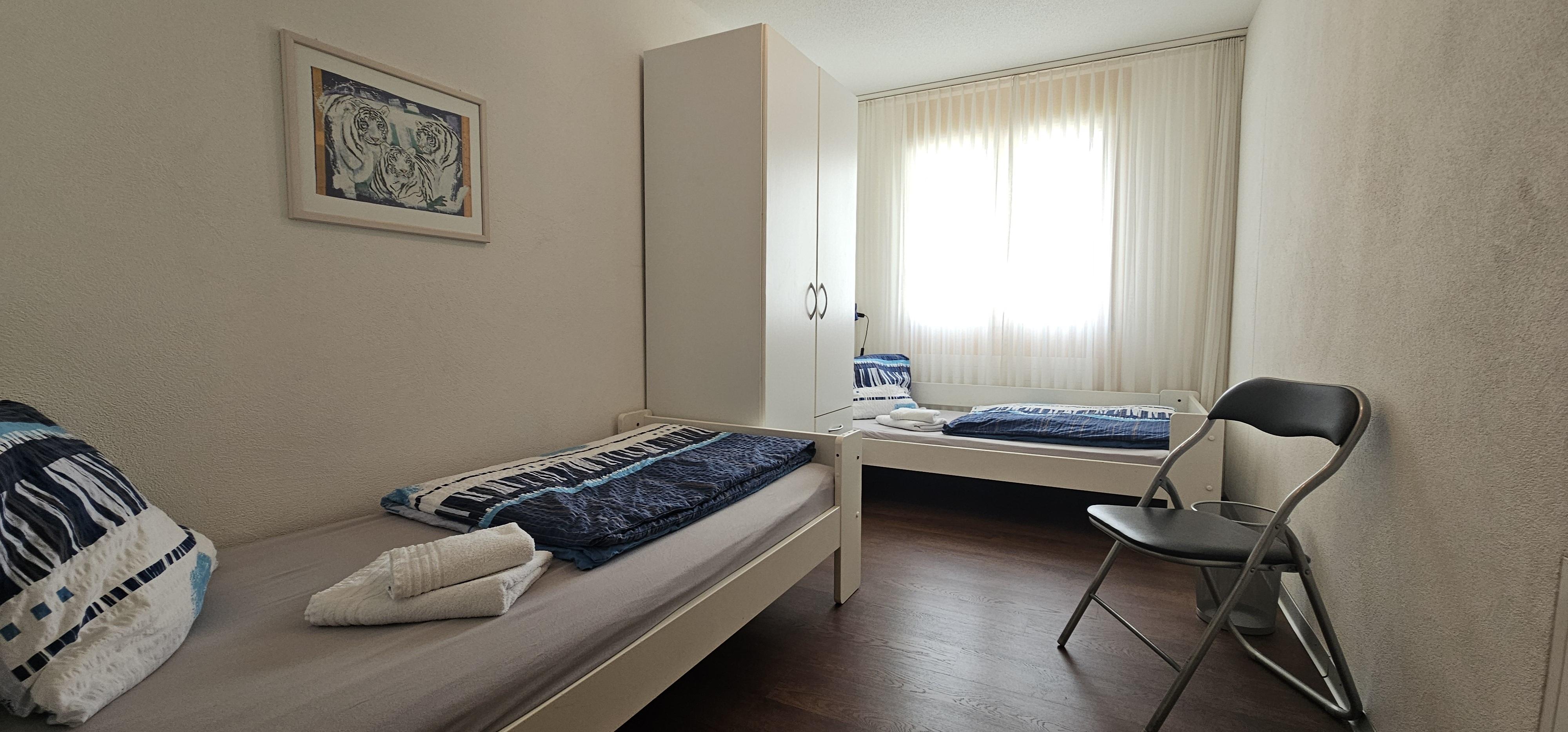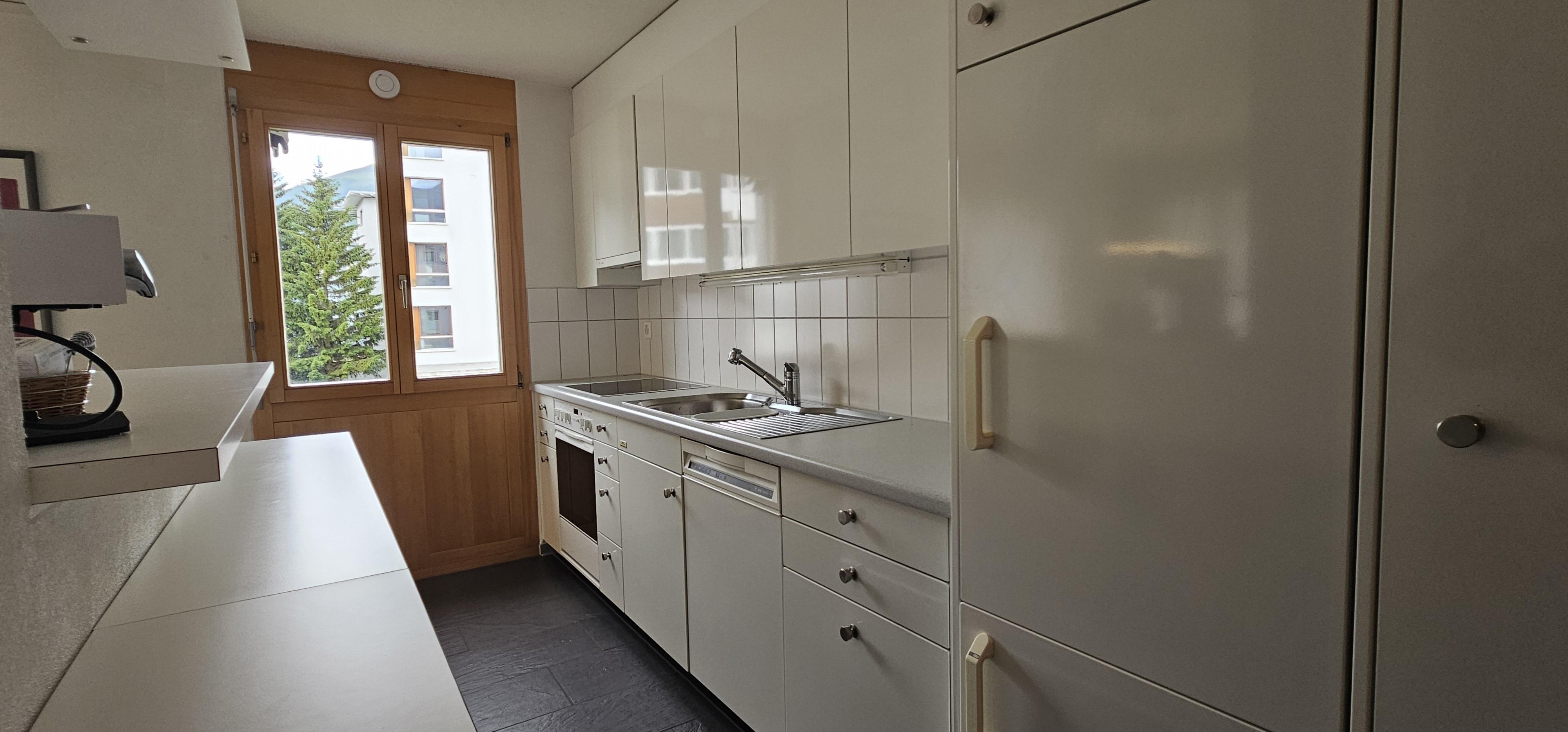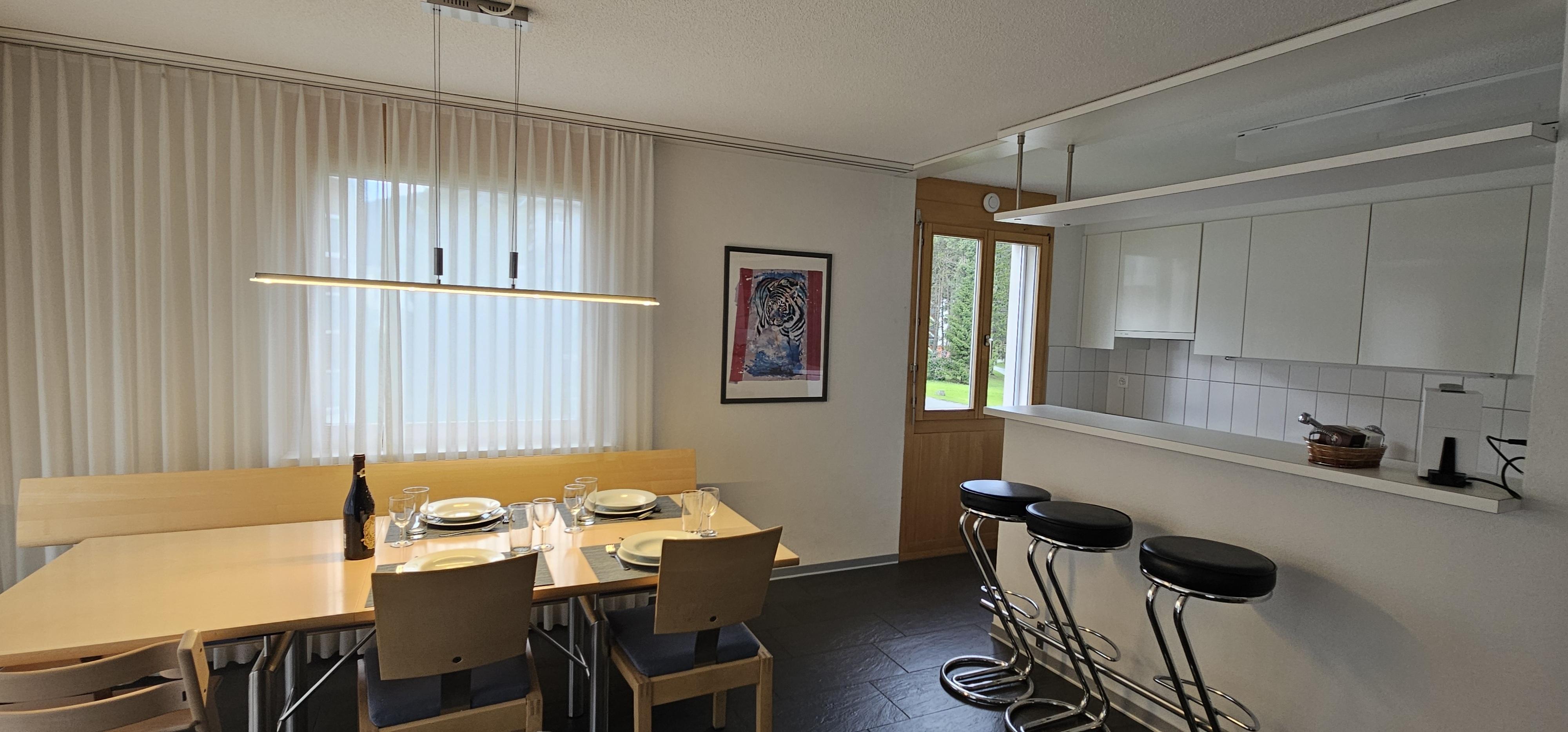 4 1/2 Zimmer (ca. 96m2) im ersten Stock in einem Mehrfamilienhaus mit Lift, ruhig gelegen, zentral, herrliche Aussicht, Südbalkon. 1 Platz in Autoeinstellhalle. Zur Mitbenützung Skiraum, Kinderspielplatz, Waschmaschine/Tumbler mit Trockenraum. Küche mit Kochherd, Backofen, Kühlschrank, Geschirrspülmaschine, Kaffeemaschine. Wohn-Esszimmer, 1 Schlafzimmer mit Doppelbett, 1 Schlafzimmer mit einem französischem Bett, 1 Schlafzimmer mit 2 Einzelbetten sowie zusätzlich 1 Kinderbett bis 5 Jahre oder 1 mobiles Faltbett vorhanden. Bad/WC und Dusche/WC. Bettwäsche + Frottewäsche (Erstbestückung obligatorisch) , Duvet nordisch, Telefon, Radio, TV (Entertainment System Radio, Flatscreen), Internet-Anschluss. Haustiere sind nicht erlaubt. Wohnung wird nur an Nichtraucher vermietet.