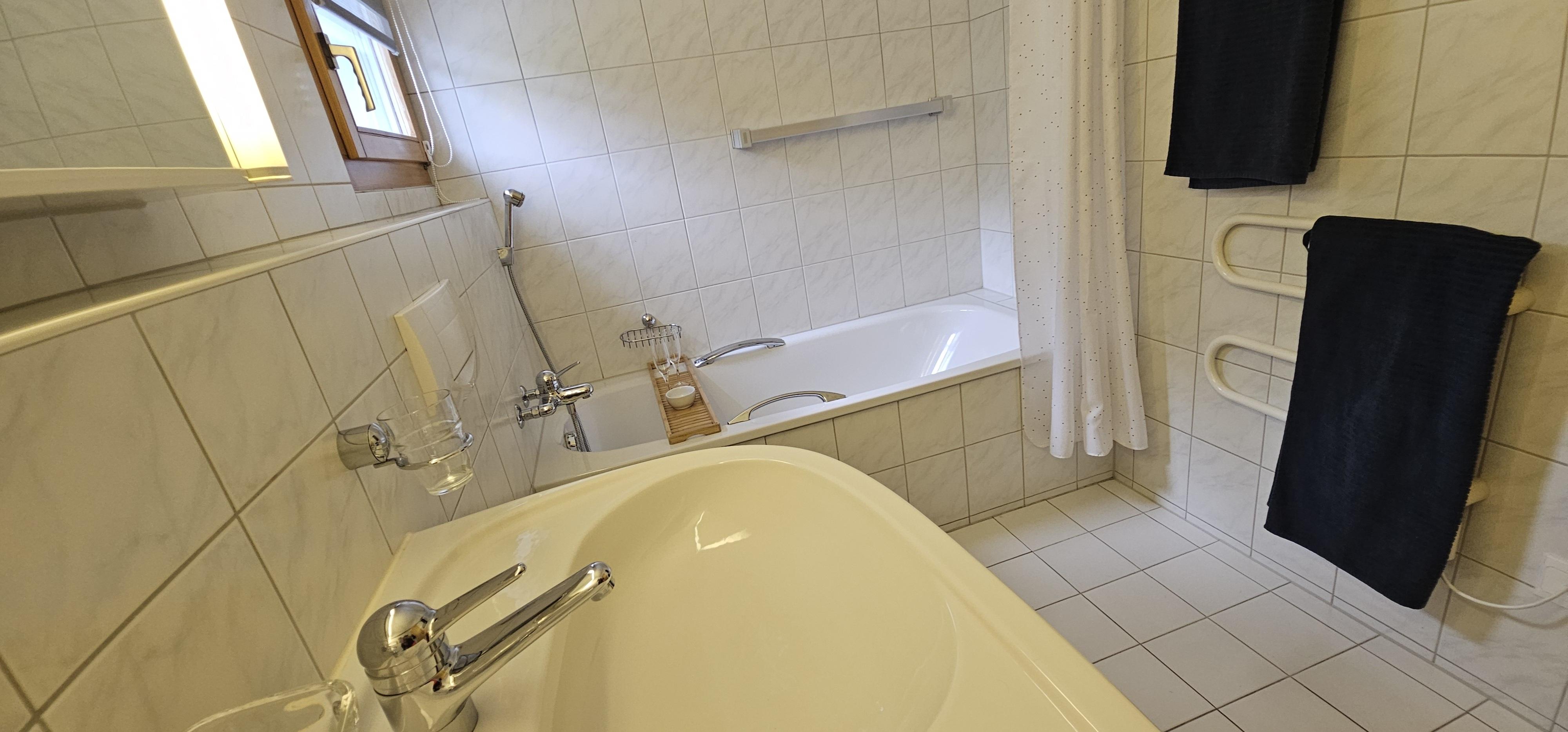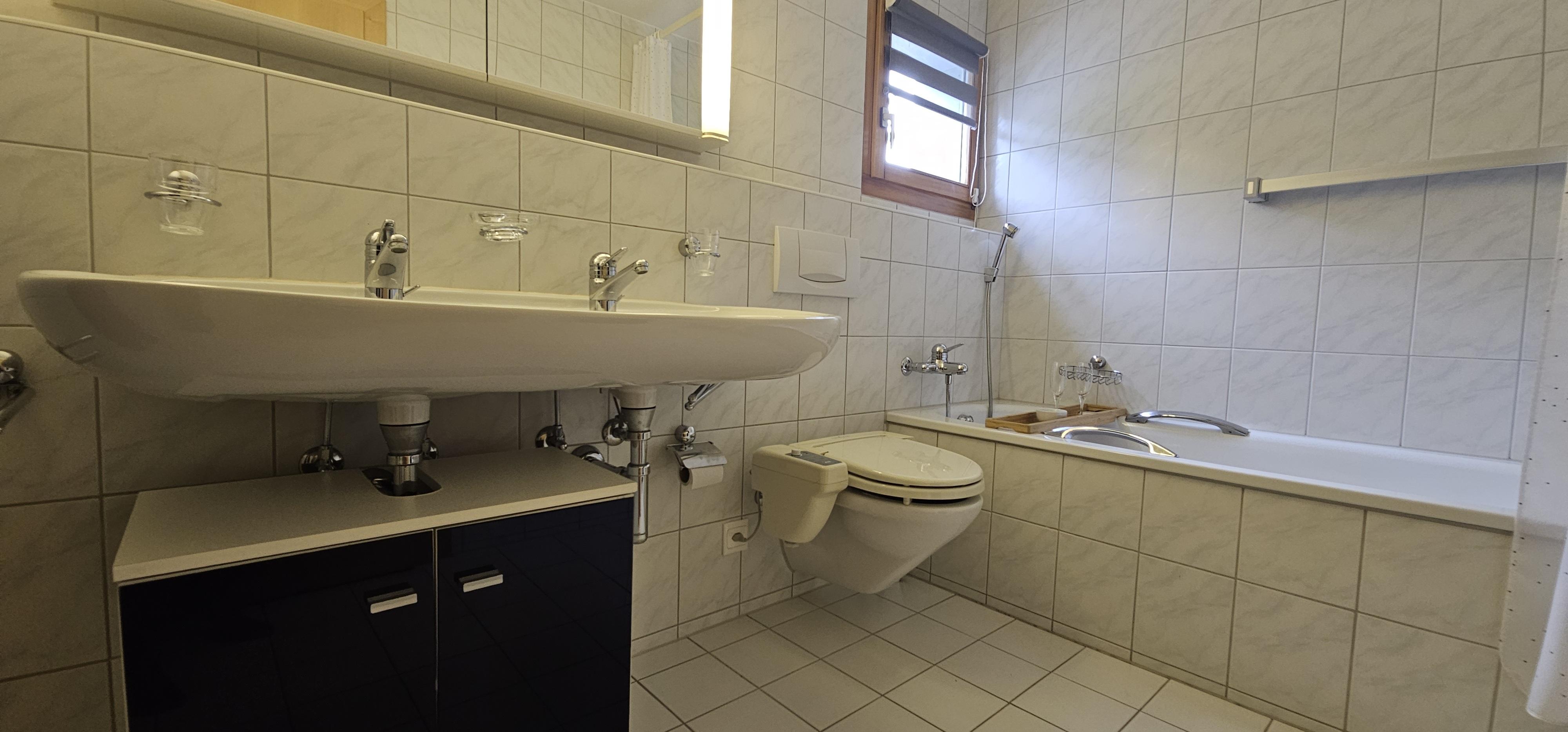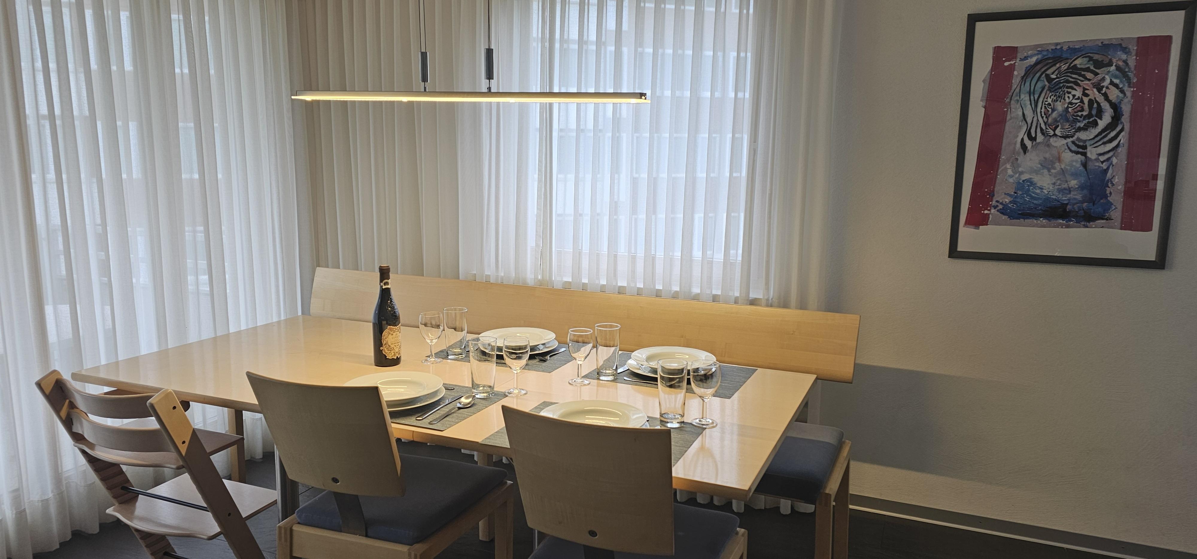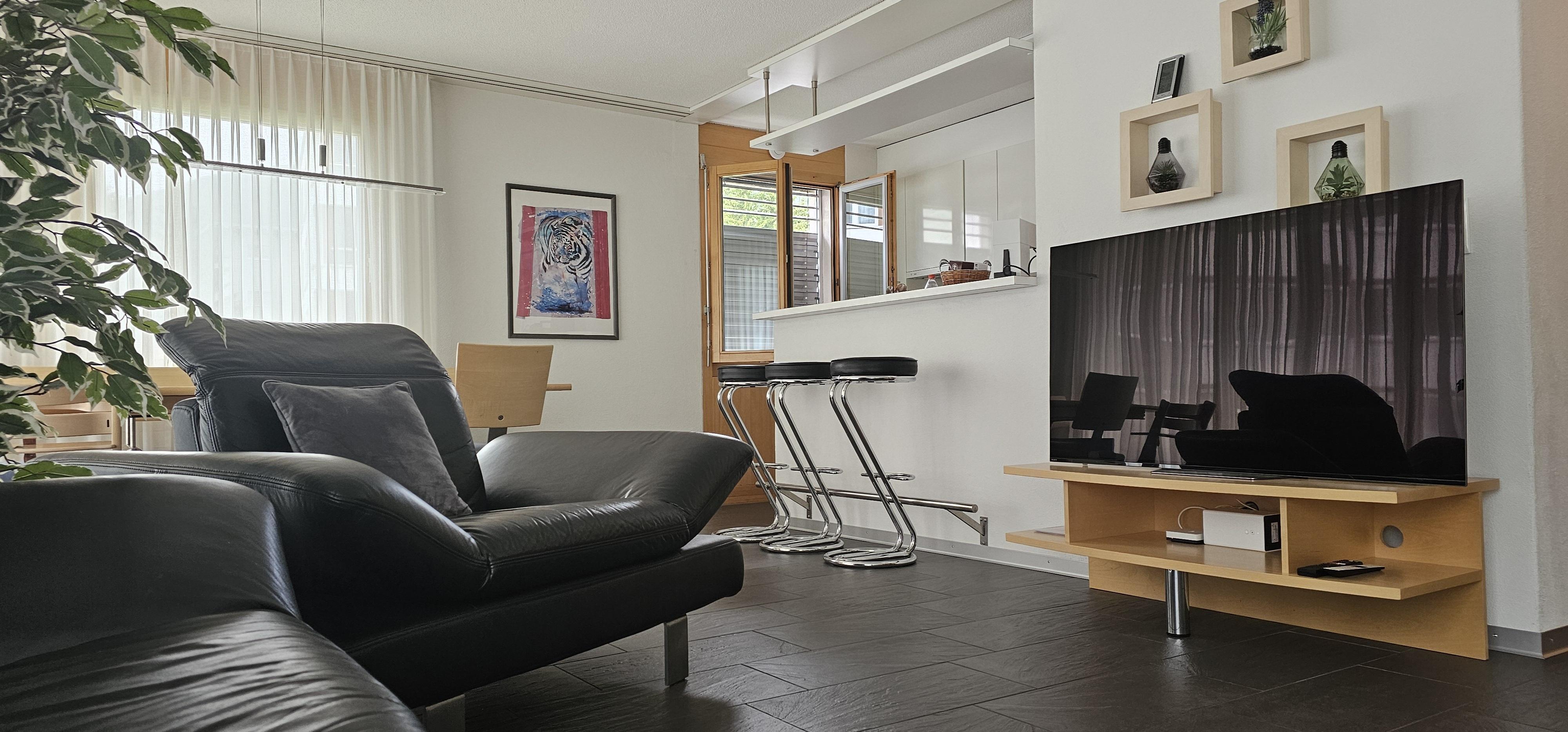4 1/2 Zimmer (ca. 96m2) im ersten Stock in einem Mehrfamilienhaus mit Lift, ruhig gelegen, zentral, herrliche Aussicht, Südbalkon. 1 Platz in Autoeinstellhalle. Zur Mitbenützung Skiraum, Kinderspielplatz, Waschmaschine/Tumbler mit Trockenraum. Küche mit Kochherd, Backofen, Kühlschrank, Geschirrspülmaschine, Kaffeemaschine. Wohn-Esszimmer, 1 Schlafzimmer mit Doppelbett, 1 Schlafzimmer mit einem französischem Bett, 1 Schlafzimmer mit 2 Einzelbetten sowie zusätzlich 1 Kinderbett bis 5 Jahre oder 1 mobiles Faltbett vorhanden. Bad/WC und Dusche/WC. Bettwäsche + Frottewäsche (Erstbestückung obligatorisch) , Duvet nordisch, Telefon, Radio, TV (Entertainment System Radio, Flatscreen), Internet-Anschluss. Haustiere sind nicht erlaubt. Wohnung wird nur an Nichtraucher vermietet.