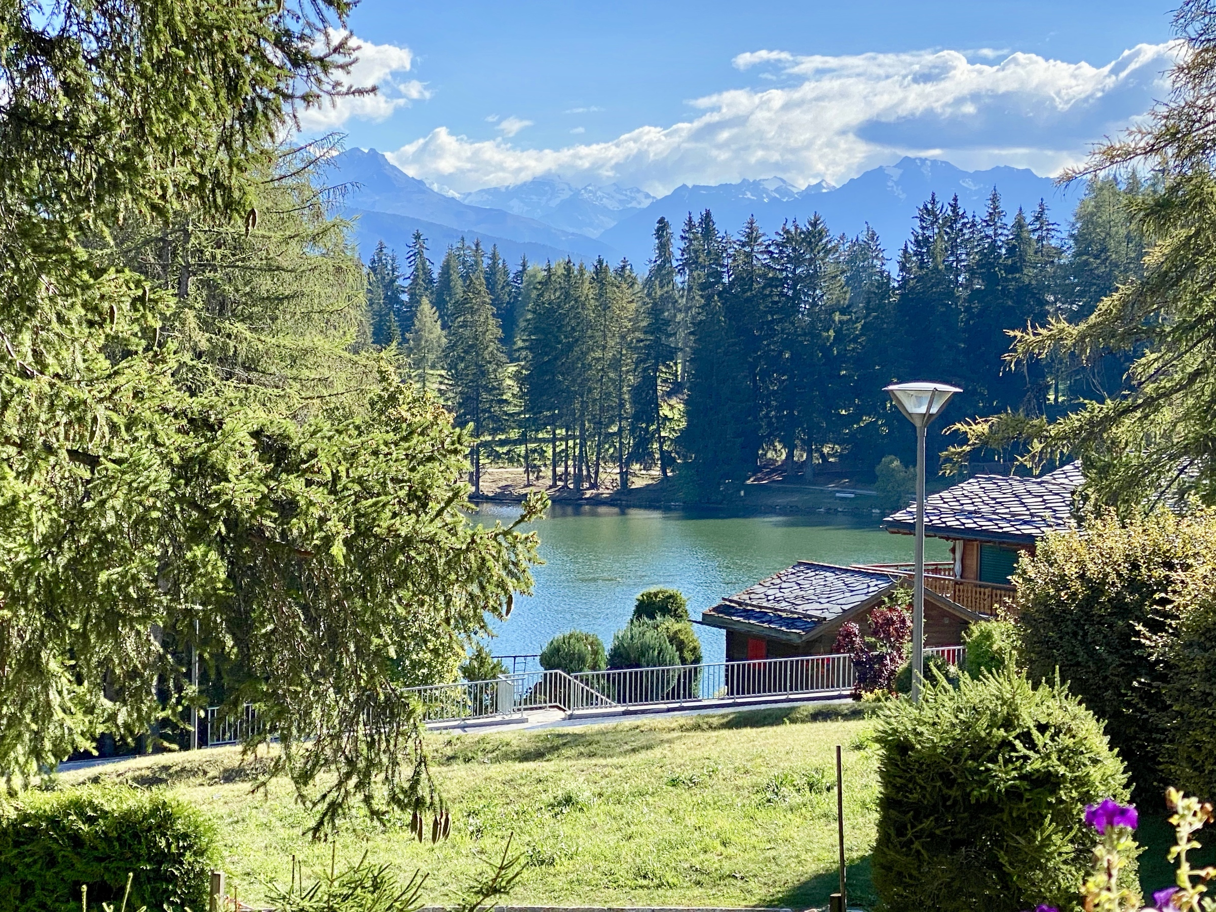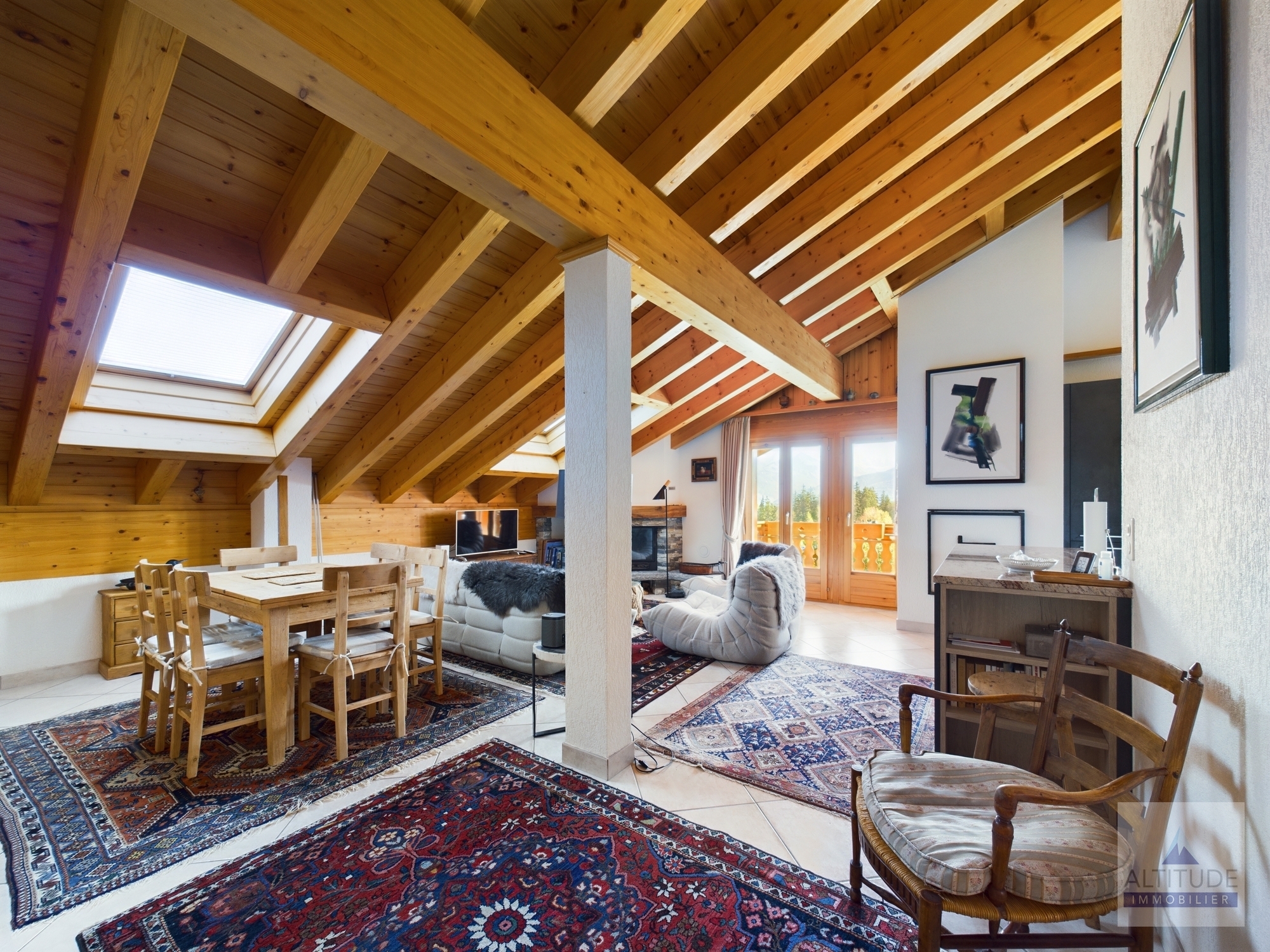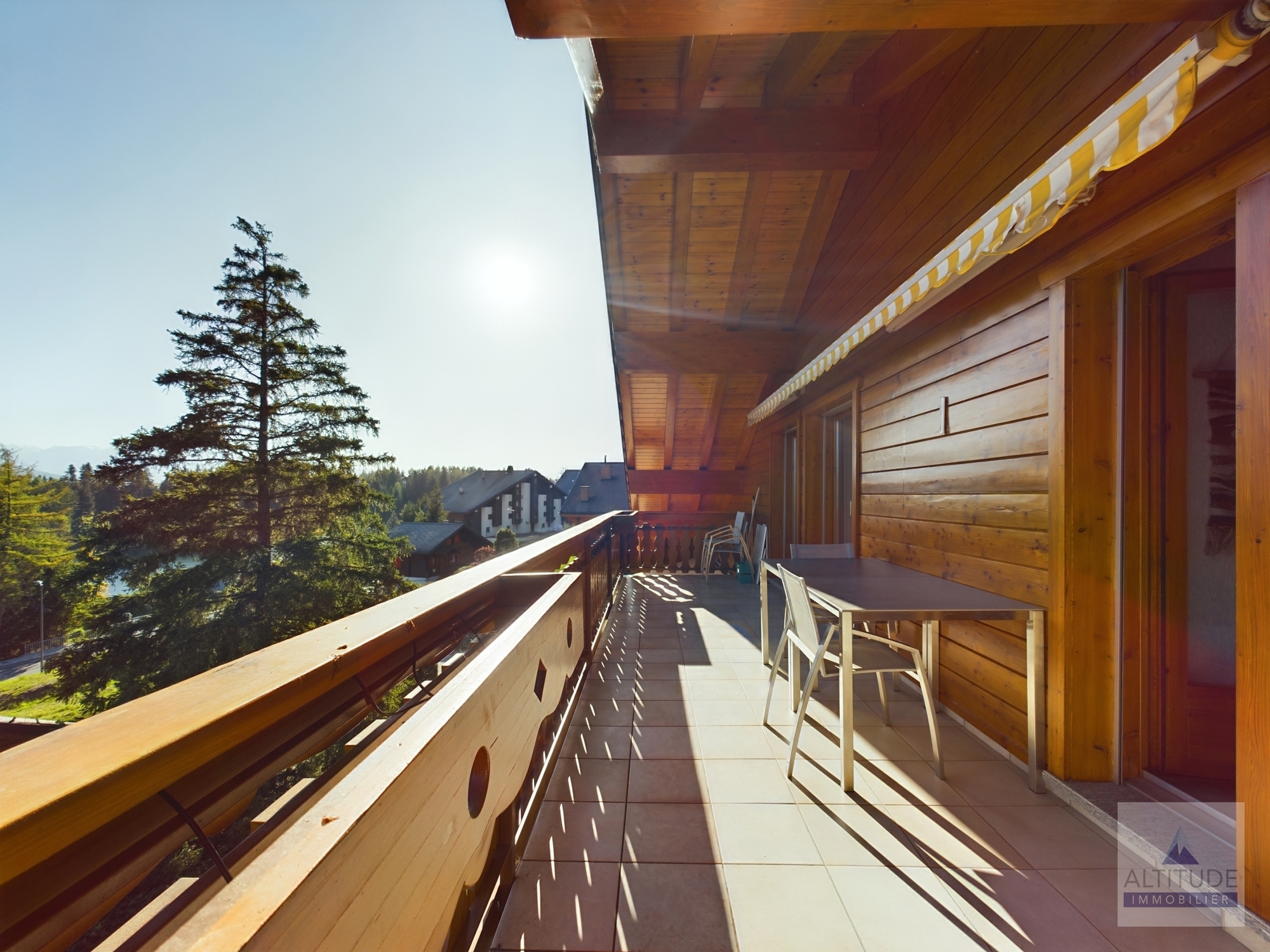 Splendide appartement en attique de 110 m2 avec vue sur le Lac Moubra Chalet résidentiel, de catégorie 4 étoiles, situé proche du lac Moubra à 5 minutes à pied du centre de Crans et de Montana. Ce site offre une vue magnifique sur les Alpes, dans une nature calme et préservée. A quelques pas du parcours de Golf Jack Nicklaus et d'un parc aventure dans les arbres avec tyrolienne, diverses activités comme le nordic walking, randonnées à vélo, canyoning. En hiver, ski, randonnées en raquettes sur le golf. Cet appartement charmant et cosy est composé de :- Accès privatif avec ascenseur- Séjour lumineux et spacieux avec salle à manger, salon avec cheminée, télévision, accès au grand balcon plein sud,- Cuisine ouverte moderne complètement équipée- Chambre parentale avec lit double et salle de bain attenante avec bain, lavabo, WC - 1 chambre double avec accès au balcon nord et petite mezzanine- 1 chambre double avec accès au balcon nord- 1 salle de douche avec douche, lavabo et WCA partir de 1'221.- la première semaine A dispostion dans l'appartement : - Wi-Fi privatif- Cheminée- Télévision - Micro-ondes, four, set raclette, set fondue fromage,toaster.- Machine à café Nespresso, bouilloire .- Meubles de terrasse. A disposition dans l'immeuble : - Casiers à skis- Place de parc dans le garage souterrain- Place de parc visiteurs à l'extérieur- Sauna commun dans la résidence - Table de ping-pong commune au sous-sol