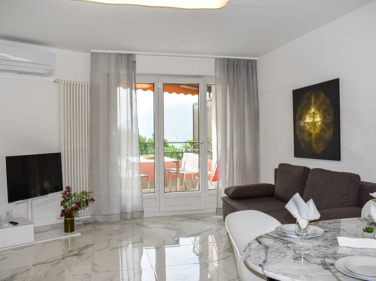 "App. 704", 2-Zimmer-Wohnung 52 m2 im 7. Stock, Südlage. Vollständig renoviert im Jahre 2022, luxuriös und stilvoll eingerichtet: offenes grosses Wohn-/Esszimmer mit 1 Diwanbett (160 cm, Länge 200 cm), Kabel-TV und Internationale TV-Sender (Flachbildschirm), Klimaanlage. Ausgang zum Balkon. 1 kleines Doppelzimmer mit 1 Doppelbett (2 x 90 cm, Länge 200 cm). Grosse, offene Küche (Backofen, Geschirrspüler, 4 Glaskeramikplatten, Toaster, Wasserkocher, Tiefkühler, elektrische Kaffeemaschine, Kapseln für die Kaffeemaschine (Nespresso) extra, Racletteofen) mit Esstisch. Dusche/WC. Balkon 10 m2, Südlage. Balkonmöbel. Sehr schöne Sicht auf den See, die Berge und die Landschaft. Zur Verfügung: Waschmaschine (extra). Kinderhochstuhl, Babybett bis 2 Jahre (extra), Haartrockner. Internet (Wireless LAN, gratis). Parkplatz beim Haus. Bitte beachten: Nichtraucher-Unterkunft. Achtung: Fenster im Schlafzimmer geht in den Lüftungsschacht. NL-00001926